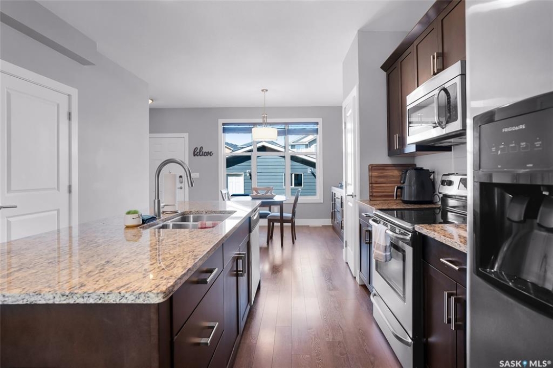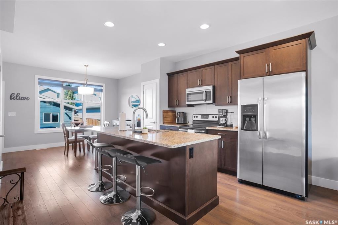 Welcome to this stunning two-storey home in The Meadows! With 4 bedrooms and 4 bathrooms, it's perfect for a larger family. Inside, you'll find a cozy living room and an open-concept layout with sleek laminate flooring. Spanning 1404 sq. ft., the home features plenty of cupboard space, pantry, quartz and granite counters, quality tile and carpet, and all stainless steel appliances, including a white Samsung washer and dryer set. There is central AC, HVAC and underground sprinklers front & back. All bathrooms consist of gorgeous tile and fixtures. The laundry is conveniently located near the bedrooms on the 2nd floor and the master bedroom has a large walk-in closet as well as a 4 pc en-suite. There's a side entrance, ideal for converting the basement into a suite for renters or extended family if needed. In the basement you will find large windows, a 4th bedroom and lovely 3pc bath with tiled shower & a cozy family room with electric fireplace to enjoy all year round. Enjoy your morning coffee on the charming east-facing porch, with storage underneath or host family gatherings on the spacious 14x16 back deck. The 20x22 garage is boarded, insulated, heated, and equipped with both a 220V plug and a 250V welder's plug. It also includes small upper shelving for storage. With convenient lane access, this gorgeous home is not to be missed!
