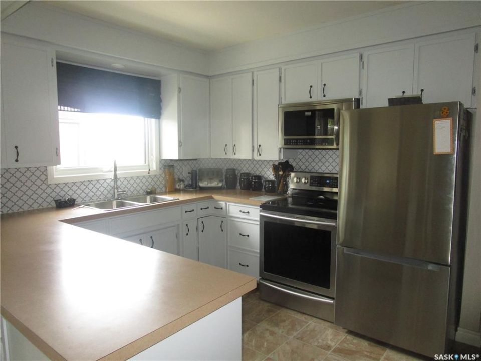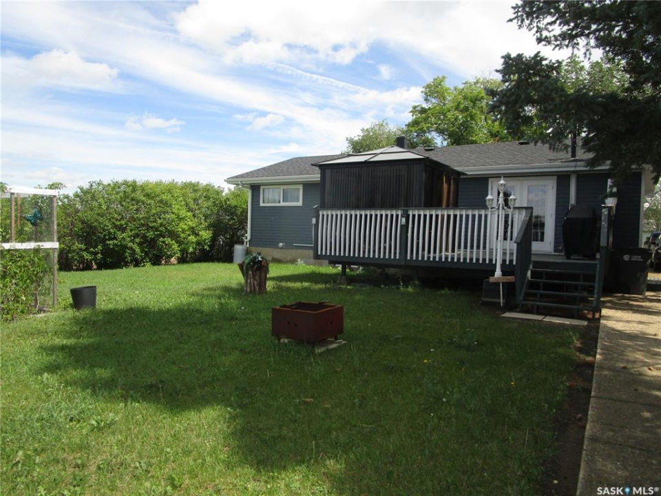 WELCOME TO 100 BELL RD. ASSINIBOIA , SASKATCHEWAN. This Property is wonderfully located on the corner and near the end of town. Looking out from your deck you can breath in fresh air and see the wide open spaces, with no homes to get in your way. Really relax and unwind as you enjoy your morning coffee or the lovely warm evenings of summer. Because of the corner location there is parking at the front and at the side. Building a garage is a possibility on this corner lot.. Entering thru the back porch you will be invited in by the attractive, open dining and kitchen area. Honestly, you just feel at home with the soft colors .The patio doors that lead on to the deck, the built in china cabinet, u shaped counter tops with window facing the back yard and with so much room and so many cabinets. One of my favorite features is the rounded doorways between the kitchen and living room and another at the front door closet. The living room encourages relaxation with the natural gas fireplace to warm you and adds ambiance to this sitting area. Some Updated windows, shingles, flooring and so much more. The bedrooms are spacious with lots of closet space.. There are 2 more bedrooms downstairs. A 3 piece bath , work area, storage and laundry plus a family room . A lovely property to call HOME!