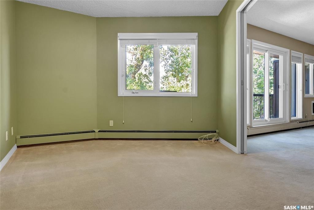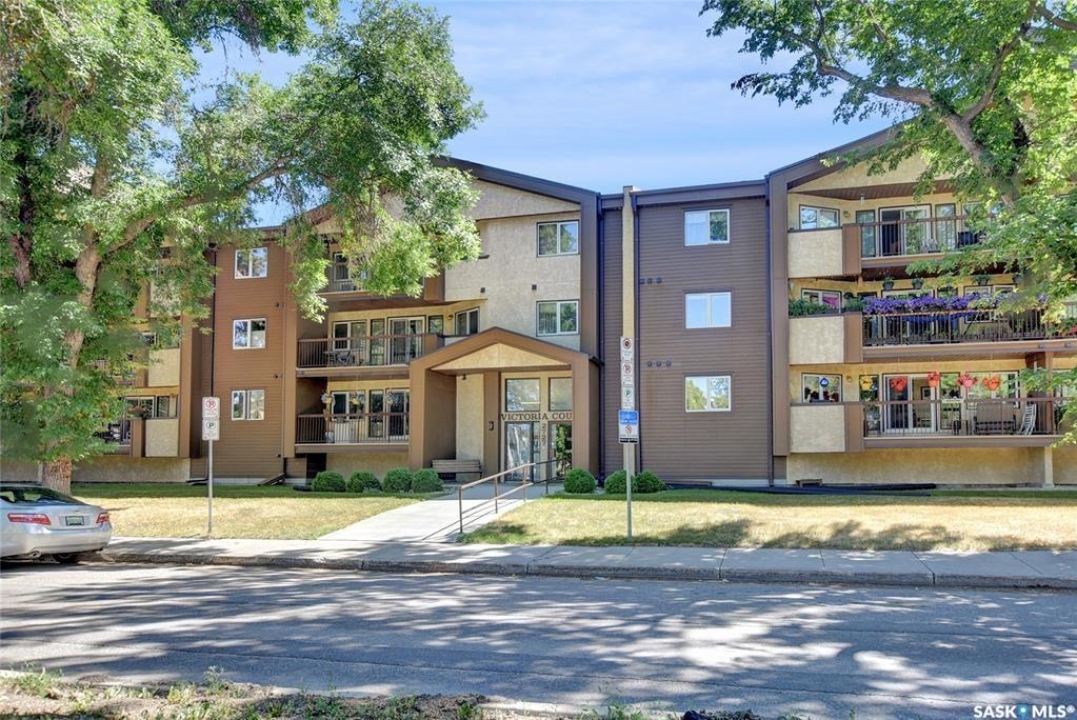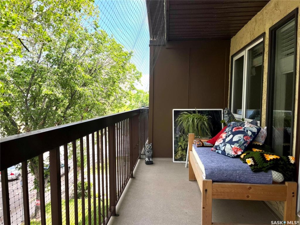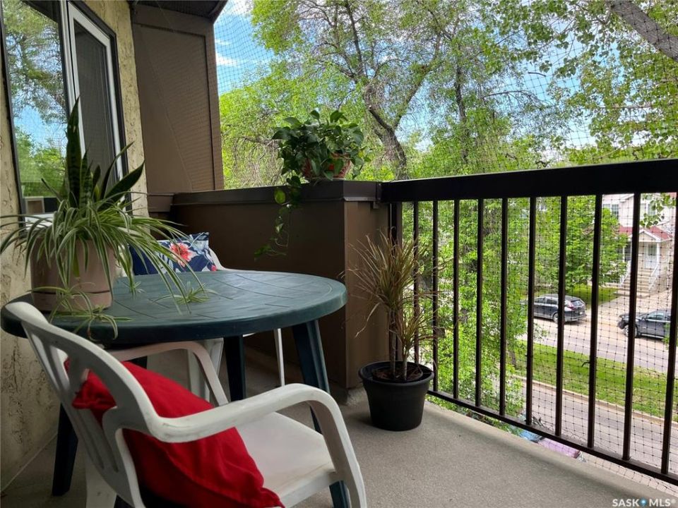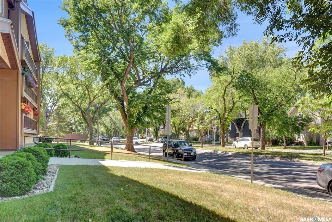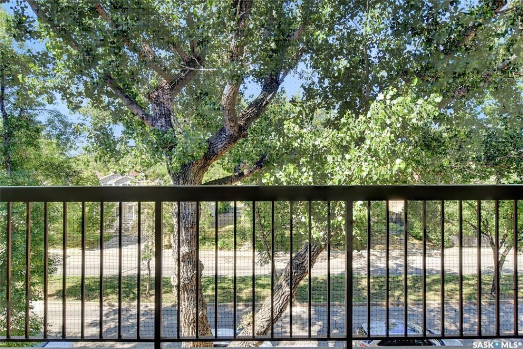 ENJOY THE LOVELY VIEW - Fabulous Cathedral Location within walking distance of downtown and 13th Avenue shopping. This top floor Condo has a lovely view which includes an amazing tree that offers privacy to the extra large balcony creating a tranquil effect. You won't find many Condos that offer such a roomy open concept living and dining space as this one does, it really has the feel of a single home. The kitchen is equipped with plenty of cabinets and countertop space for the avid Chef and there is room for a breakfast table or extra working space as well. Enjoy a refreshingly large primary bedroom with 2 piece en-suite and walk in closet. The second bedroom has the option to open a set of double onto the living room if desired and would also make a great office. The 4 piece bath is just down the hall next to a the laundry and storage room, you won't believe how big it is! On top of this a second storage room is located off the main entrance and there is plenty of closet space throughout - You will never be wanting for storage in this home! One underground heated parking stall & parking level storage locker is included. The A/C has just been updated and the additional features are the Elevator, security doors w intercom, amenities room/guest suite at no charge and visitor parking. Please contact the Listing Agent for further information and to book your private showing today!