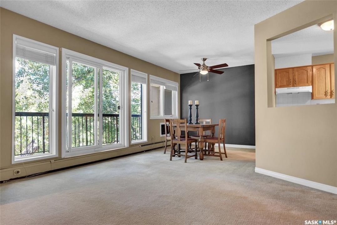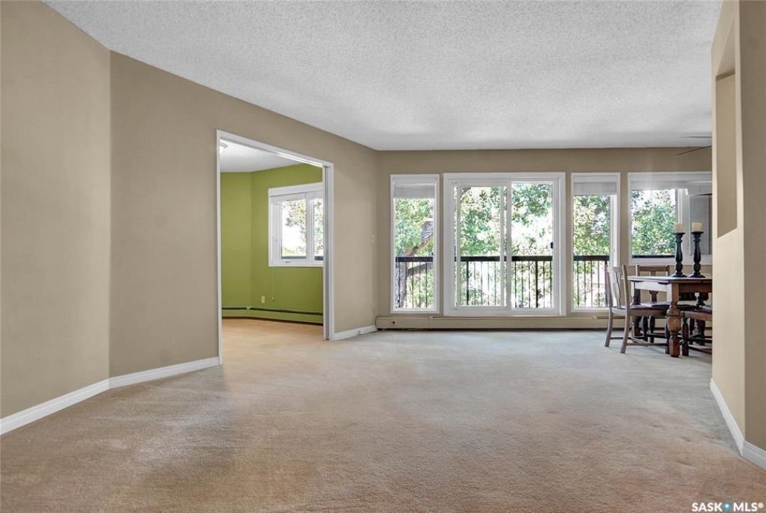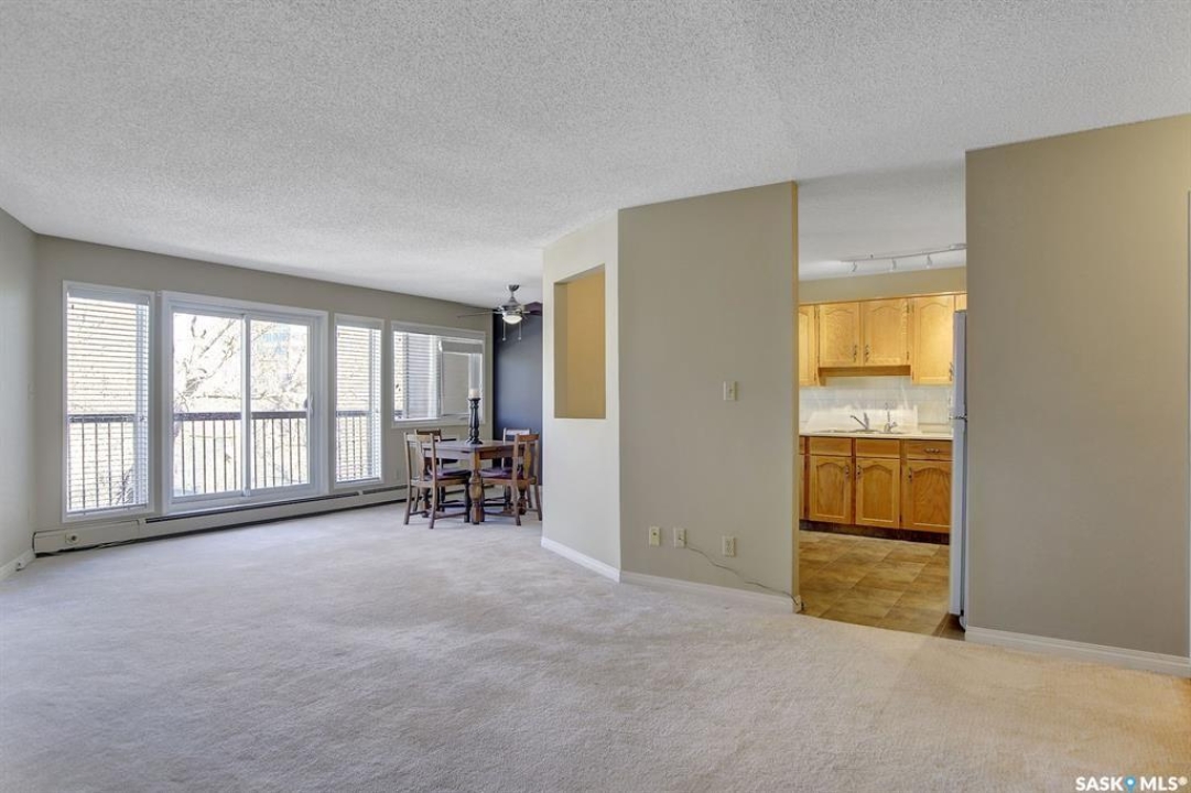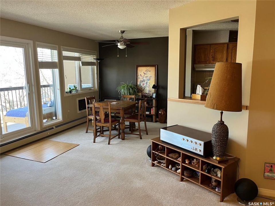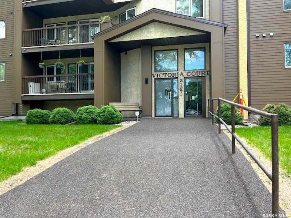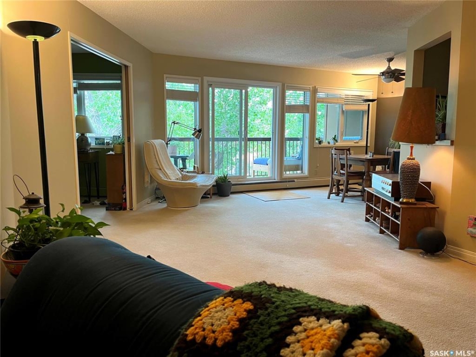 ENJOY THE LOVELY VIEW - Fabulous Cathedral Location within walking distance of downtown and 13th Avenue shopping. This top floor Condo has a lovely view which includes an amazing tree that offers privacy to the extra large balcony creating a tranquil effect. You won't find many Condos that offer such a roomy open concept living and dining space as this one does, it really has the feel of a single home. The kitchen is equipped with plenty of cabinets and countertop space for the avid Chef and there is room for a breakfast table or extra working space as well. Enjoy a refreshingly large primary bedroom with 2 piece en-suite and walk in closet. The second bedroom has the option to open a set of double onto the living room if desired and would also make a great office. The 4 piece bath is just down the hall next to a the laundry and storage room, you won't believe how big it is! On top of this a second storage room is located off the main entrance and there is plenty of closet space throughout - You will never be wanting for storage in this home! One underground heated parking stall & parking level storage locker is included. The A/C has just been updated and the additional features are the Elevator, security doors w intercom, amenities room/guest suite at no charge and visitor parking. Please contact the Listing Agent for further information and to book your private showing today!