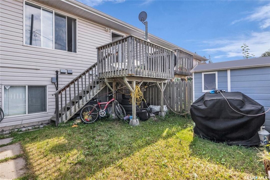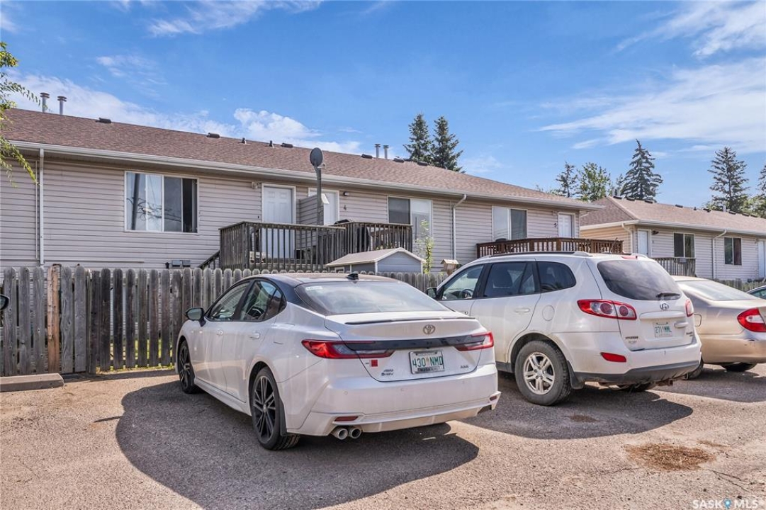 Excellent location near the University of Saskatchewan! This 3-bedroom townhouse is located in a quiet, well-maintained complex. Offering total 1,200 sq. ft. over two levels (600 sq. ft. per floor) but only counts above grade. The main floor boasts a bright and spacious living room with a large front window, a dining area, and a kitchen that overlooks the backyard and deck. You'll also find a convenient laundry room and a 2-piece bathroom on this level. The fully developed (bi-level )basement includes three generously sized bedrooms with large windows and a full bathroom. This townhouse Unit has Central Air Conditioning. Two Exclusive parking stalls are located directly behind your private Fenced yard for easy access. With its prime location near the U of S and city transit, this home is an excellent choice for first-time buyers, University Students or as an investment property.