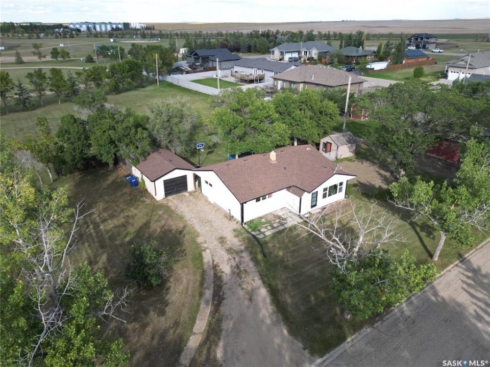 Welcome to Rouleau! Known as the home of SK's famous Corner Gas and nicknamed “Dog River,” this vibrant community is just 35 minutes from either Regina or Moose Jaw! The perfect spot for commuters who want peace and space without sacrificing convenience. Rouleau offers it all: a K-12 school, restaurant/bar, gas station, post office, sports arena, liquor store, hardware store, and more. Step inside this bright 3-bedroom, 1-bath, 1,090 sqft bungalow and instantly feel its warm, welcoming vibe. Recently refreshed with new siding, house wrap, updated windows, and central A/C (2025). The new mudroom entry adds storage and leads into the heart of the home, where original hardwood floors flow through most of the main level. The living room is filled with natural light from large south-facing sliding windows. In the kitchen, you'll find granite countertops, stainless steel appliances, a gas range, and a huge chalkboard wall. Perfect for recipes, lists, or family artwork. The 4-piece bathroom was updated in 2022, and the primary bedroom offers hardwood floors and a roomy wardrobe. Two other bedrooms complete the main floor, both with original hardwood and deep closets. The unfinished basement is full of potential and already has key updates: new ductwork (2021), gas water heater (2025), updated electrical panel, sump pump, and a roughed-in 2nd bathroom. The sewer main was fully replaced with a backflow valve installed, and the foundation has been partially braced. Outside, your private sanctuary awaits — a large backyard with a spacious deck shaded by mature trees, perfect for unwinding or entertaining. Enjoy a fenced dog run, play structure, and a shed ready for a playhouse or potting haven. Garden lovers will appreciate the east-side plot, and the property backs onto the Rouleau School track field for open views and good vibes. If you've been looking for a home where comfort, character, and opportunity align — this is it!
