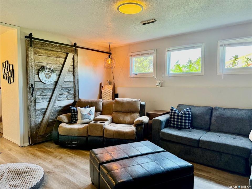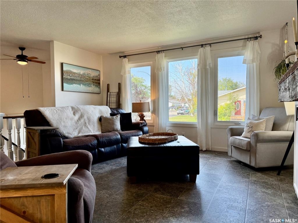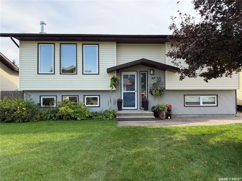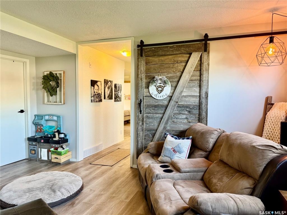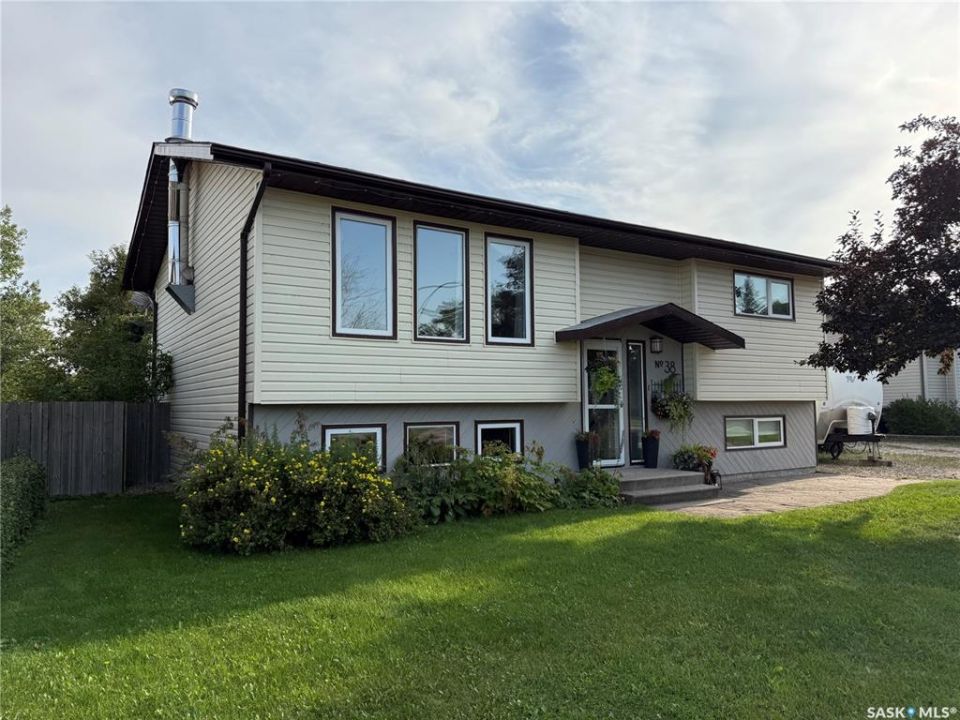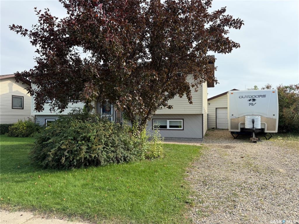 Show Home Style Bi-Level with 4 Bedrooms in Lanigan! Step into this beautifully maintained bi-level home, featuring 4 bedrooms, 2 bathrooms, and exceptional upgrades throughout. The bright and inviting foyer welcomes you into a space that combines comfort and style! Upstairs, the kitchen boasts ample cabinetry, a pantry, and views of the backyard, flowing seamlessly into the dining area with access to the two-tiered back deck—perfect for entertaining. The living room showcases a stunning electric fireplace feature wall, creating a cozy focal point for gatherings. The main floor offers 2 bedrooms and a 3-piece bath with tile shower, while the fully developed lower level includes 2 additional bedrooms, a spacious family room, 4-piece bathroom, dedicated storage room, and a laundry/utility area. Enjoy outdoor living in the fenced backyard, complete with a two-tiered deck, natural gas BBQ hookup, hot tub, patio area, raised garden beds, mature trees and shrubs, and a storage shed. A double detached garage with updated opener (2022) and a rear RV parking area adds convenience and value. Notable Updates Include:2015: Water heater 2019: Electric fireplace, backyard fence, RV parking area 2022: Garage door opener system 2023: Washer/dryer, farmhouse apron sink, basement tub/toilet/taps 2024: Fresh paint, kitchen tap, central vac attachments Ongoing: Trim work, wainscoting, dental molding, added shelving, updated closet doors Located in the welcoming community of Lanigan, close to BHP Jansen and Nutrien Lanigan mine sites, with great amenities including a new K–12 school, new daycare (under construction), new swimming pool, golf course, rec complex, and hospital. This move-in-ready home truly has it all—call today to schedule your private viewing!