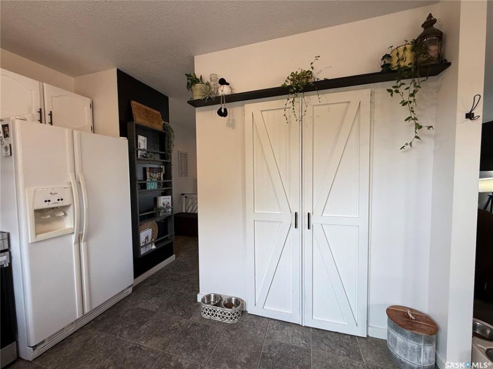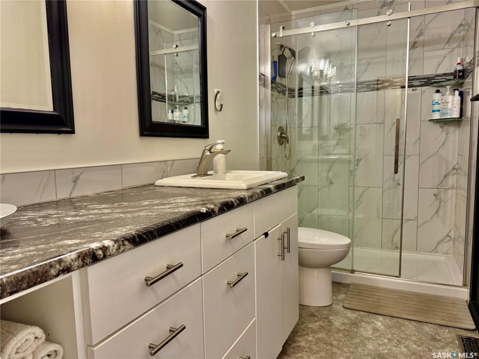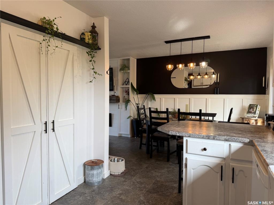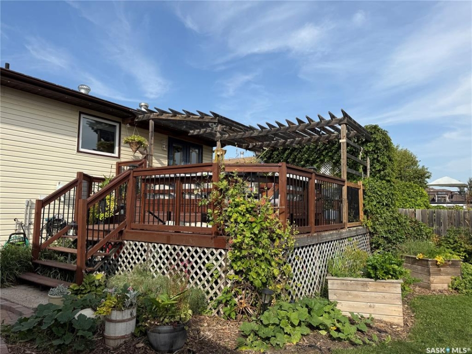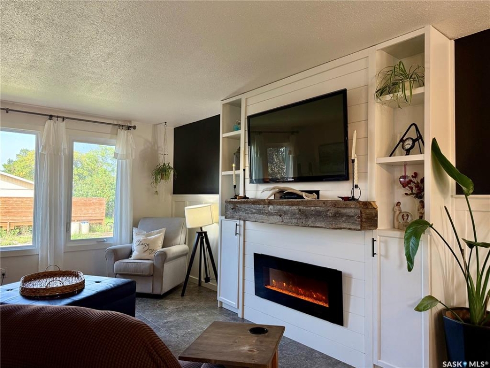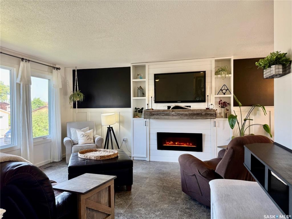 Show Home Style Bi-Level with 4 Bedrooms in Lanigan! Step into this beautifully maintained bi-level home, featuring 4 bedrooms, 2 bathrooms, and exceptional upgrades throughout. The bright and inviting foyer welcomes you into a space that combines comfort and style! Upstairs, the kitchen boasts ample cabinetry, a pantry, and views of the backyard, flowing seamlessly into the dining area with access to the two-tiered back deck—perfect for entertaining. The living room showcases a stunning electric fireplace feature wall, creating a cozy focal point for gatherings. The main floor offers 2 bedrooms and a 3-piece bath with tile shower, while the fully developed lower level includes 2 additional bedrooms, a spacious family room, 4-piece bathroom, dedicated storage room, and a laundry/utility area. Enjoy outdoor living in the fenced backyard, complete with a two-tiered deck, natural gas BBQ hookup, hot tub, patio area, raised garden beds, mature trees and shrubs, and a storage shed. A double detached garage with updated opener (2022) and a rear RV parking area adds convenience and value. Notable Updates Include:2015: Water heater 2019: Electric fireplace, backyard fence, RV parking area 2022: Garage door opener system 2023: Washer/dryer, farmhouse apron sink, basement tub/toilet/taps 2024: Fresh paint, kitchen tap, central vac attachments Ongoing: Trim work, wainscoting, dental molding, added shelving, updated closet doors Located in the welcoming community of Lanigan, close to BHP Jansen and Nutrien Lanigan mine sites, with great amenities including a new K–12 school, new daycare (under construction), new swimming pool, golf course, rec complex, and hospital. This move-in-ready home truly has it all—call today to schedule your private viewing!