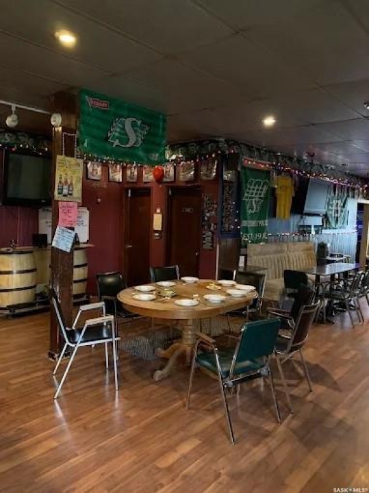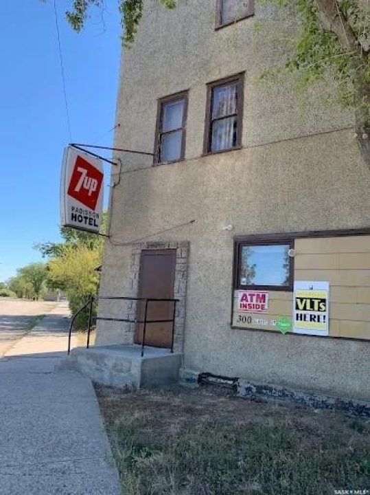 An excellent investment opportunity! This property is ideally located in the vibrant town of Radisson, just off the Yellowhead Highway and just a 50-minute drive from Saskatoon. This is a mature, turnkey business with a stable customer base and multiple revenue streams, including a bar, catering, seven rentable rooms, three VLTs, a pool table, a jukebox, an ATM, and a valuable off-sale liquor license. This three-story building boasts 4,800 square feet of space, providing ample space for your business. Owners will also enjoy a spacious 890-square-foot living area with a full kitchen, bathroom, and two bedrooms. Recent upgrades include a newer walk-in cooler compressor and water heater. There's also a private, fenced-in patio.