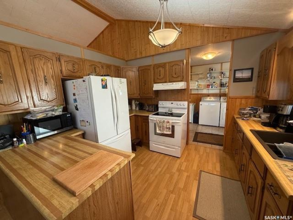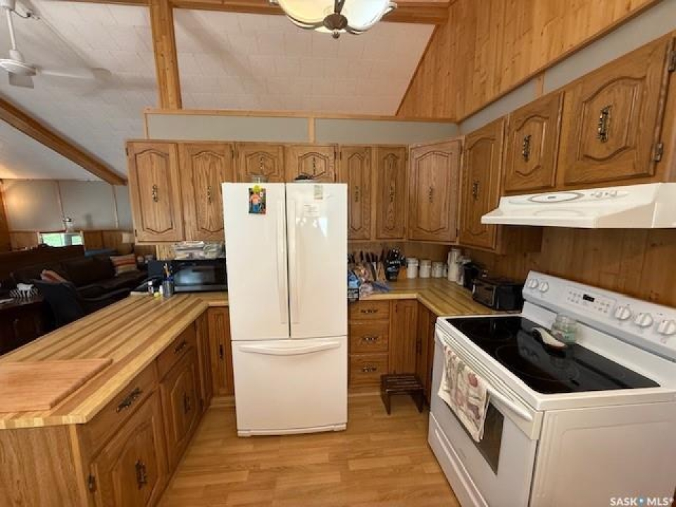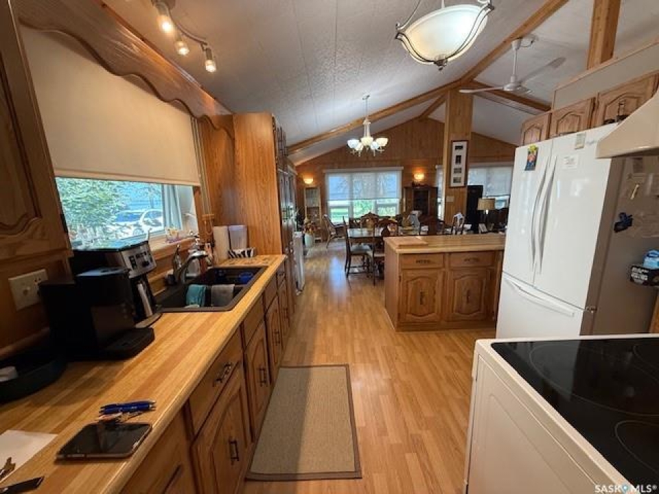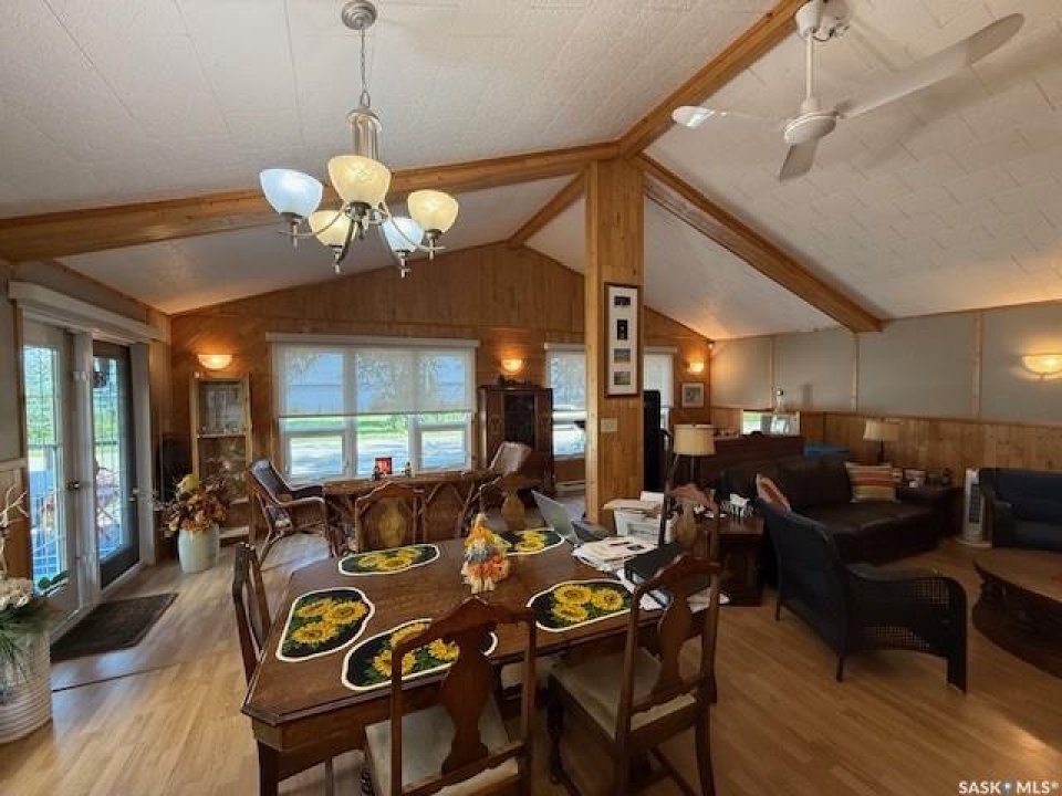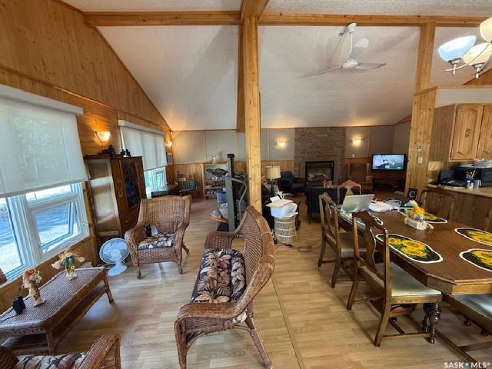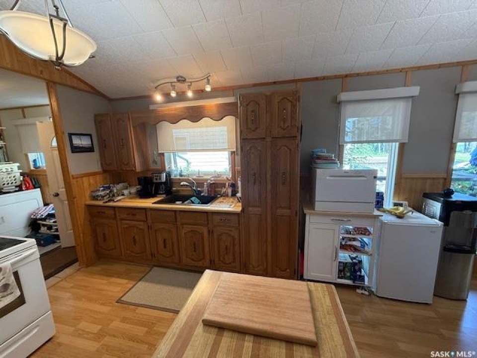 Escape to nature without sacrificing comfort in this beautifully maintained 4-bedroom, 1-bathroom cabin just steps from the shimmering shores of Madge Lake. Located in the Kamsack subdivision, this year-round getaway offers stunning lake views from across the road and all the amenities you need for seasonal or permanent living. Interior features offer spacious open-concept layout with vaulted ceilings and large windows framing lake views, U-shaped kitchen with generous counter space, dining area perfect for hosting, cozy living room with gas fireplace, ideal for chilly evenings, full 4-piece bathroom, renovated living area (2001), 200-amp electrical service, and a 5 ft crawl space with sump pump. Outdoor living includes expansive wooden deck with gas BBQ hookup and propane fire table, fully fenced backyard with garden boxes, perennials, a tranquil fishpond, fire pit for starlit gatherings, detached 2-car garage (built 2004) with 60-amp service and remote doors, and powered storage shed. Utilities & extras include asphalt driveway, new septic system (2020), 400G water tank + extra tank with gas pump for hauling water in winter, generator for backup power, includes all appliances and most furniture; just move in and relax. Whether you're seeking a peaceful retreat or a lively lakefront lifestyle, this cabin delivers. Don't miss your chance to own a slice of paradise at Madge Lake.