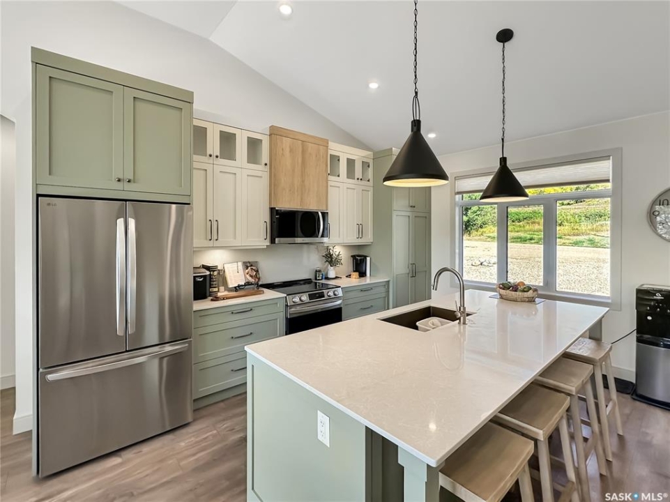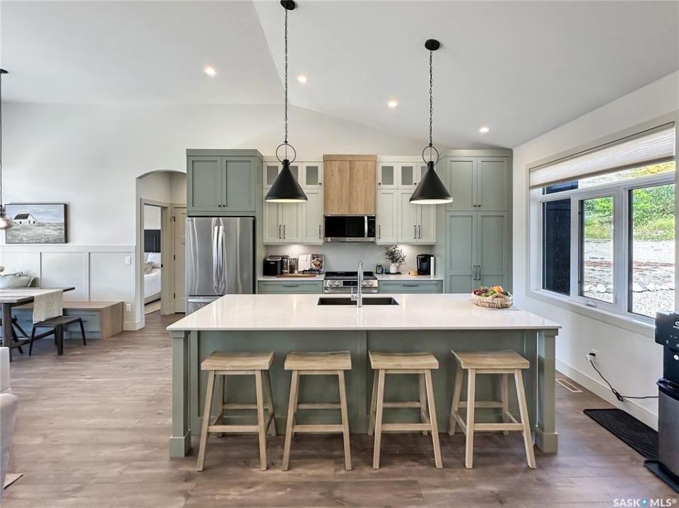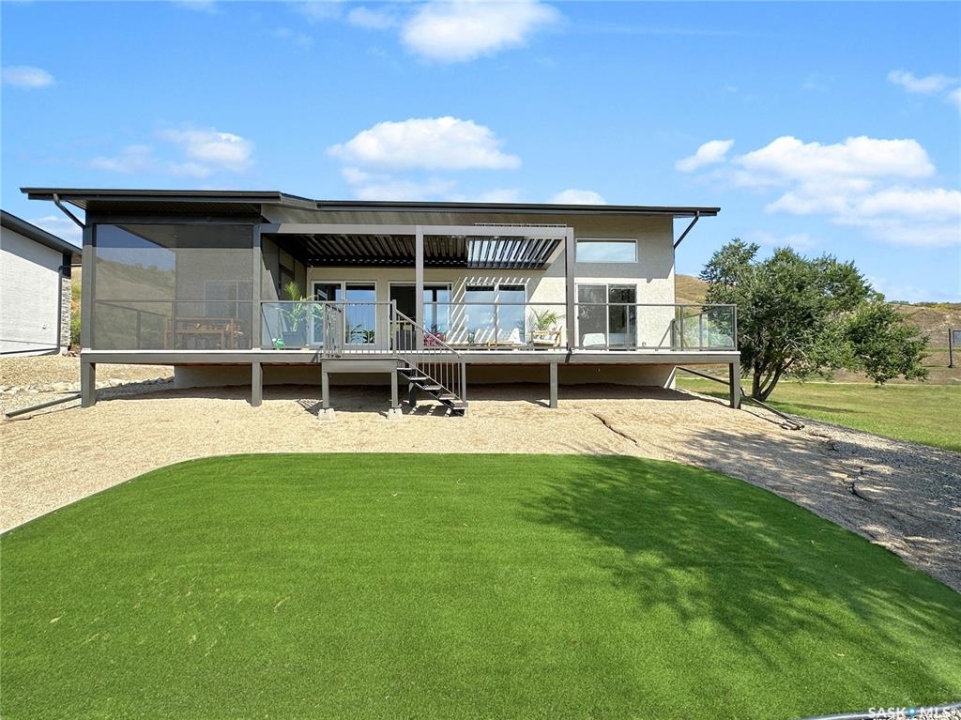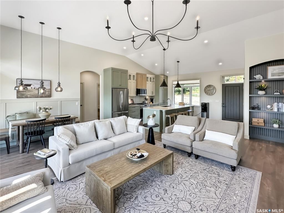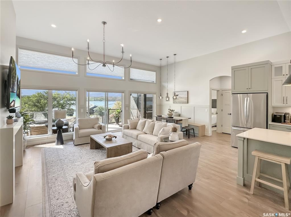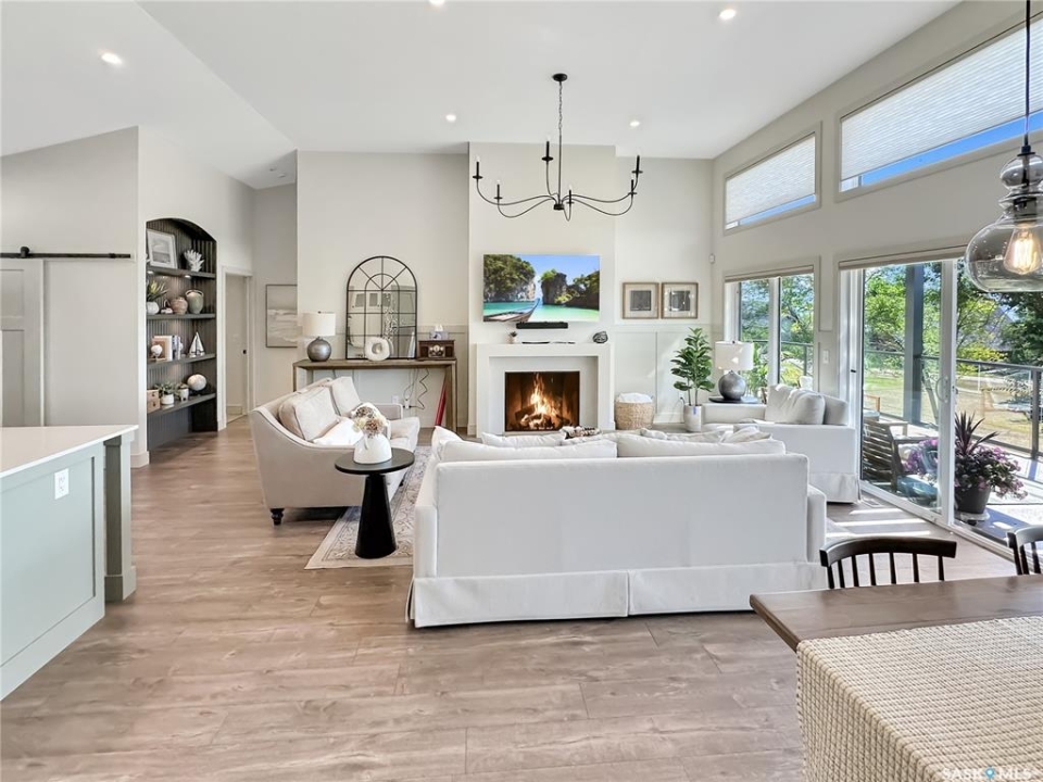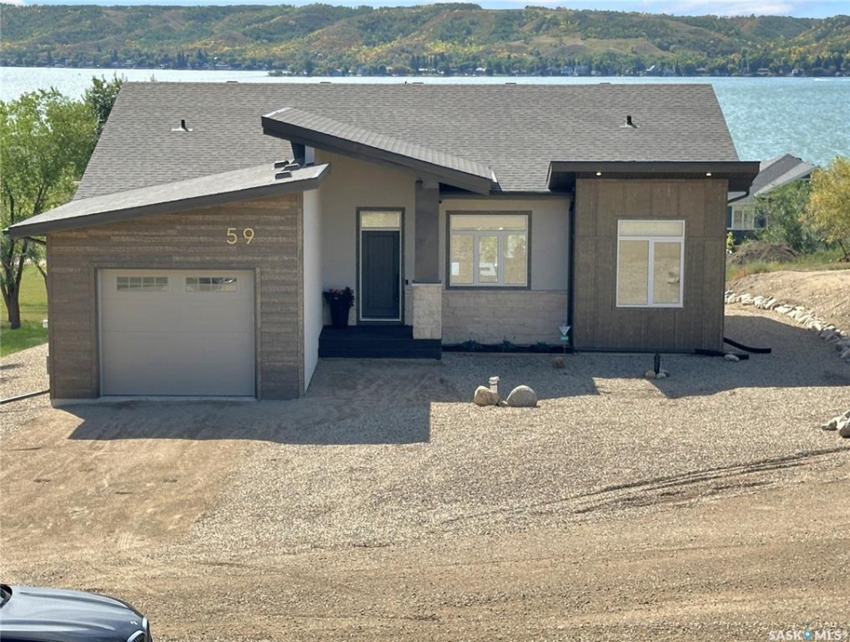 Welcome to 59 Aaron Court, nestled in the beautiful subdivision of Jasmin on Echo. Immaculate and virtually brand new, this furnished and professionally decorated home offers the perfect blend of comfort, style, and unbeatable lake views. Whether you're looking for a year-round residence or a relaxing retreat, this 3-bedroom, 2-bathroom property with an attached 16x24 insulated garage is ready to welcome you home. Step inside to discover an inviting open-concept layout with vaulted ceilings that seamlessly connects the living room, dining area, and kitchen—ideal for family living and entertaining alike. The thoughtfully designed kitchen features a large eat-up island, quartz countertops, stainless steel appliances, and a calming blend of natural wood tones and beach-inspired neutral finishes. A wall of floor-to-ceiling windows fills the space with natural light and frames uninterrupted views of Echo Lake, creating a peaceful and picturesque backdrop to your everyday life. The cozy living room, complete with a fireplace, leads to a covered lakeside deck with a remote controlled pergola. Enjoy outdoor dining or relaxing evenings with a screened in area, and take in the stunning views from sunrise to sunset. The spacious primary bedroom offers deck access, breathtaking lake views, and a luxurious four-piece ensuite. Two additional bedrooms provide plenty of space for family or guests, complemented by a second full bathroom. The well appointed mud room features built in cabinetry, a custom bench, and a sliding barn-style door, with direct access to the insulated garage for convenience. The front and back yards are beautifully xeriscaped, designed for easy upkeep so you can focus on enjoying your surroundings. Additional features include central air conditioning and high quality finishes throughout, making this home truly move-in-ready. Don't miss out, call today to take the first step toward your new life at the lake!