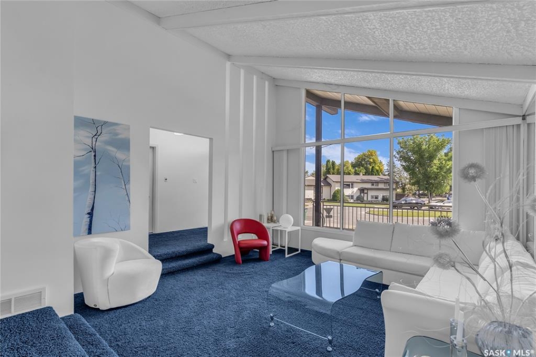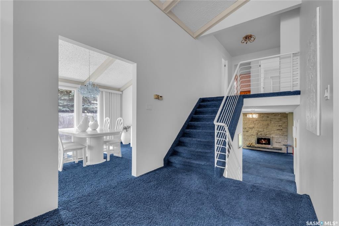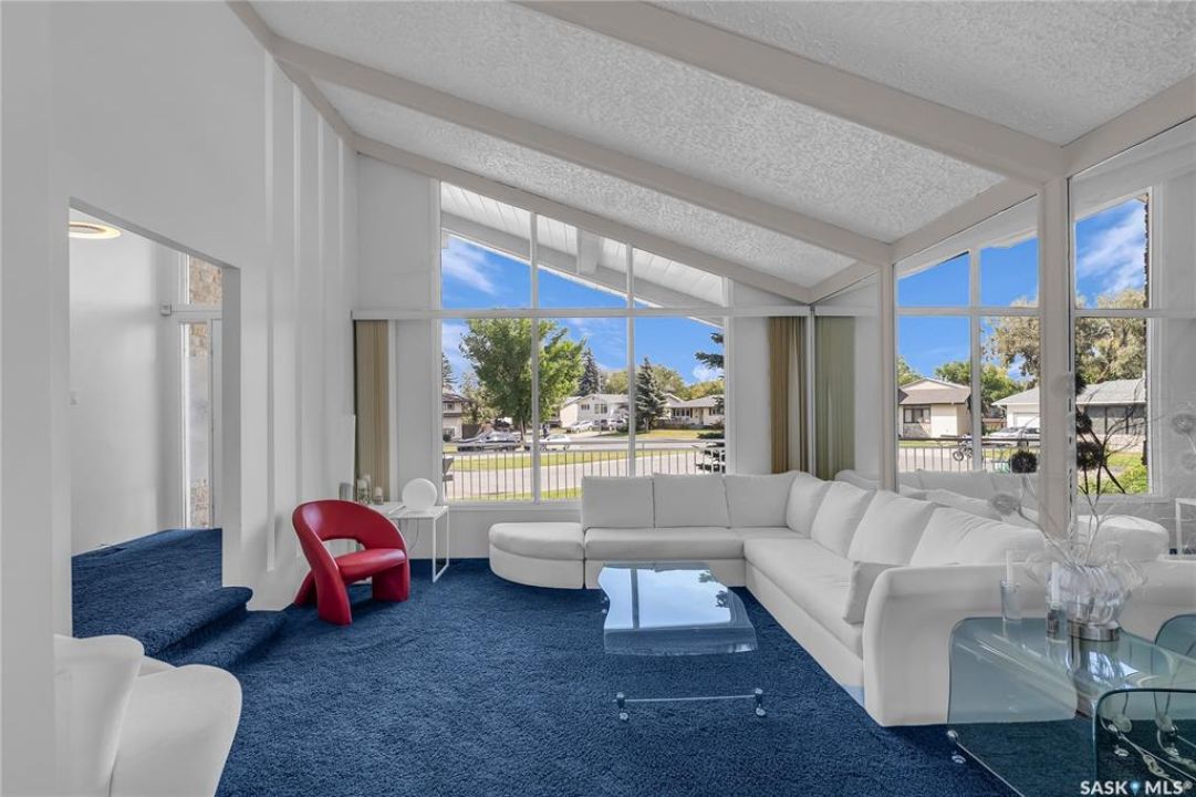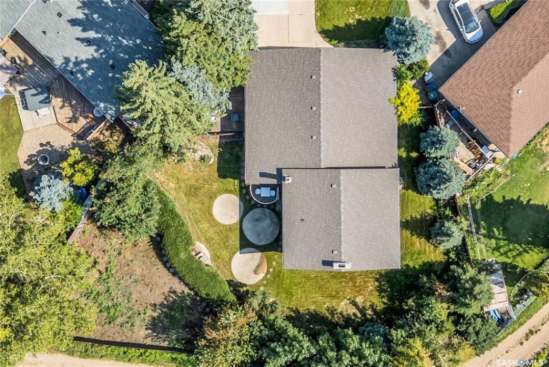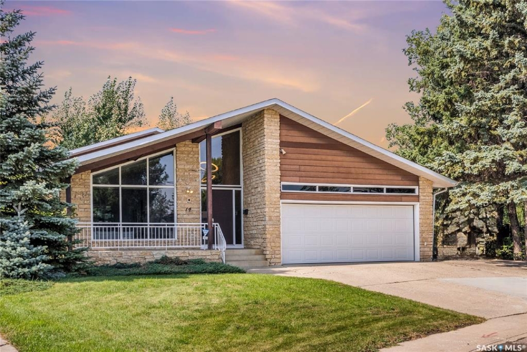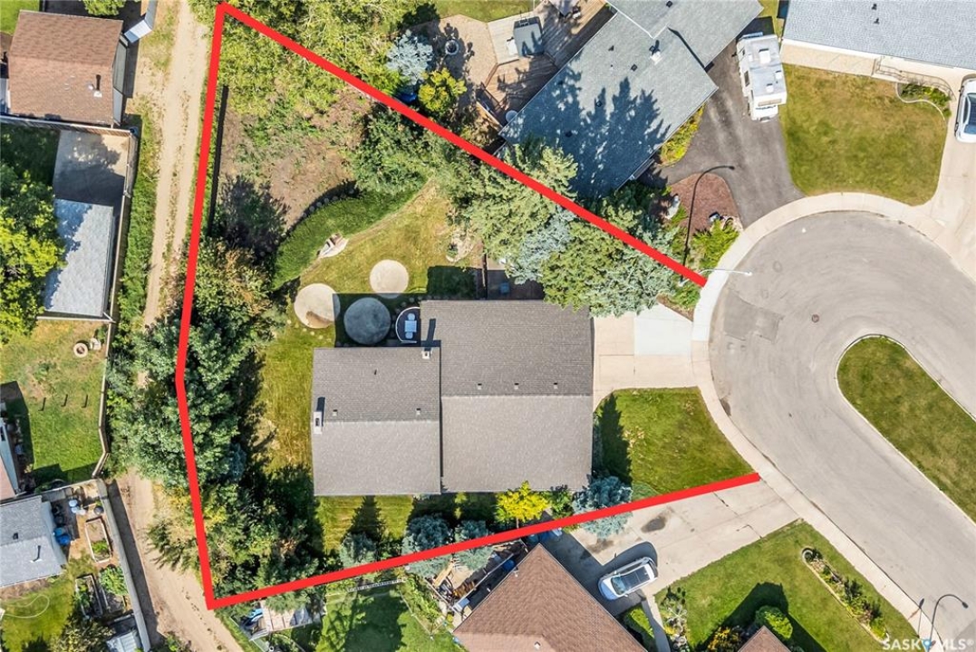 Welcome to a true neighbourhood landmark! This iconic 2,549 sqft. custom-built home has been cherished by its original owner and sits proudly on a quiet cul-de-sac. Set on an extraordinary 12,000+ sqft. pie-shaped lot, this property offers space and character unlike anything else on the market. The curb appeal is unmatched with unique architecture, brick detailing, oversized windows, and soaring vaulted ceilings that create an immediate “wow” factor. The main level features a large sunken living room filled with natural light, a formal dining area, and a spacious kitchen with breakfast nook, newer flooring, and stove. From here, step out onto the deck and into the incredible backyard—complete with multiple patio circles and endless space for entertaining, gardening, or simply enjoying the outdoors. Upstairs, you'll find two exceptionally large bedrooms plus a cozy primary retreat with walk-in closet and 2-piece ensuite. A main bath with a sunken tub completes this level. The lower level offers a private den/office, a huge family room with floor-to-ceiling windows and a charming stone adorned fireplace, along with an additional full bathroom with shower and separate laundry room. The basement adds even more living space with new carpet, an additional bedroom, rec room, and an oversized crawlspace for storage. Practical updates include a new furnace (2022), newer central A/C, and newer shingles. The double attached garage ensures plenty of parking and convenience. Homes like this are truly rare—loaded with character, exceptionally well cared for, and sitting on one of the largest lots in the area. Close to schools, parks, and all commercial amenities, this is your chance to own a piece of local history.