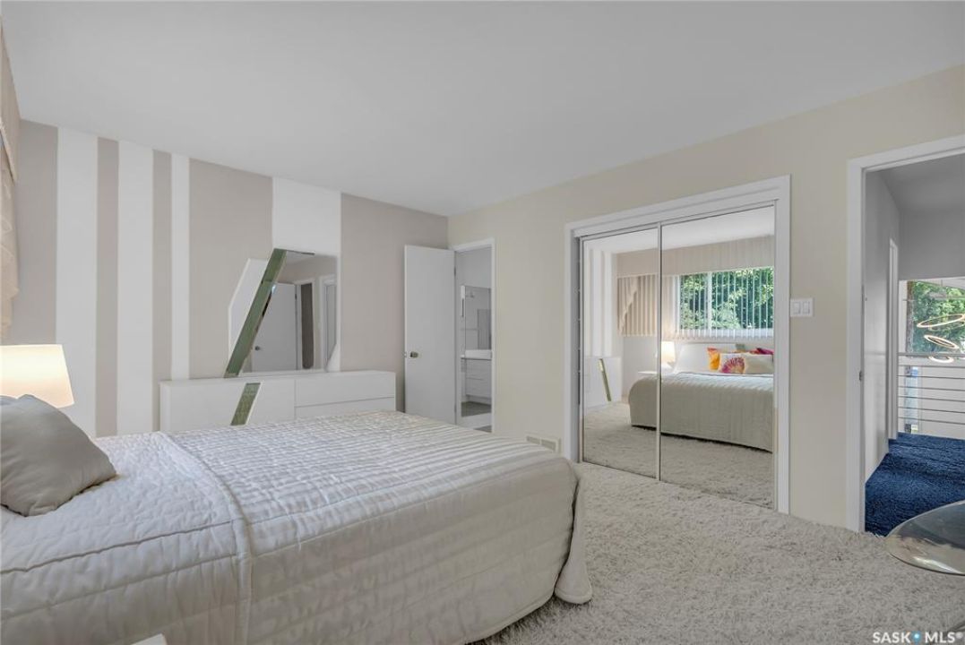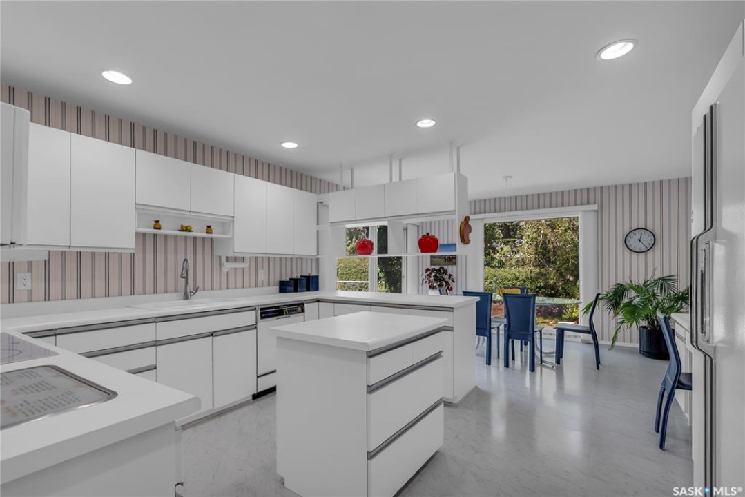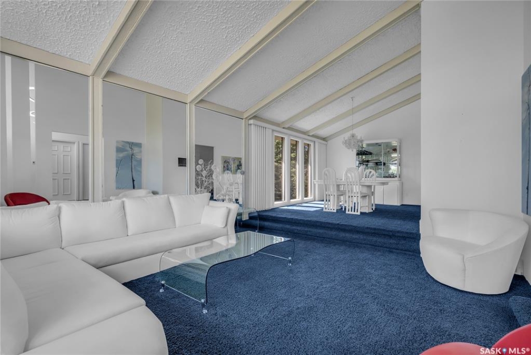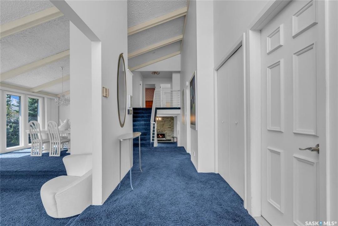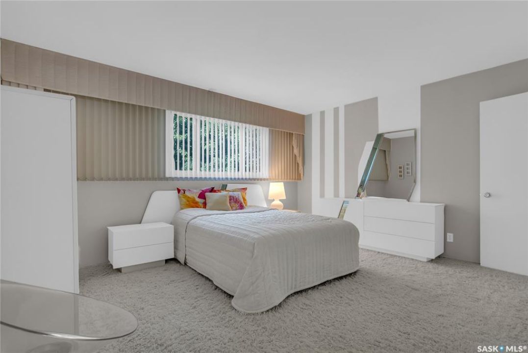 Welcome to a true neighbourhood landmark! This iconic 2,549 sqft. custom-built home has been cherished by its original owner and sits proudly on a quiet cul-de-sac. Set on an extraordinary 12,000+ sqft. pie-shaped lot, this property offers space and character unlike anything else on the market. The curb appeal is unmatched with unique architecture, brick detailing, oversized windows, and soaring vaulted ceilings that create an immediate “wow” factor. The main level features a large sunken living room filled with natural light, a formal dining area, and a spacious kitchen with breakfast nook, newer flooring, and stove. From here, step out onto the deck and into the incredible backyard—complete with multiple patio circles and endless space for entertaining, gardening, or simply enjoying the outdoors. Upstairs, you'll find two exceptionally large bedrooms plus a cozy primary retreat with walk-in closet and 2-piece ensuite. A main bath with a sunken tub completes this level. The lower level offers a private den/office, a huge family room with floor-to-ceiling windows and a charming stone adorned fireplace, along with an additional full bathroom with shower and separate laundry room. The basement adds even more living space with new carpet, an additional bedroom, rec room, and an oversized crawlspace for storage. Practical updates include a new furnace (2022), newer central A/C, and newer shingles. The double attached garage ensures plenty of parking and convenience. Homes like this are truly rare—loaded with character, exceptionally well cared for, and sitting on one of the largest lots in the area. Close to schools, parks, and all commercial amenities, this is your chance to own a piece of local history.