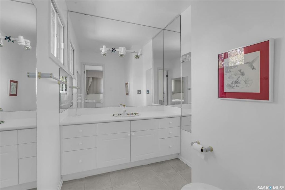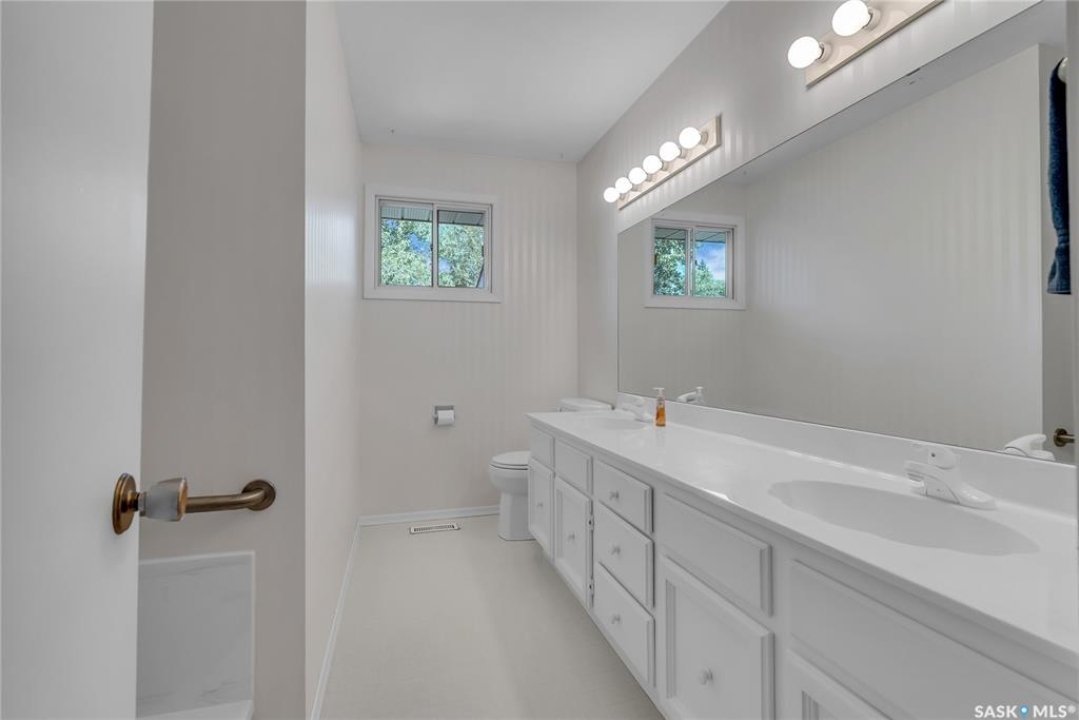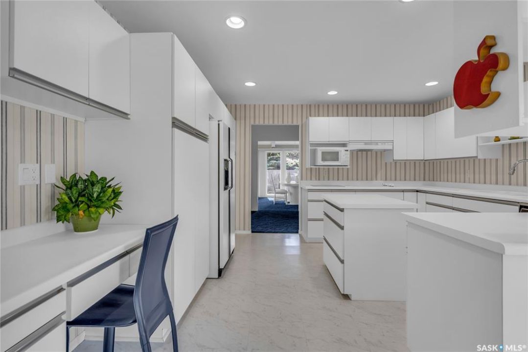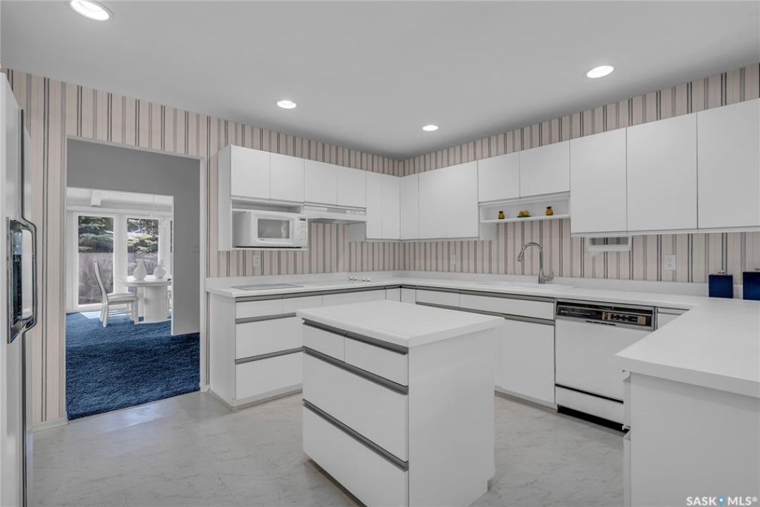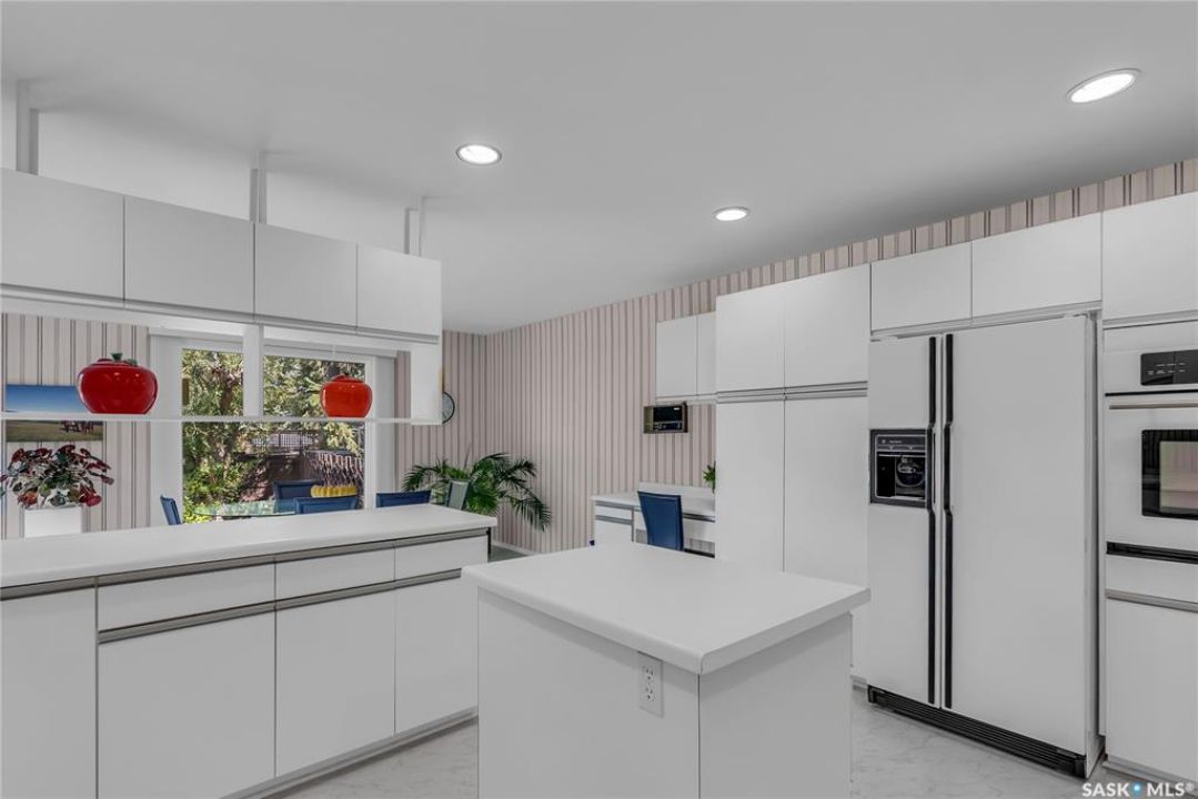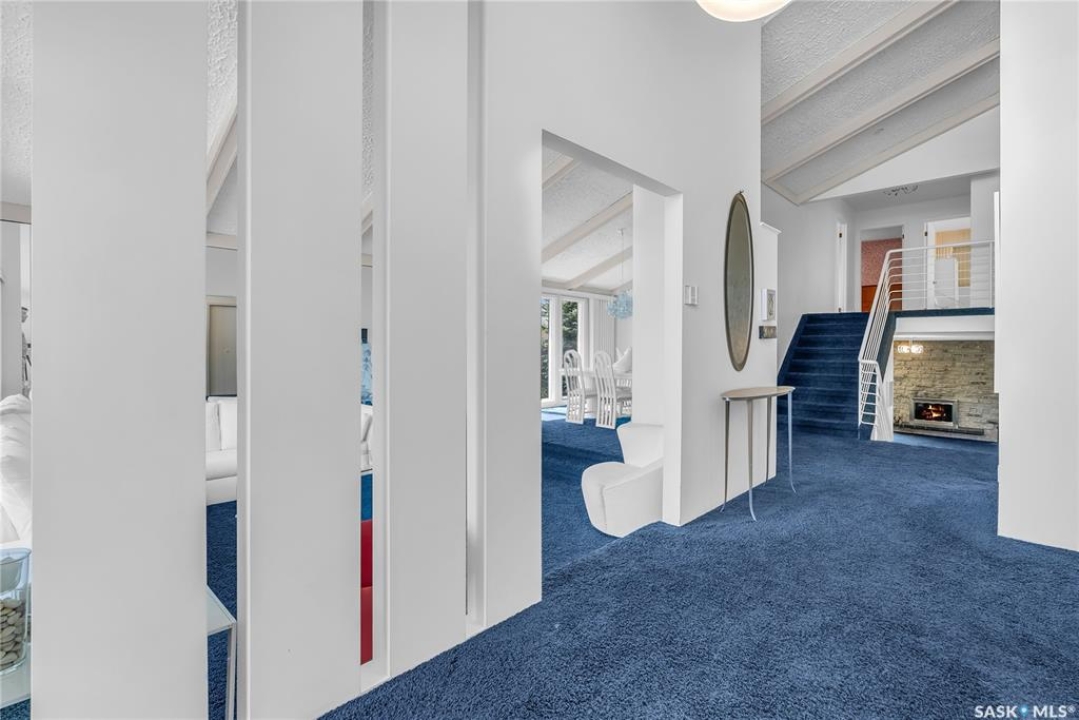 Welcome to a true neighbourhood landmark! This iconic 2,549 sqft. custom-built home has been cherished by its original owner and sits proudly on a quiet cul-de-sac. Set on an extraordinary 12,000+ sqft. pie-shaped lot, this property offers space and character unlike anything else on the market. The curb appeal is unmatched with unique architecture, brick detailing, oversized windows, and soaring vaulted ceilings that create an immediate “wow” factor. The main level features a large sunken living room filled with natural light, a formal dining area, and a spacious kitchen with breakfast nook, newer flooring, and stove. From here, step out onto the deck and into the incredible backyard—complete with multiple patio circles and endless space for entertaining, gardening, or simply enjoying the outdoors. Upstairs, you'll find two exceptionally large bedrooms plus a cozy primary retreat with walk-in closet and 2-piece ensuite. A main bath with a sunken tub completes this level. The lower level offers a private den/office, a huge family room with floor-to-ceiling windows and a charming stone adorned fireplace, along with an additional full bathroom with shower and separate laundry room. The basement adds even more living space with new carpet, an additional bedroom, rec room, and an oversized crawlspace for storage. Practical updates include a new furnace (2022), newer central A/C, and newer shingles. The double attached garage ensures plenty of parking and convenience. Homes like this are truly rare—loaded with character, exceptionally well cared for, and sitting on one of the largest lots in the area. Close to schools, parks, and all commercial amenities, this is your chance to own a piece of local history.