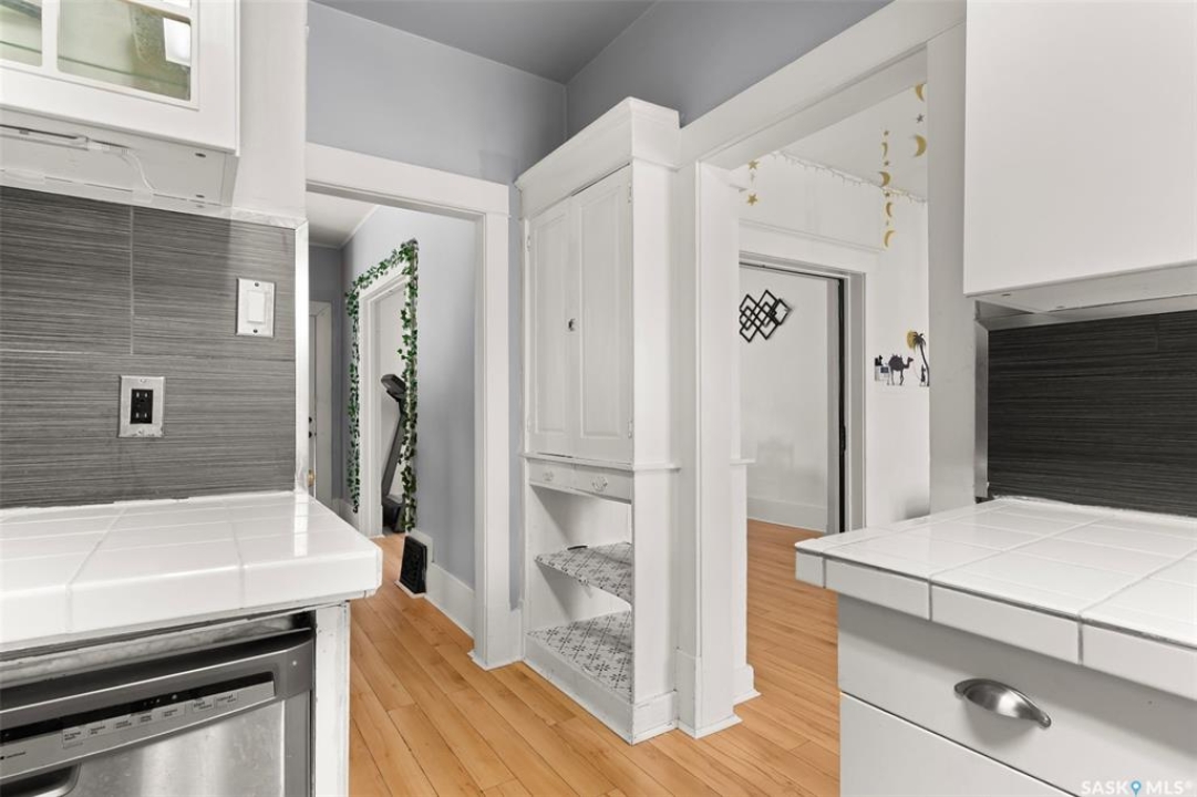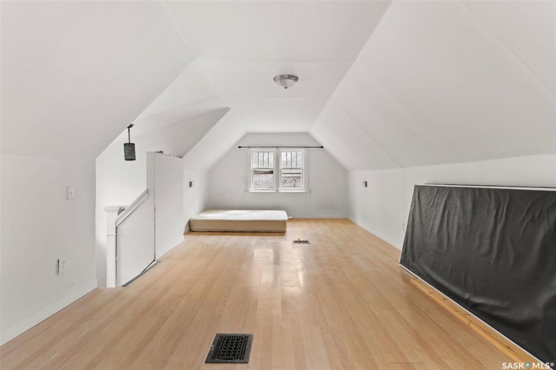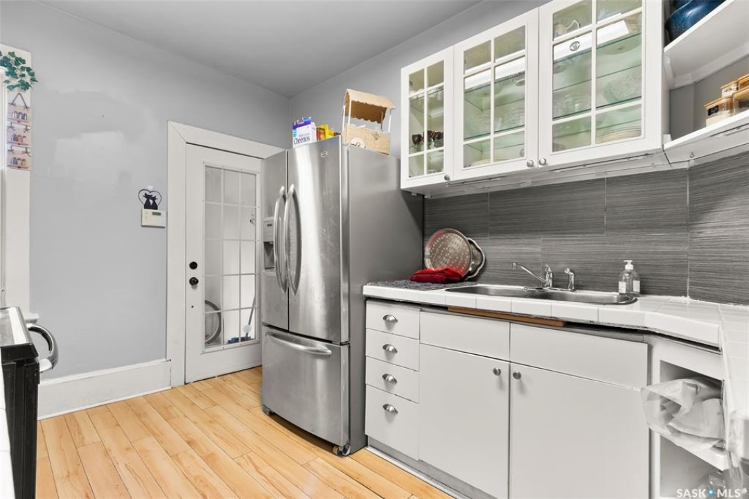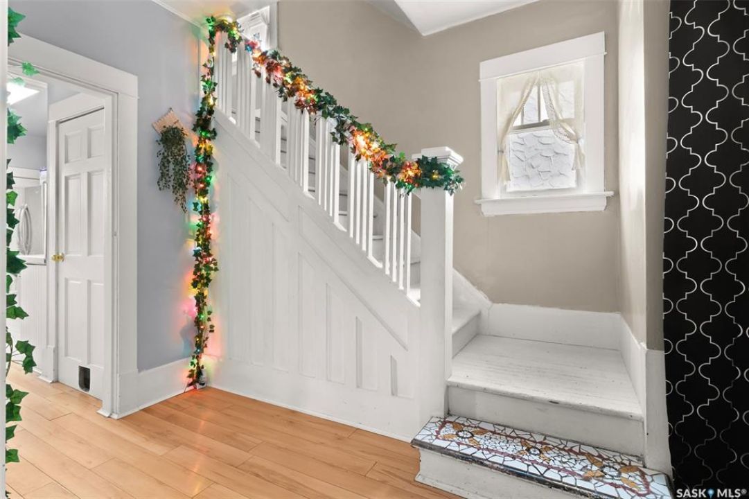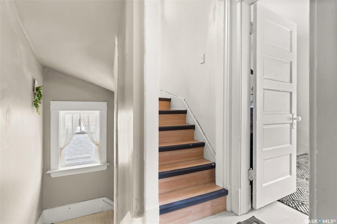 Cathedral 2 1/2 storey home with 1400 sq ft of living space has been updated with HE furnace(2021), Shingles(2022) and in recent years this home has seen new siding, exterior rigid insulation. Functional kitchen is setup with tile backsplash and stainless steel appliances. Second floor includes has three bedrooms. Primary bedroom includes unique second level fenced balcony. Third level is open for buyer's to choose. Basement includes laundry and three piece bath. Back yard is fully fenced with room for two off street parking spaces.