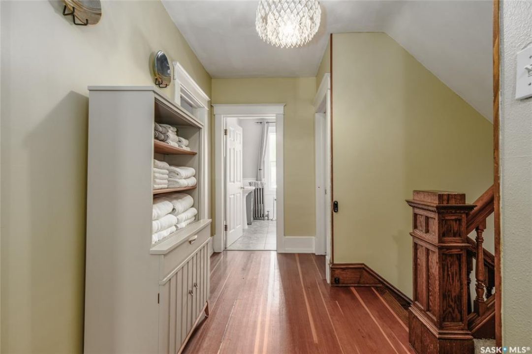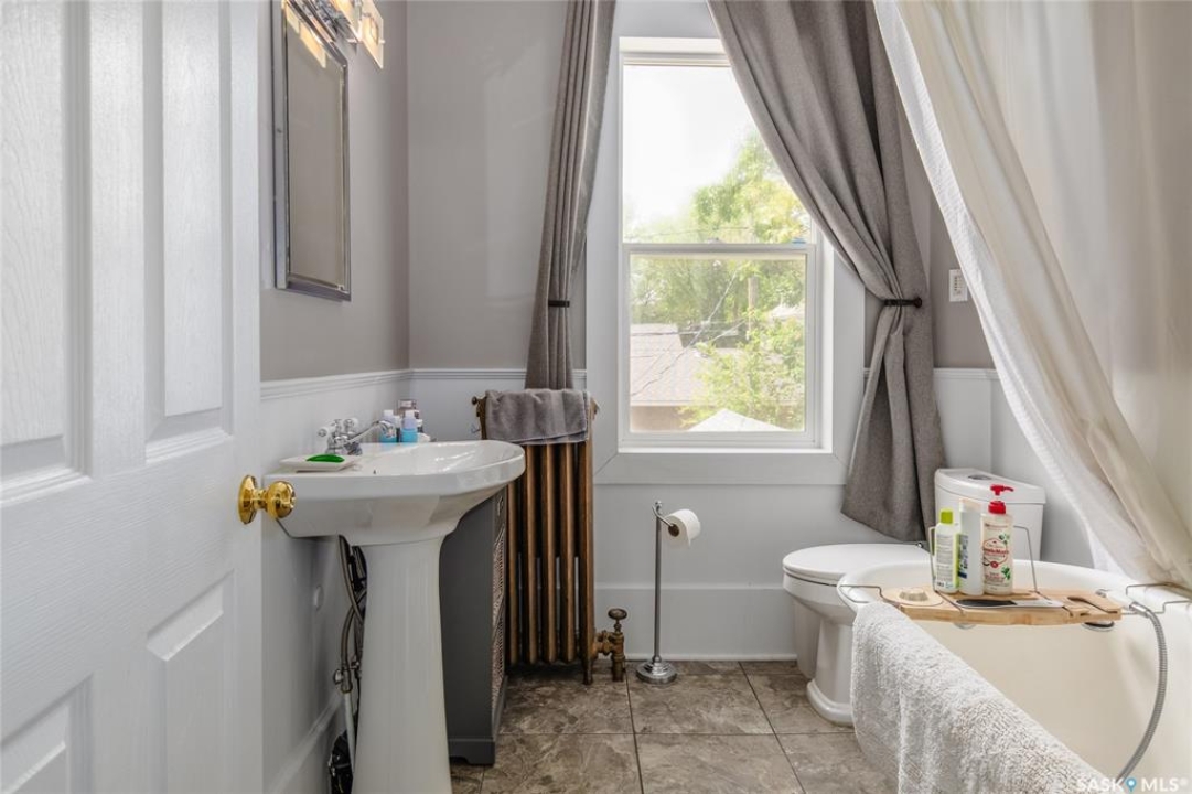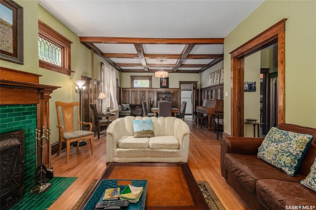 Welcome to this beautiful, character-filled home nestled on the tree-lined and sought-after Clifton Avenue. From the moment you arrive, the inviting front covered porch sets the tone—this is a home with heart, history, and so much to offer! Step inside and you'll find a main floor full of warmth and possibility. A bright front office and 2-piece bathroom offer function and flexibility right off the entry. The living room is cozy and welcoming, featuring a wood-burning fireplace with stunning green tilework — a true focal point with vintage appeal. The dining room is simply breathtaking, with rich wood moldings and exposed ceiling beams that make every dinner feel special. The kitchen has updated countertops and a layout that could easily be opened up into the adjacent breakfast room for even more space and flow. Head upstairs and you'll find four comfortable bedrooms and a 4-piece bathroom complete with a charming clawfoot tub — classic and functional. The third level is a hidden gem: a sprawling loft-style room with its own 4-piece bathroom and walk-in closet. Whether you use it as your primary suite, a creative studio, or a bonus room, it's a space full of possibilities. The basement offers high ceilings and a wide-open layout, ready to be finished however you dream it — home gym, rec room, extra bedrooms... the sky's the limit. Outside, enjoy a fully landscaped yard, large deck, and complete fencing for privacy. There's even a single-car garage to round it all out. This home is more than just a place to live — it's a piece of Moose Jaw's history, beautifully preserved and waiting for its next chapter. Don't wait… book your private viewing today!