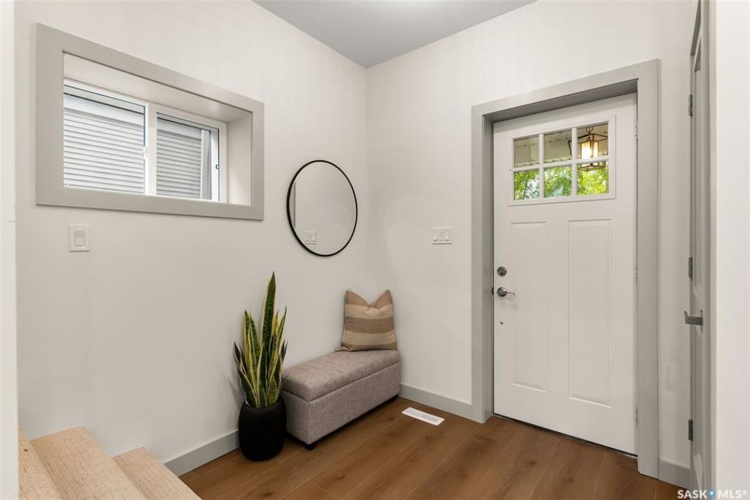 Welcome to 2257 Rae Street, an absolutely stunning and newly renovated home nestled in Regina's sought-after Cathedral neighbourhood. This 2,059 sq. ft. two-and-a-half storey residence beautifully blends timeless character with modern upgrades, offering exceptional style and function across four levels of living space. Inside, the main floor features an inviting foyer that sets the tone with wide-plank flooring, elegant archways, and an open-concept design that flows seamlessly from the living room complete with a cozy fireplace, leading into the dining area and showpiece kitchen. The chef's kitchen features quartz counters, sleek finishes, beautiful overhead lighting, custom cabinetry and plenty of space for both everyday living and entertaining. A convenient 2-piece bath and mudroom complete this level. Upstairs, you'll find three spacious bedrooms, including a primary retreat with its own spa-inspired ensuite showcasing dual vanities, gold fixtures, and a walk-in glass shower, plus a full 4-piece bathroom. The third level offers a large recreation room and a fourth bedroom, along with a 3-piece bathroom—perfect for a growing family or guest accommodations. The finished basement provides even more space with a cozy family room. Throughout the home, every detail has been thoughtfully updated, from designer lighting to fresh trim and fixtures. Outside, the property sits on a generous 4,993 sq. ft. lot with a deck, fenced yard, and lane access. The double detached garage with additional off-street parking ensures practicality matches the beauty of the home. Located in the heart of Cathedral, you'll be steps away from coffee shops, local dining, parks, and schools—truly the perfect blend of character, community, and contemporary living. This is a rare opportunity to own a completely renovated home in one of Regina's most beloved neighbourhoods.