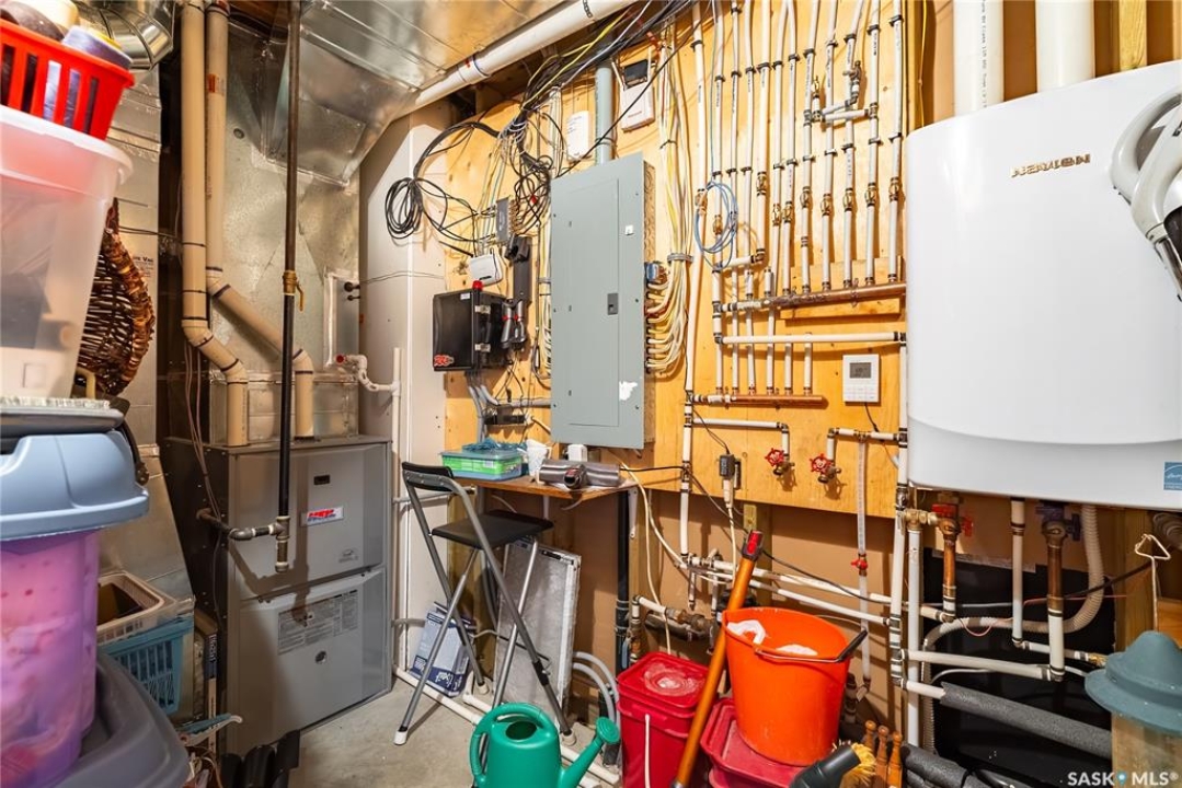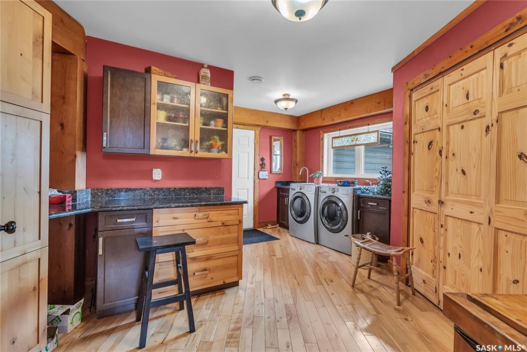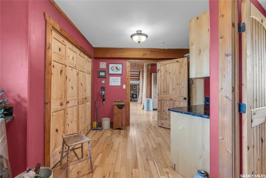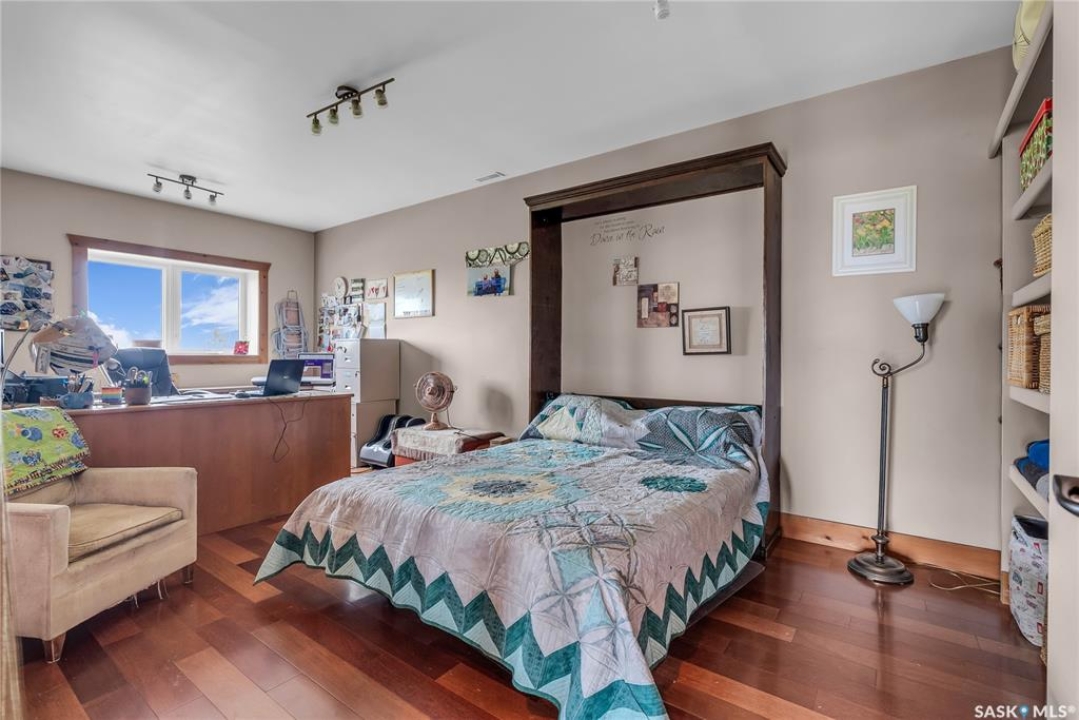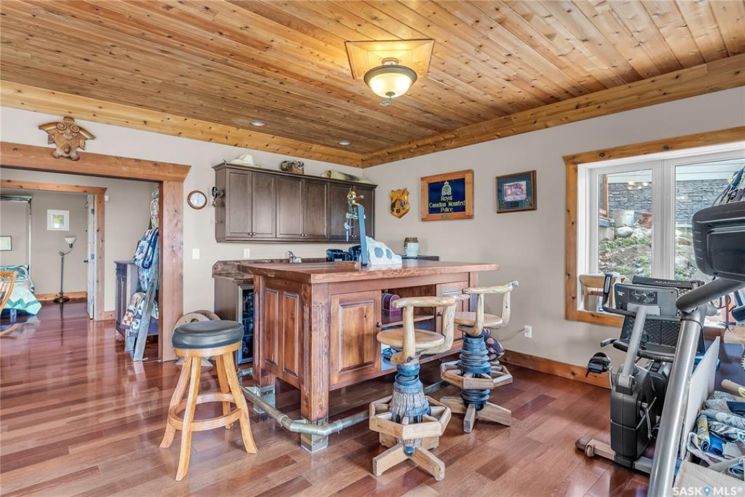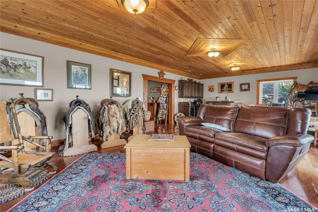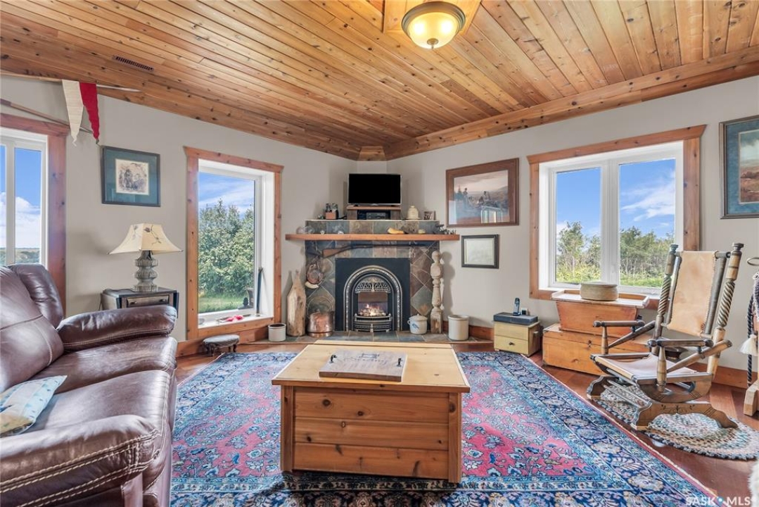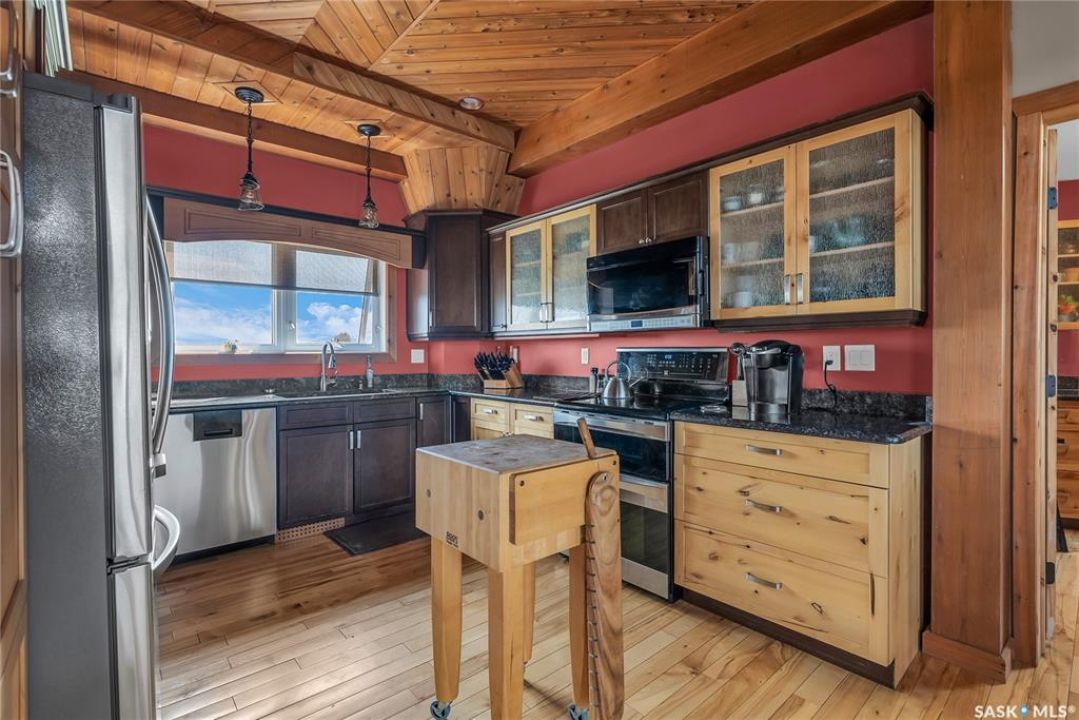 Year round sanctuary AWAITS! This stunning location of almost 5km panoramic view of the River will indeed captivate you! Inside, the interior reflects a charm and elegance. Vaulted ceilings with exposed beams, tree trunks for posts are like no other home you have seen before! A stone gas fireplace stands as the centerpiece of the main floor living space with another stove on the other side, radiating warmth and inviting cozy gatherings. The rustic style carries throughout with the light fixtures, unique vanities and imported medieval times inspired doors that greet you! The kitchen, a culinary haven, boasts handcrafted cabinetry and granite countertops, offering both functionality and style. Adjoining the dining area, it sets the stage for memorable meals shared with loved ones against the backdrop of the river. Ascending the staircase, one discovers a sanctuary of rest and relaxation in the primary bedroom suite. The primary bedroom loft allows for a bird's eye view of the surroundings in & out! Step downstairs and as you enter, you'll be greeted by the inviting gas fireplace, perfect for cozy gatherings while watching the sun set. Adjacent to the fireplace is the built-in wet bar area, ideal for entertaining guests. The walkout feature leads directly to a the enclosed hot tub structure that keeps the wind and elements away year round! The heated attached 3 car garage (28x40) is a huge asset as it combines functionality with convenience with its workshop area and vehicle storage. The yard beckons exploration, with meandering pathways leading to secluded areas for self reflection with nature. Whether basking in the warmth of the sun or reveling in the serenity of starlit nights, every moment spent in this idyllic retreat will feel like such a unique place to be! Come for your own tour and see what this hillside home offers along with its unobstructed sight lines of the South Saskatchewan River! We have a video tour available!