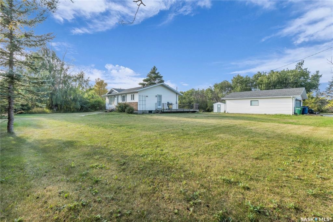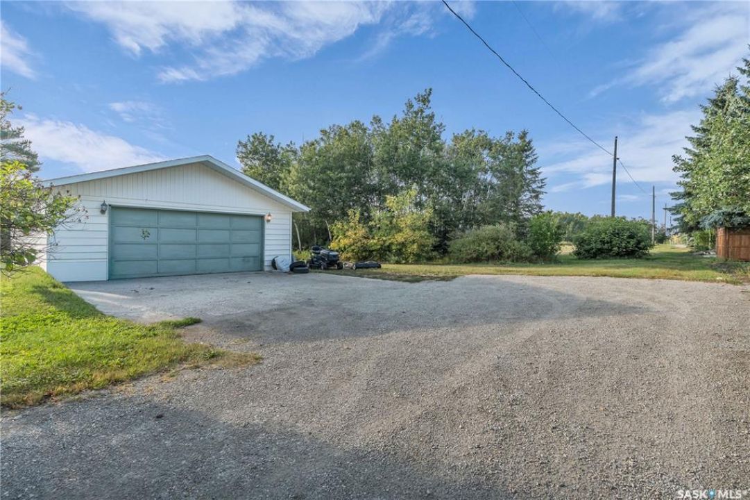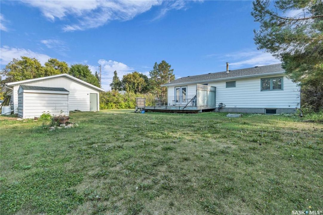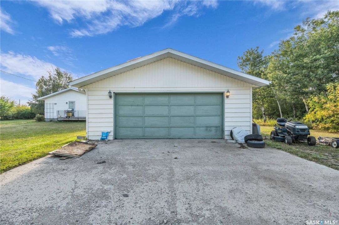 Charming Bungalow on Expansive Lot in the Village of Edenwold Discover peaceful country living with the convenience of nearby amenities in this well-kept 1,040 sq ft bungalow, nestled on seven 25' lots in the quiet Village of Edenwold. With 3 bedrooms, 2 bathrooms, and room to grow, this home offers space, comfort, and a true sense of privacy. Step onto the large exterior deck and enter into a spacious mudroom/laundry area—perfect for busy families or outdoor enthusiasts. Just off this entry, you'll find a functional kitchen with solid wood cabinetry, full appliance package, and a dedicated dining room ideal for family meals or entertaining. The bright and spacious living room features a large south-facing picture window, flooding the space with natural light. Down the hall are two bedrooms and a beautifully updated 4-piece bathroom. Downstairs, the finished lower level offers even more versatility, with a rec room that could easily serve as a 4th bedroom, complete with an oversized walk-in closet/playroom combo. You'll also find the third bedroom, a 3-piece bathroom, and ample storage space to keep everything organized. Outside is where this property truly shines—set on a massive lot surrounded by mature trees that act as a natural privacy fence, creating your own private oasis. A 24' x 30' garage provides plenty of space for vehicles, tools, or hobbies. Wildlife sightings are common here, adding to the serene charm of this unique property. Additional features include fiberglass shingles on both the house and garage, some upgraded vinyl windows, and a reliable town water supply. This is a rare opportunity to own a home with both character and room to grow in a welcoming rural community. Come experience all that Edenwold has to offer!