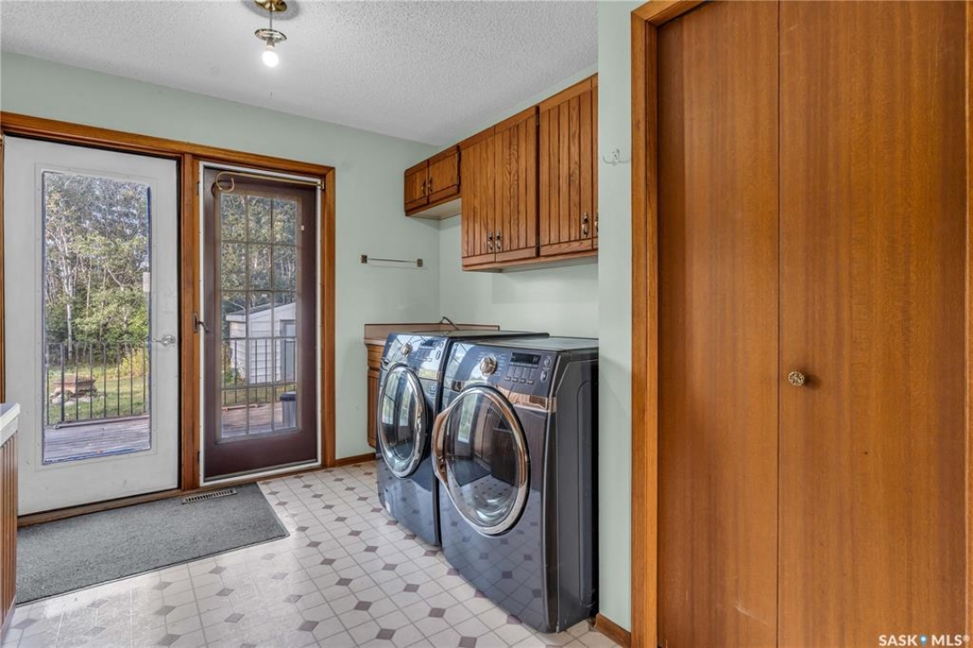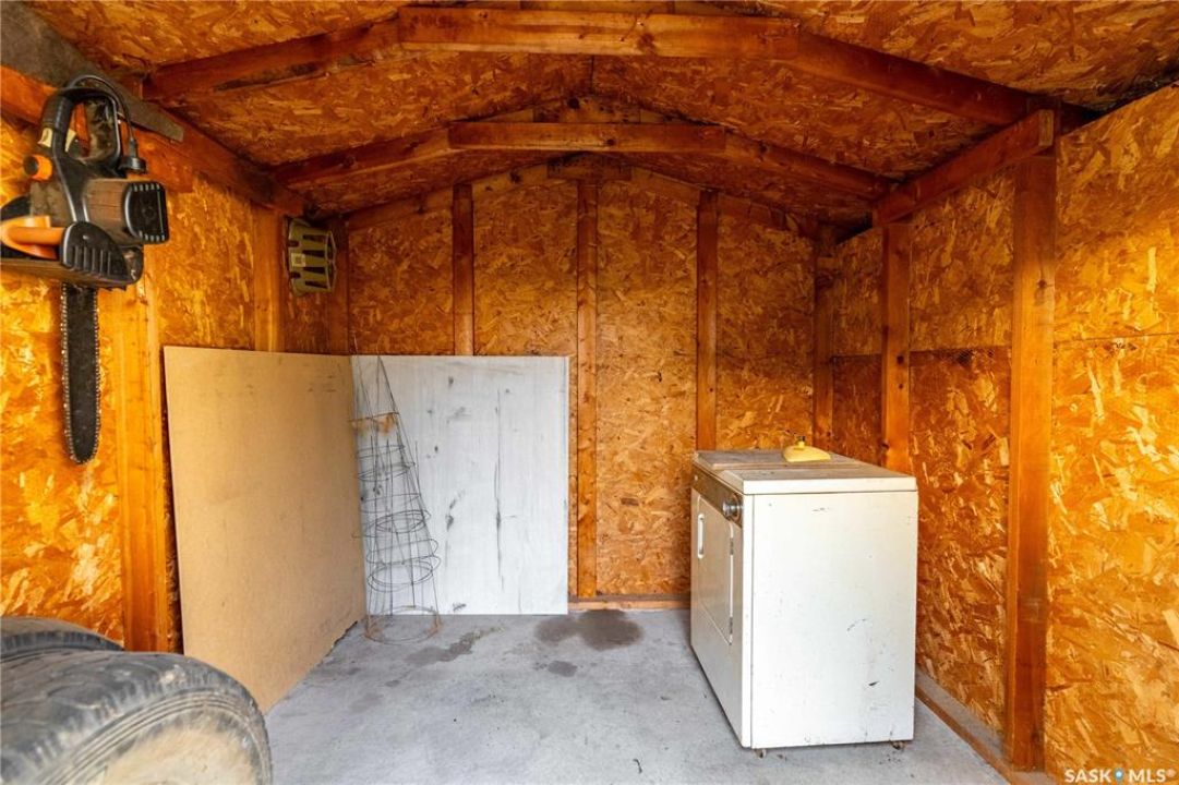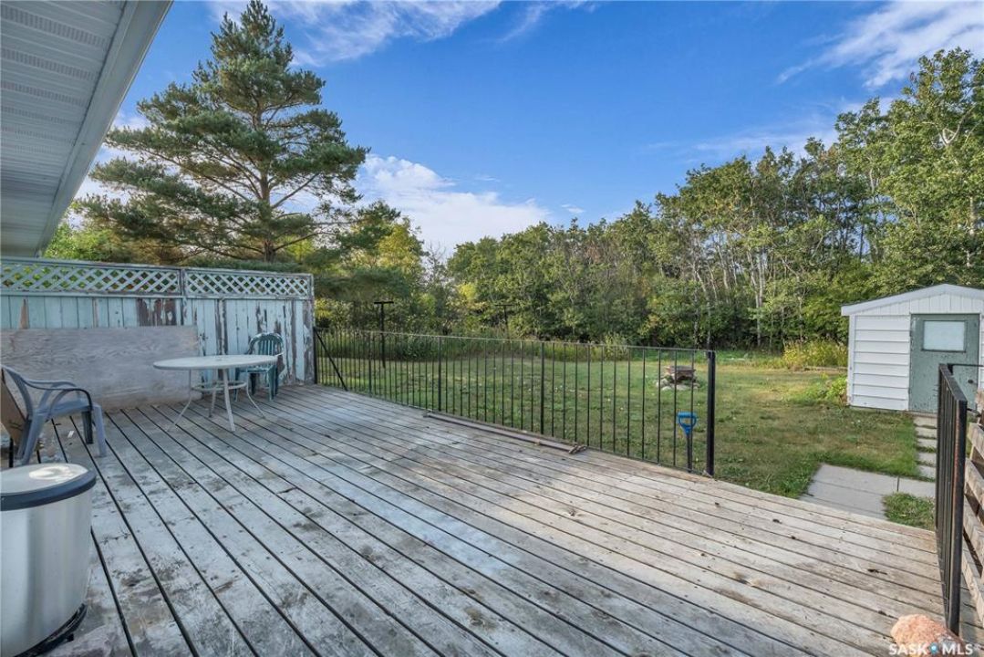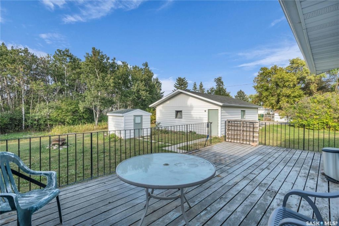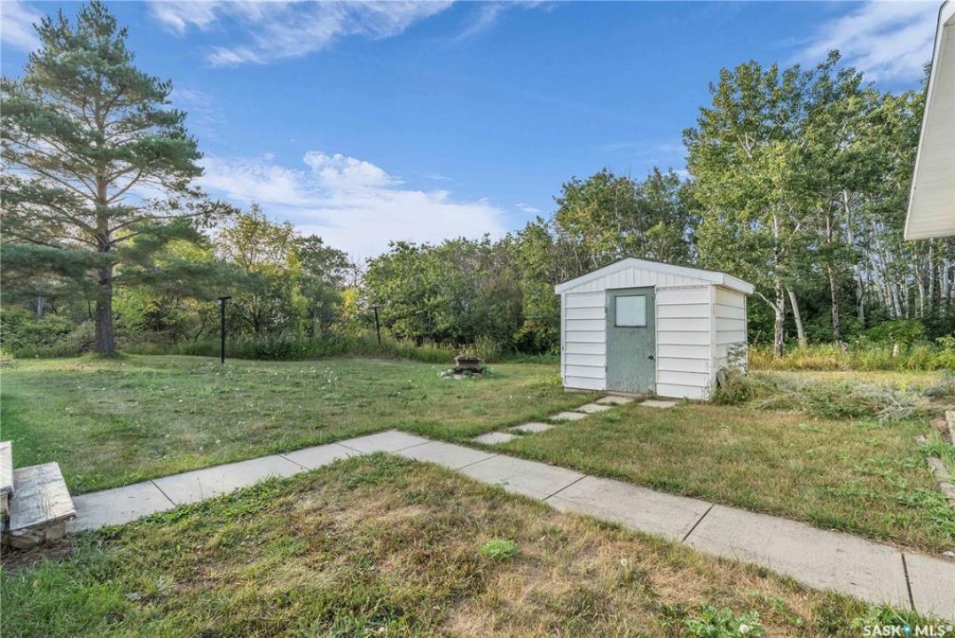 Charming Bungalow on Expansive Lot in the Village of Edenwold Discover peaceful country living with the convenience of nearby amenities in this well-kept 1,040 sq ft bungalow, nestled on seven 25' lots in the quiet Village of Edenwold. With 3 bedrooms, 2 bathrooms, and room to grow, this home offers space, comfort, and a true sense of privacy. Step onto the large exterior deck and enter into a spacious mudroom/laundry area—perfect for busy families or outdoor enthusiasts. Just off this entry, you'll find a functional kitchen with solid wood cabinetry, full appliance package, and a dedicated dining room ideal for family meals or entertaining. The bright and spacious living room features a large south-facing picture window, flooding the space with natural light. Down the hall are two bedrooms and a beautifully updated 4-piece bathroom. Downstairs, the finished lower level offers even more versatility, with a rec room that could easily serve as a 4th bedroom, complete with an oversized walk-in closet/playroom combo. You'll also find the third bedroom, a 3-piece bathroom, and ample storage space to keep everything organized. Outside is where this property truly shines—set on a massive lot surrounded by mature trees that act as a natural privacy fence, creating your own private oasis. A 24' x 30' garage provides plenty of space for vehicles, tools, or hobbies. Wildlife sightings are common here, adding to the serene charm of this unique property. Additional features include fiberglass shingles on both the house and garage, some upgraded vinyl windows, and a reliable town water supply. This is a rare opportunity to own a home with both character and room to grow in a welcoming rural community. Come experience all that Edenwold has to offer!