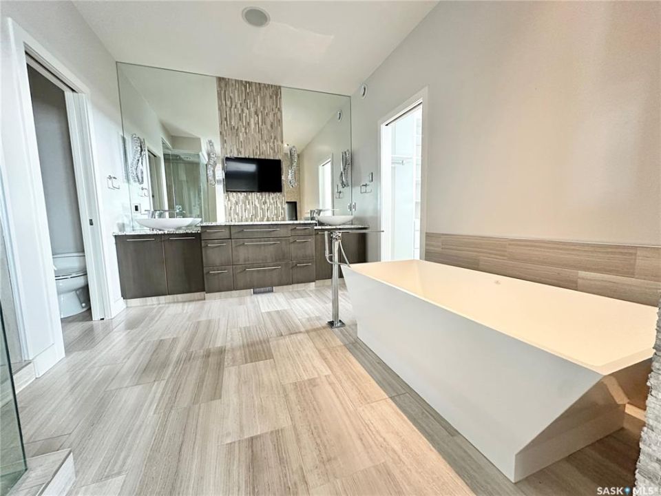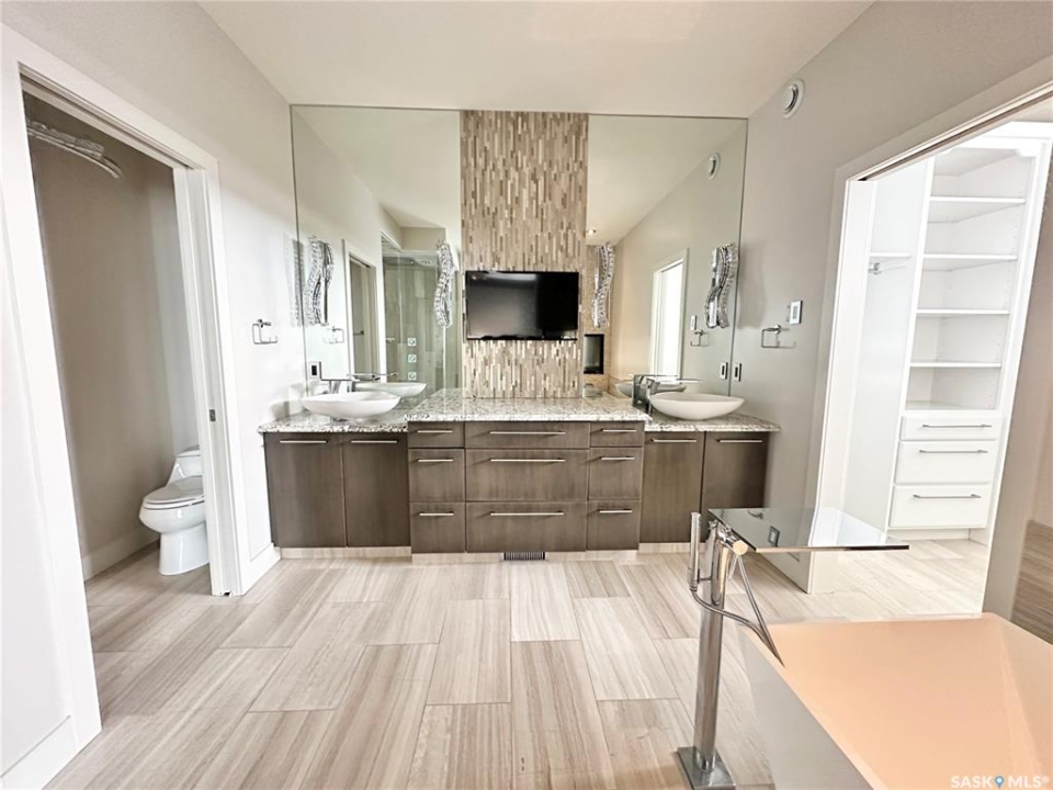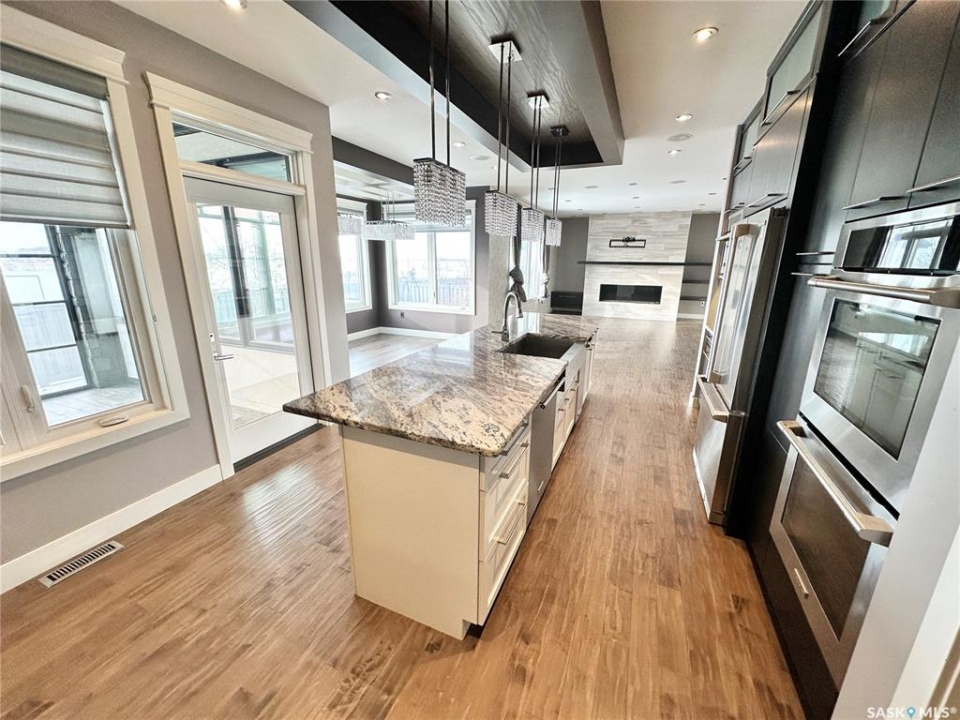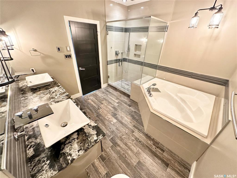 Welcome to Luxury Living in Weyburn SK! At $799K for over 3,000 finished square feet, this stunning 2 storey home is one of the best buys Weyburn has to offer. Amazing curb appeal, huge 3 car garage with in floor heat, heated marble floors, custom maple cabinets, high end stainless steel appliance package, granite countertops, butler pantry, gorgeous hardwood flooring, three different 5 piece bathrooms including the show stopping ensuite off the Primary bedroom that houses a beautiful custom tiled shower, stand alone tub, large his and her vanity, 3 way fireplace and a very well organized walk in closet. Set up for entertaining, the downstairs spoils you with in floor heat, stylish bar setup, room for a pool table/games table and large family room area. The bathroom downstairs is stunning and includes another custom shower, jacuzzi corner tub and a double vanity. Built in sound system, 3 season sun room, composite decking, amazing location just steps away from Assiniboia Park School... this home has it all, call your favourite Agent to schedule your showing!
