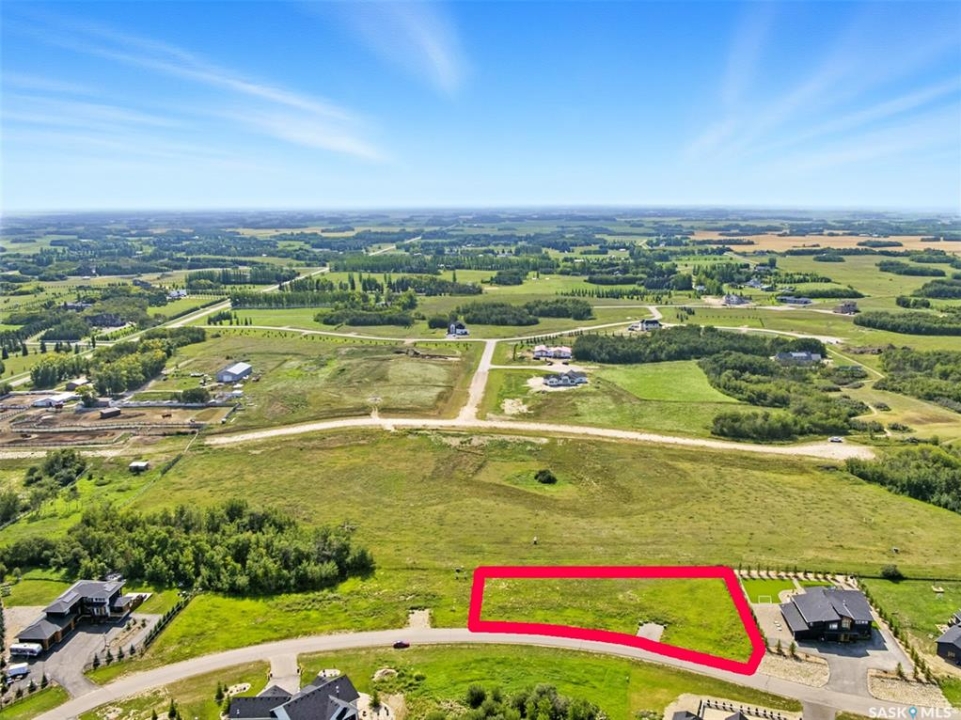 0.70 acre estate lot in the established community of Edgemont Estates, just 3 km south of Saskatoon off Clarence Avenue S. Fully developed neighbourhood with completed infrastructure and surrounding homes already built. Southern exposure lot offering ideal positioning for natural light and landscaping. Paved roads door to door with fibre internet, natural gas, and city water in place. Community amenities include outdoor gym, large rec area for children, hockey rink with warm-up shack, park with playground, and a zip-line. Perfect balance of city convenience and tranquil acreage estate living. Build your dream home without the disruption of new subdivision construction. One of the few remaining grand estate lots available in prestigious Edgemont Estates.