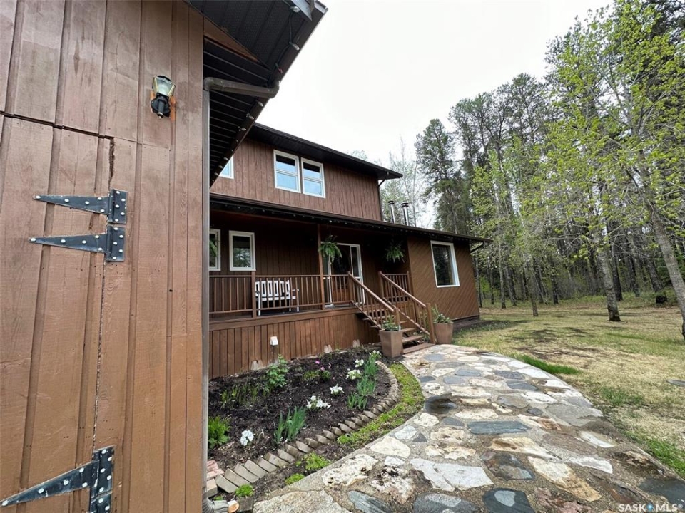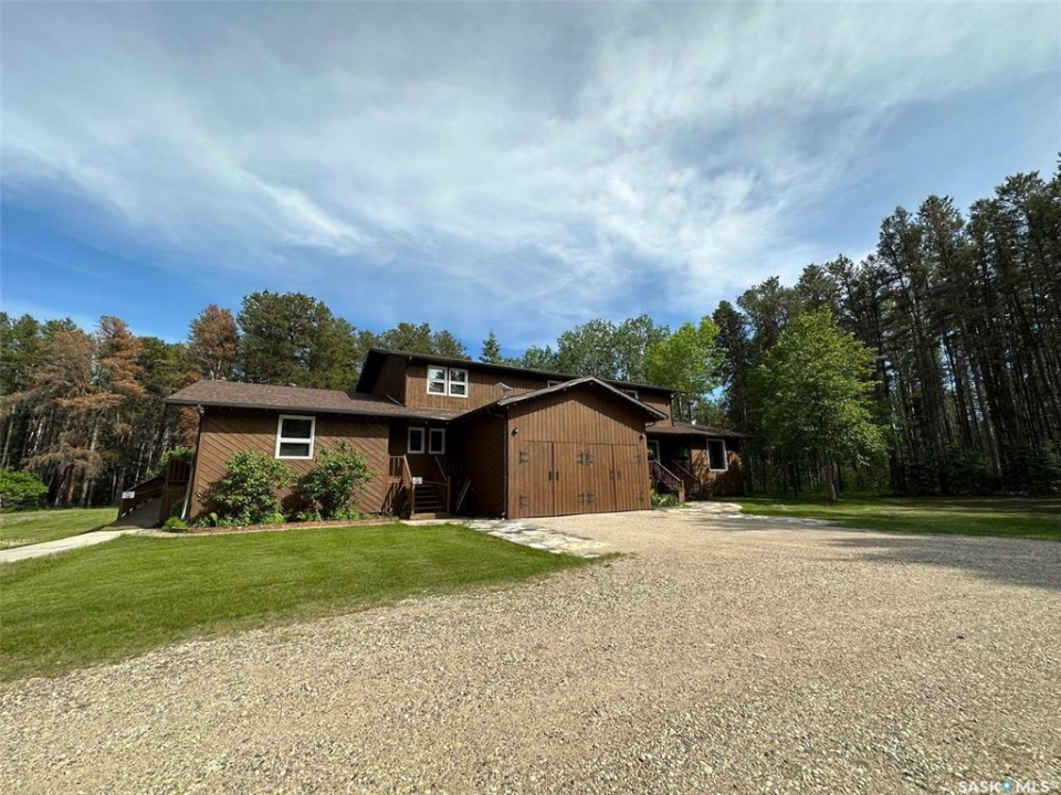 Looking for a spacious home with room to grow or have you outgrown your present house? Just five minutes from Hudson Bay, SK, tucked among pine trees, the Jennings property offers an impressive 7 bedrooms and 4 bathrooms—perfect for large families or those who love to entertain. The primary suite includes its own private 3-piece ensuite, while the main floor features a convenient laundry room and an additional bedroom. A standout feature is the separate suite on the main level, complete with private entrance, two access points, and approximately 700 sq ft of living space—ideal for rental income or multi-generational living. Set on 5.06 acres of sandy soil, this property is a gardener's dream. Some of the best water in the area. It also includes both heated and cold storage shops, with the heated shop boasting in-floor heating. The attached double garage offers direct access to the basement from both inside and outside the home. Surrounded by hundreds of mature pine trees, you'll enjoy peace, privacy, and natural beauty year-round.Don't miss your chance to explore this exceptional property—schedule a viewing or request a virtual tour today.