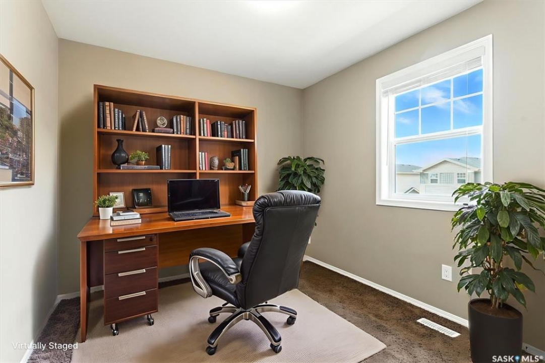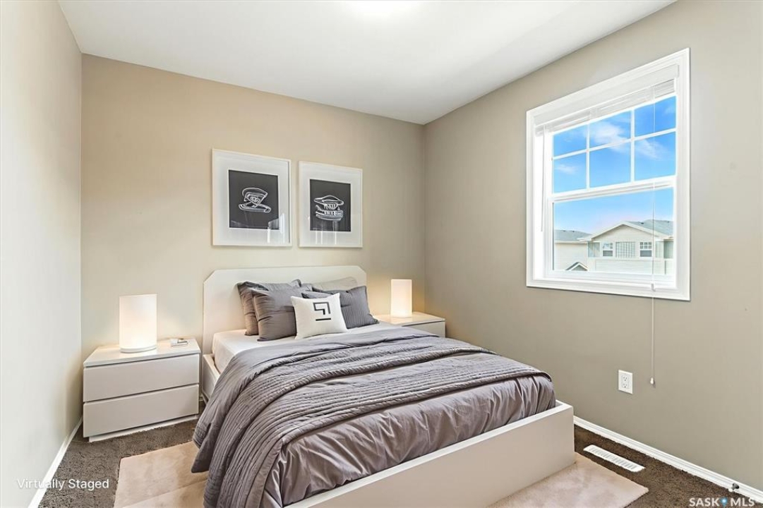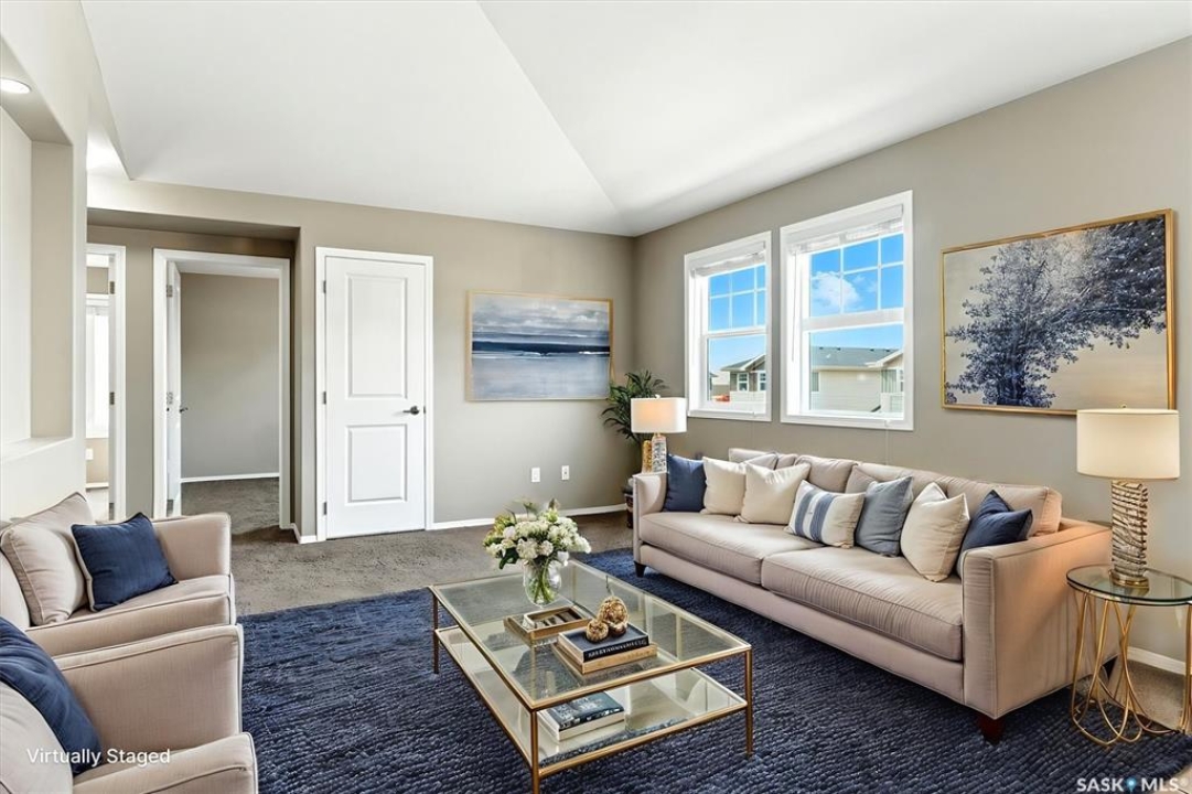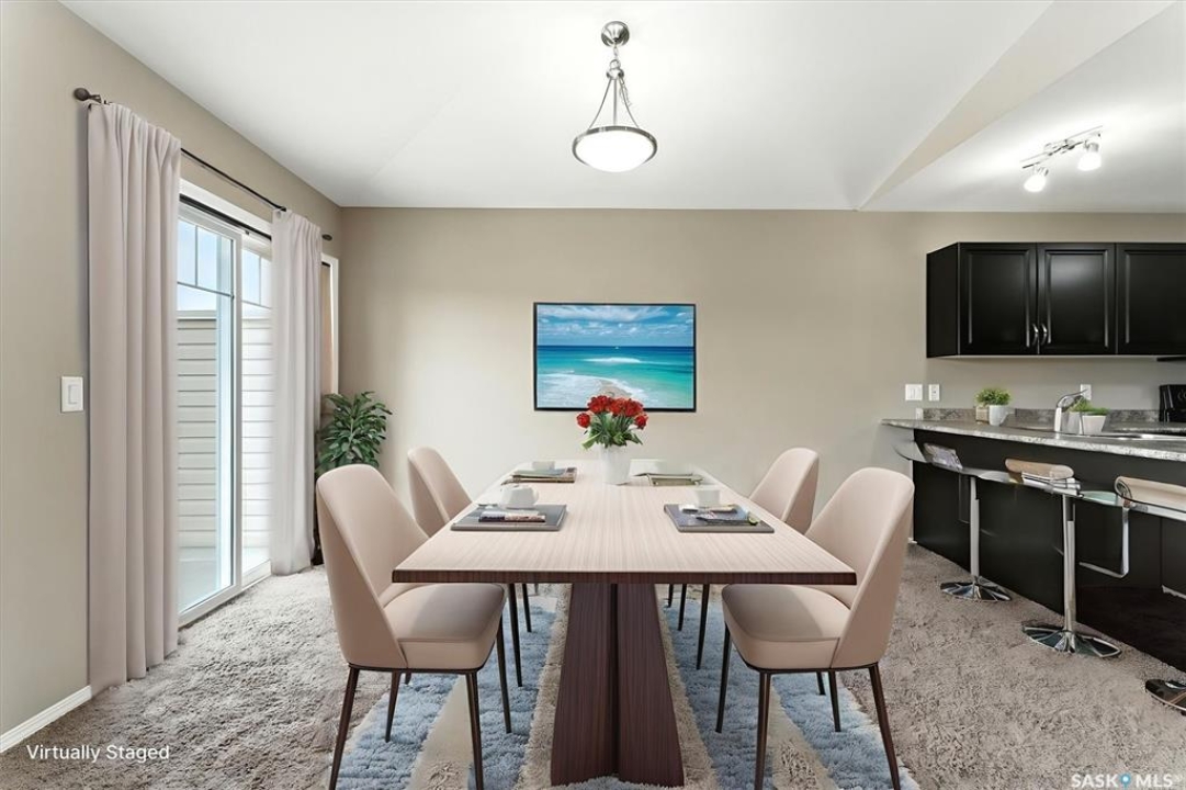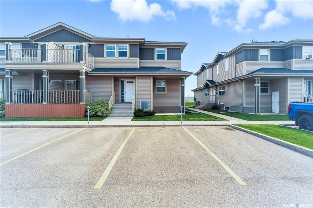 Welcome to Chaparral Ridge! This 2-bedroom, 1-bathroom townhouse is a must-see! Located in Chaparral Ridge on the Southern edge of Martensville, this home offers a perfect blend of style and comfort. The spacious kitchen is a chef's dream, featuring a corner pantry, ample cupboards and counter space. Relax and unwind on your west-facing balcony, perfect for enjoying evening sunsets. Inside, you'll find two generously sized bedrooms and a modern bathroom. Convenience is key with two electrified parking stalls, central air, additional storage space, and low condo fees. This home is vacant and ready for quick possession. Some photos are virtually staged so you can visualize furniture placement. Don't miss this opportunity to make this your new home! Quick possession available!