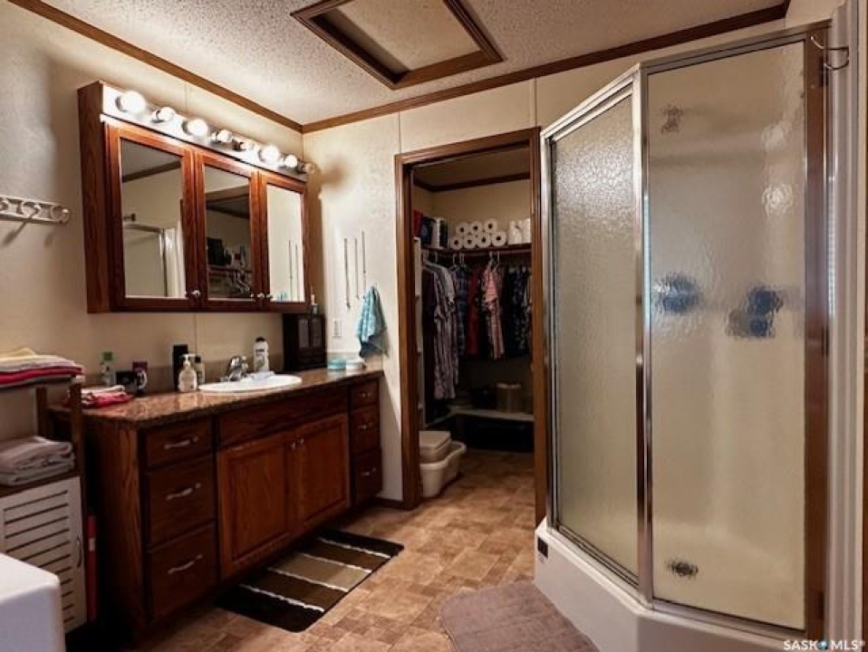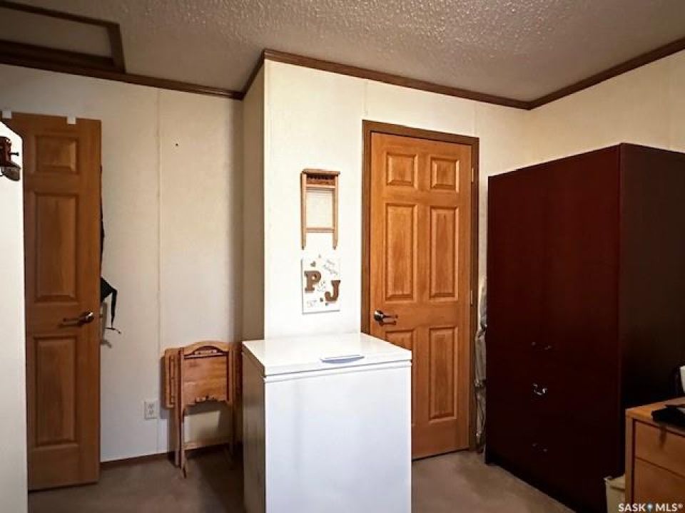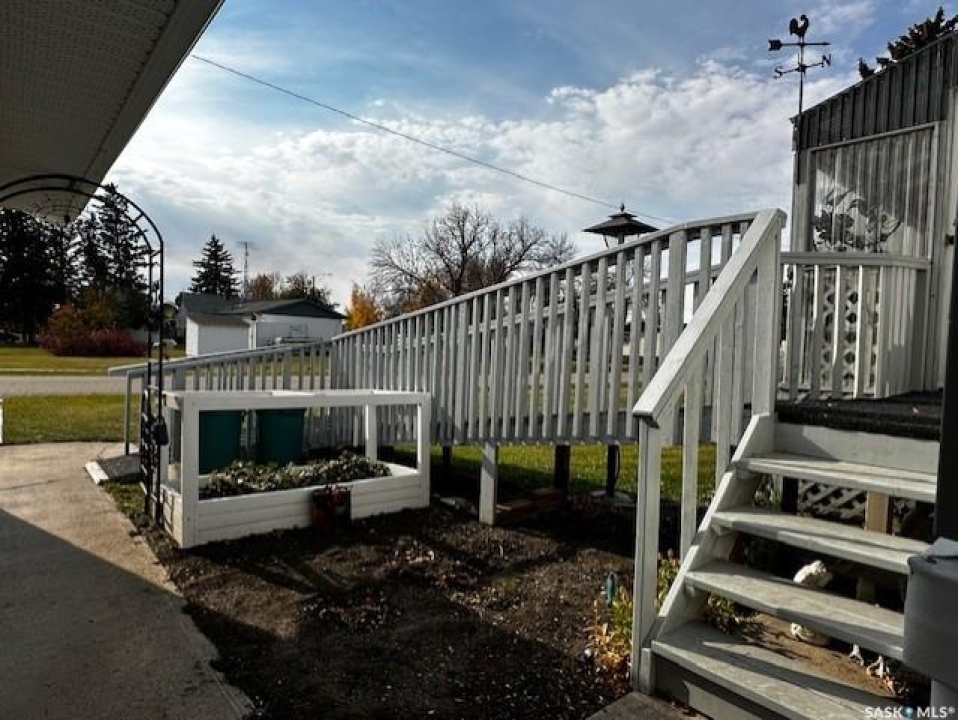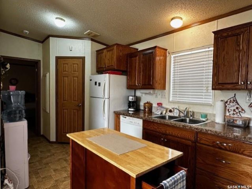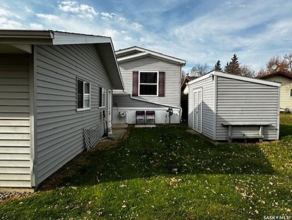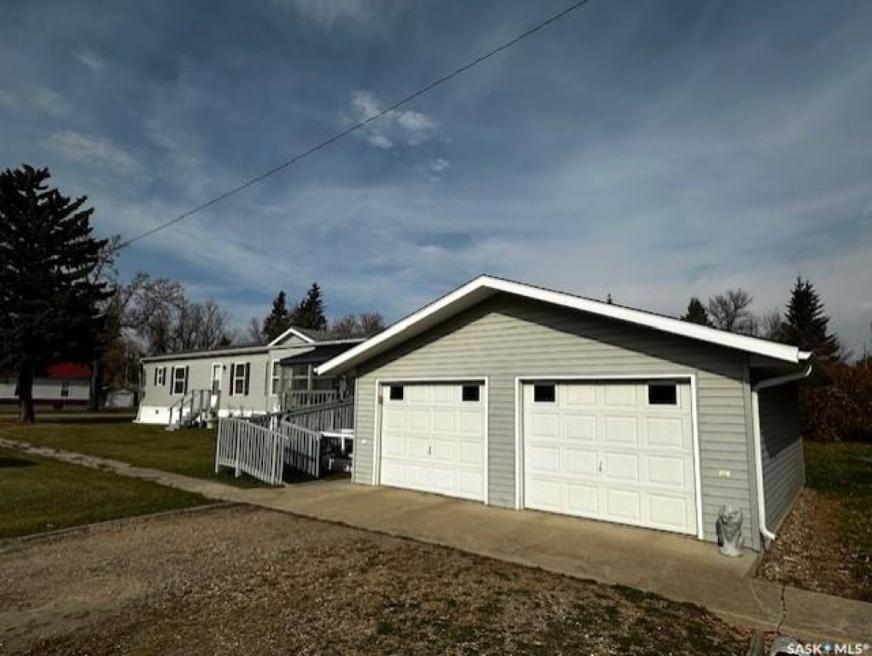 Nestled in the peaceful community of Neudorf, Saskatchewan, at 215 Louis Street, this 1,440 sq ft modular home, built in 2009, sits on a titled lot. The home features three bedrooms, including a spacious master suite with a walk-in closet, a four-piece en-suite boasting both a shower and jacuzzi tub. Two additional bedrooms are situated at the east end of the home, along with a full bathroom for added convenience. The heart of the home lies in the open-concept kitchen and dining area, ideal for hosting gatherings of any size. A built-in dishwasher makes cleanup a breeze, and the pantry, equipped with custom shelving and drawers, ensures plenty of storage. The vaulted ceiling flows seamlessly into the living room, enhancing the open feel throughout. Additional features include a ramp that makes the home easily accessible, a laundry room that houses the water heater and electric forced-air furnace, and central air conditioning for year-round comfort. The property also features a double detached garage, equipped with power-operated doors, and a welcoming front deck. Practical upgrades include a natural gas stove (2023), heated water lines, vinyl-insulated skirting, 200-amp electrical service, and shingles in September 2014. This home offers both comfort and convenience in a community setting.