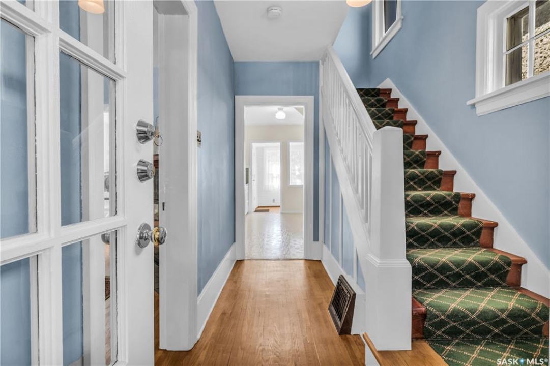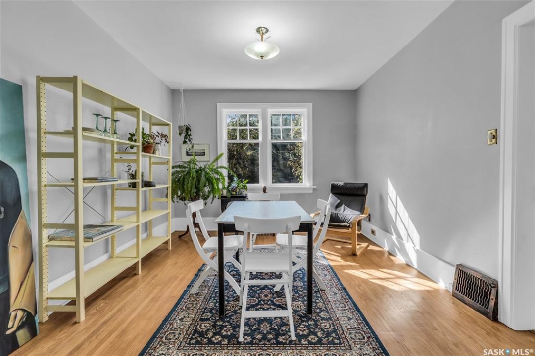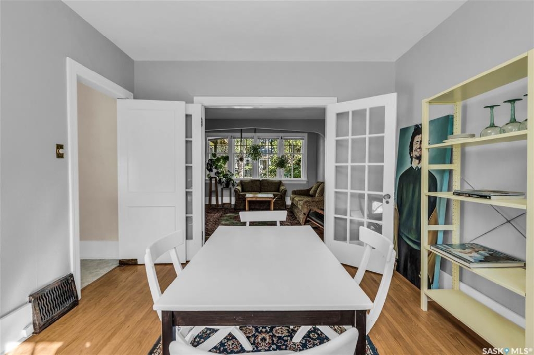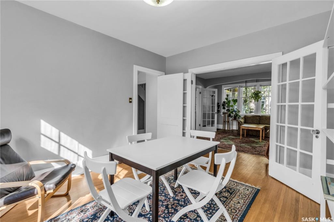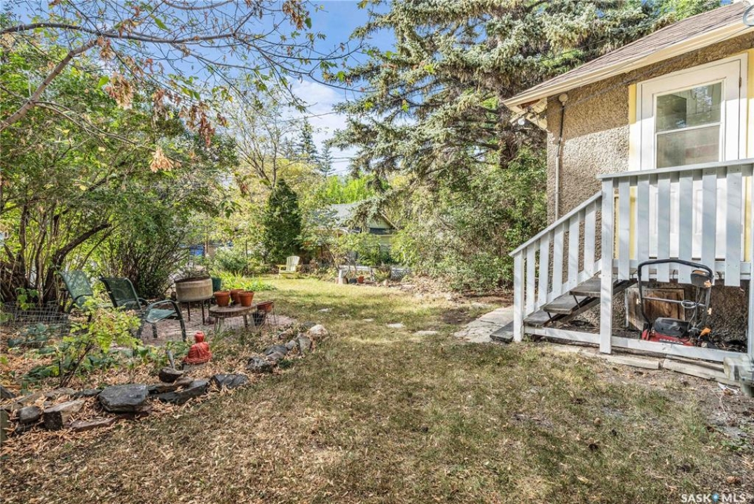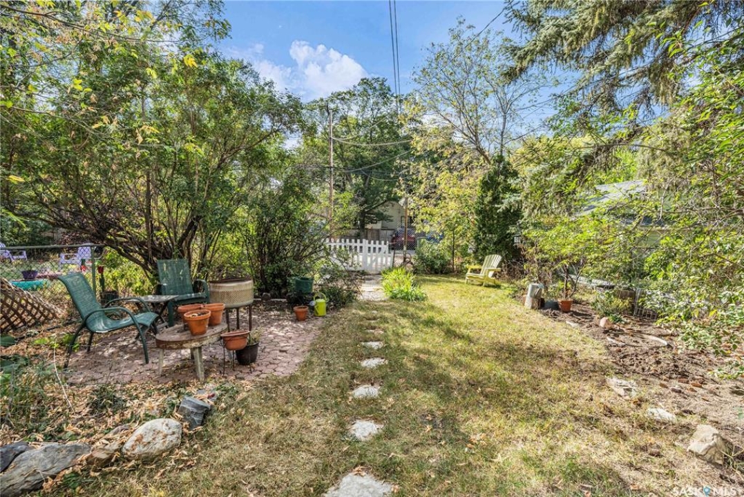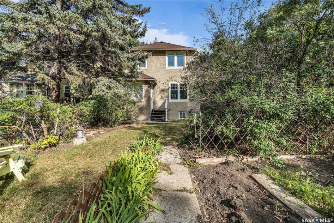Welcome to 2272 Montague Street, where timeless charm meets modern comfort in the heart of Regina's beloved Cathedral neighbourhood. Built in 1927, this 1,175 sq. ft. 2-storey home has been beautifully maintained and lovingly cared for by the same owner for over 35 years. Step inside and enjoy your morning coffee on the inviting front porch before heading into the bright, welcoming living room, where a large bay window fills the space with natural light. French doors lead you into a sun-soaked dining room, complete with a traditional swinging door that opens to the classic kitchen. The main floor has been freshly painted and showcases refinished original hardwood floors, along with a newly updated wood-burning fireplace for cozy evenings at home. The spacious back porch offers custom bench seating with storage and opens to a private backyard retreat. Here, you'll find perennials, a vegetable garden, a fire pit area, and a charming stone path that leads to parking for up to 3 vehicles—large enough for a future garage if desired. Upstairs, three generously sized bedrooms feature updated PVC windows overlooking picturesque, tree-lined streets. The stylish 4-piece bathroom was fully renovated in 2020 with modern finishes and updated plumbing. The basement is great for storage, with a high-efficiency furnace installed in 2021. Located just steps from locally owned shops, cafes, grocery stores, schools, bus routes, and the public library, you'll also love being minutes from Mosaic Stadium, downtown, and scenic Wascana Park. From summer strolls through the Cathedral Village Arts Festival to evenings around your backyard fire pit, this home offers a lifestyle rich in character and convenience. Don't miss your chance to own a piece of Cathedral's history!