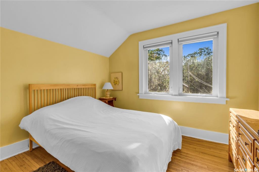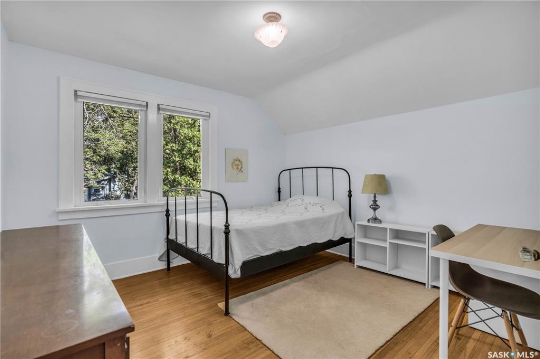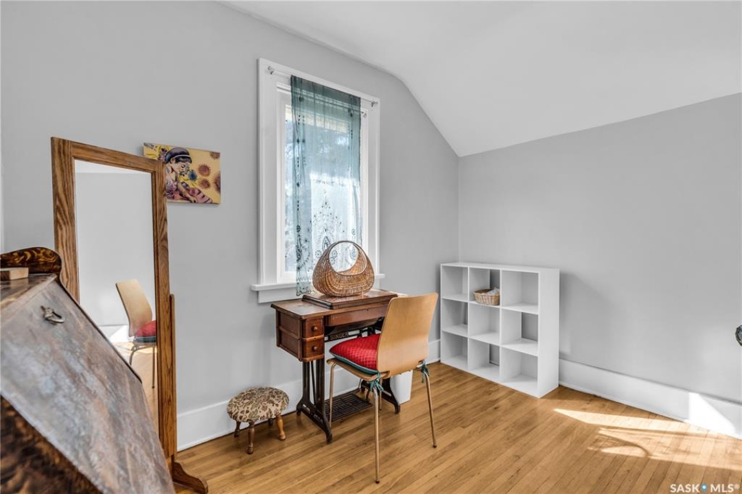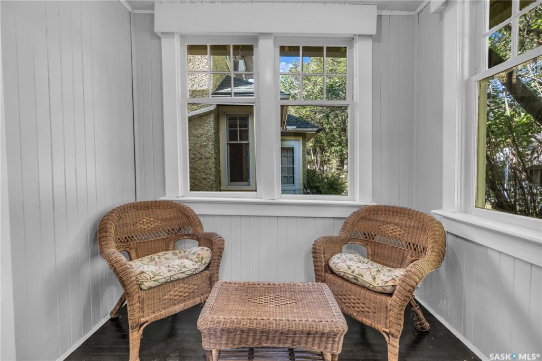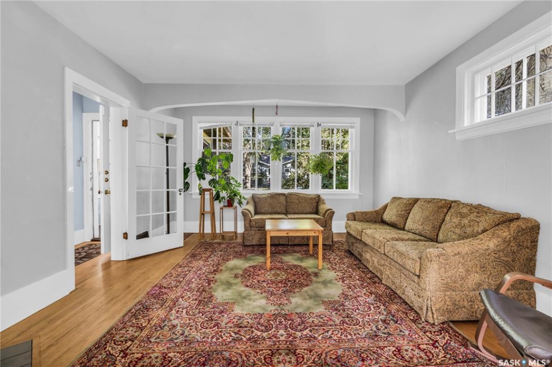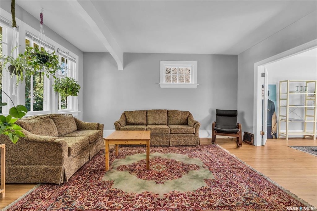 Welcome to 2272 Montague Street, where timeless charm meets modern comfort in the heart of Regina's beloved Cathedral neighbourhood. Built in 1927, this 1,175 sq. ft. 2-storey home has been beautifully maintained and lovingly cared for by the same owner for over 35 years. Step inside and enjoy your morning coffee on the inviting front porch before heading into the bright, welcoming living room, where a large bay window fills the space with natural light. French doors lead you into a sun-soaked dining room, complete with a traditional swinging door that opens to the classic kitchen. The main floor has been freshly painted and showcases refinished original hardwood floors, along with a newly updated wood-burning fireplace for cozy evenings at home. The spacious back porch offers custom bench seating with storage and opens to a private backyard retreat. Here, you'll find perennials, a vegetable garden, a fire pit area, and a charming stone path that leads to parking for up to 3 vehicles—large enough for a future garage if desired. Upstairs, three generously sized bedrooms feature updated PVC windows overlooking picturesque, tree-lined streets. The stylish 4-piece bathroom was fully renovated in 2020 with modern finishes and updated plumbing. The basement is great for storage, with a high-efficiency furnace installed in 2021. Located just steps from locally owned shops, cafes, grocery stores, schools, bus routes, and the public library, you'll also love being minutes from Mosaic Stadium, downtown, and scenic Wascana Park. From summer strolls through the Cathedral Village Arts Festival to evenings around your backyard fire pit, this home offers a lifestyle rich in character and convenience. Don't miss your chance to own a piece of Cathedral's history!