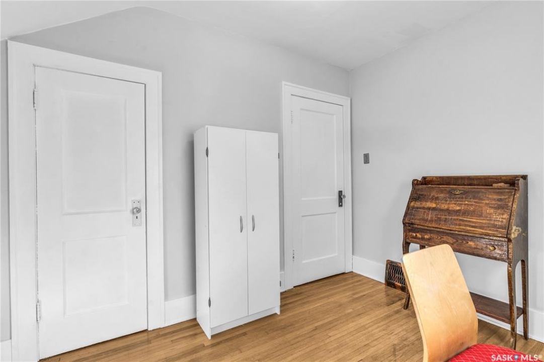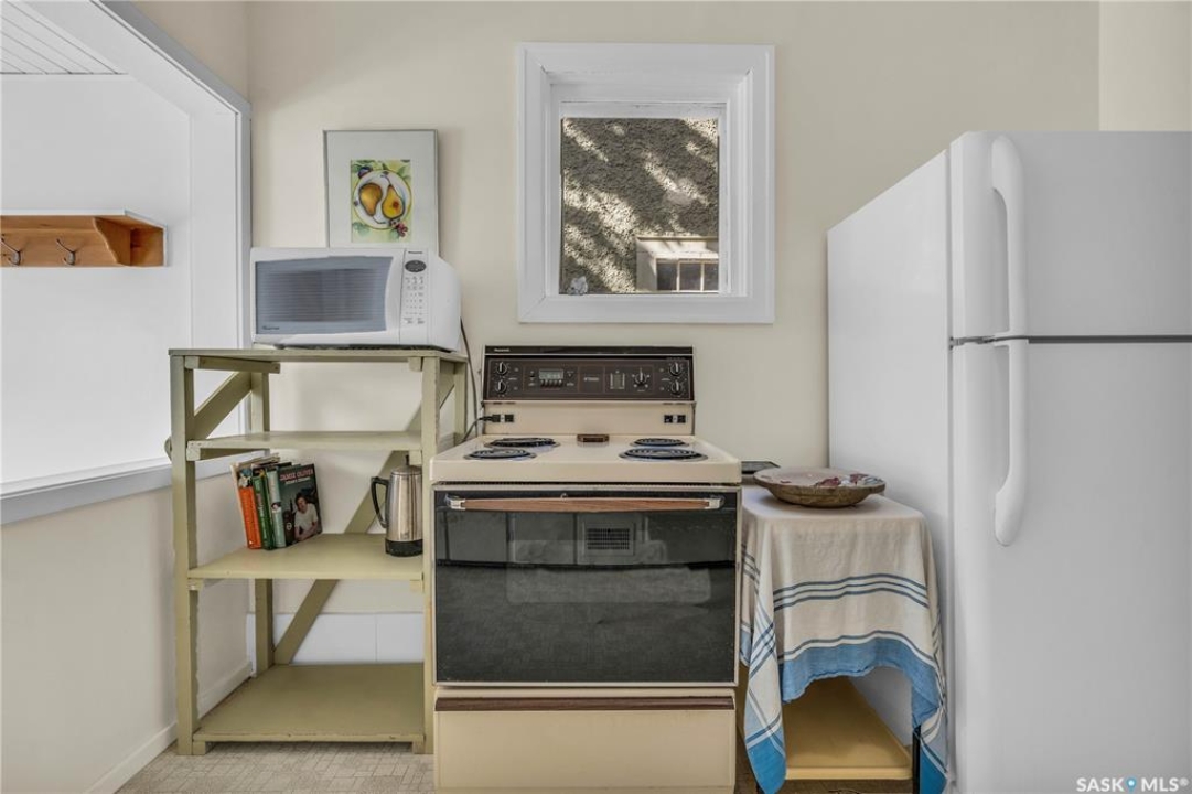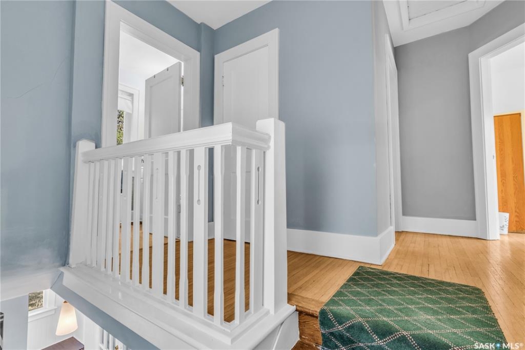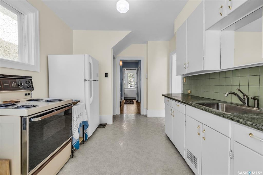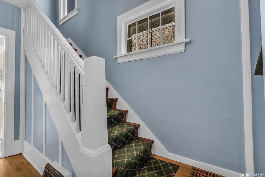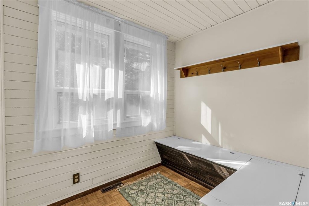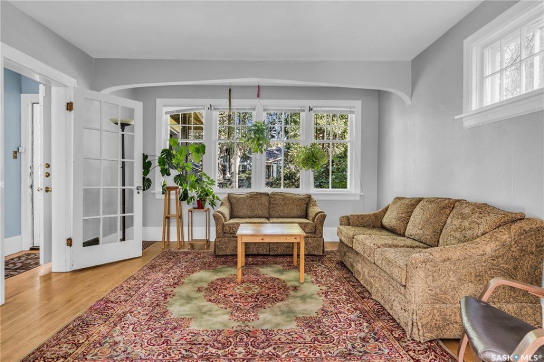 Welcome to 2272 Montague Street, where timeless charm meets modern comfort in the heart of Regina's beloved Cathedral neighbourhood. Built in 1927, this 1,175 sq. ft. 2-storey home has been beautifully maintained and lovingly cared for by the same owner for over 35 years. Step inside and enjoy your morning coffee on the inviting front porch before heading into the bright, welcoming living room, where a large bay window fills the space with natural light. French doors lead you into a sun-soaked dining room, complete with a traditional swinging door that opens to the classic kitchen. The main floor has been freshly painted and showcases refinished original hardwood floors, along with a newly updated wood-burning fireplace for cozy evenings at home. The spacious back porch offers custom bench seating with storage and opens to a private backyard retreat. Here, you'll find perennials, a vegetable garden, a fire pit area, and a charming stone path that leads to parking for up to 3 vehicles—large enough for a future garage if desired. Upstairs, three generously sized bedrooms feature updated PVC windows overlooking picturesque, tree-lined streets. The stylish 4-piece bathroom was fully renovated in 2020 with modern finishes and updated plumbing. The basement is great for storage, with a high-efficiency furnace installed in 2021. Located just steps from locally owned shops, cafes, grocery stores, schools, bus routes, and the public library, you'll also love being minutes from Mosaic Stadium, downtown, and scenic Wascana Park. From summer strolls through the Cathedral Village Arts Festival to evenings around your backyard fire pit, this home offers a lifestyle rich in character and convenience. Don't miss your chance to own a piece of Cathedral's history!