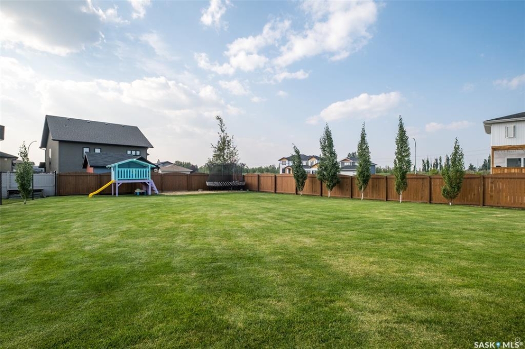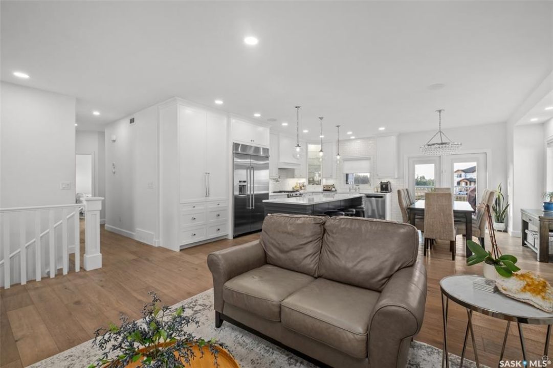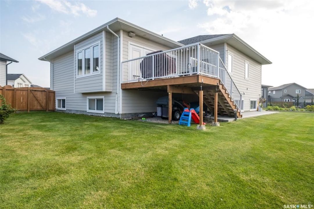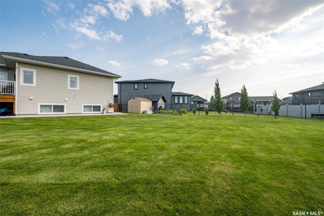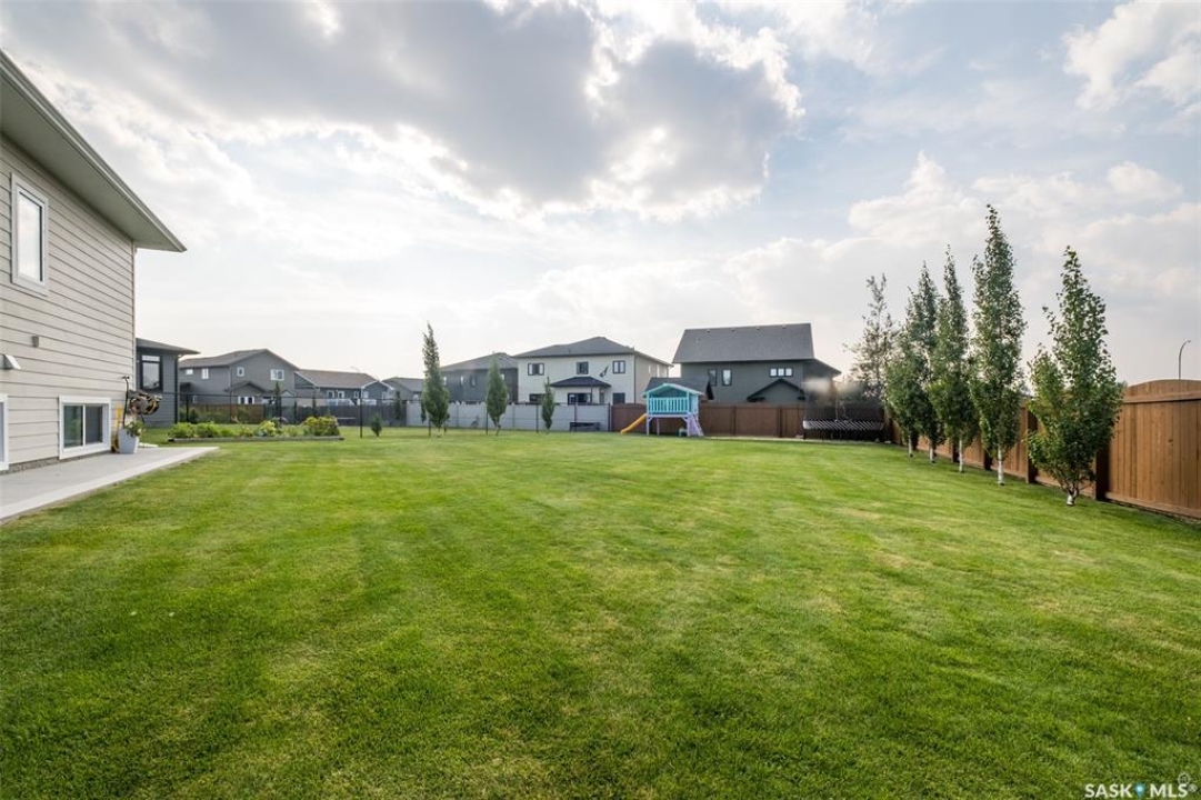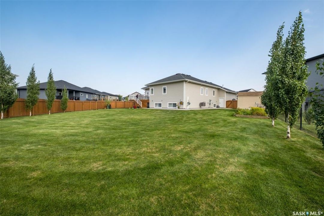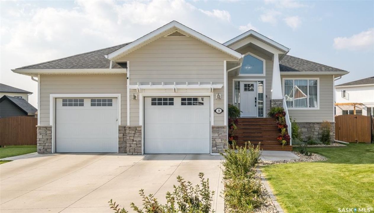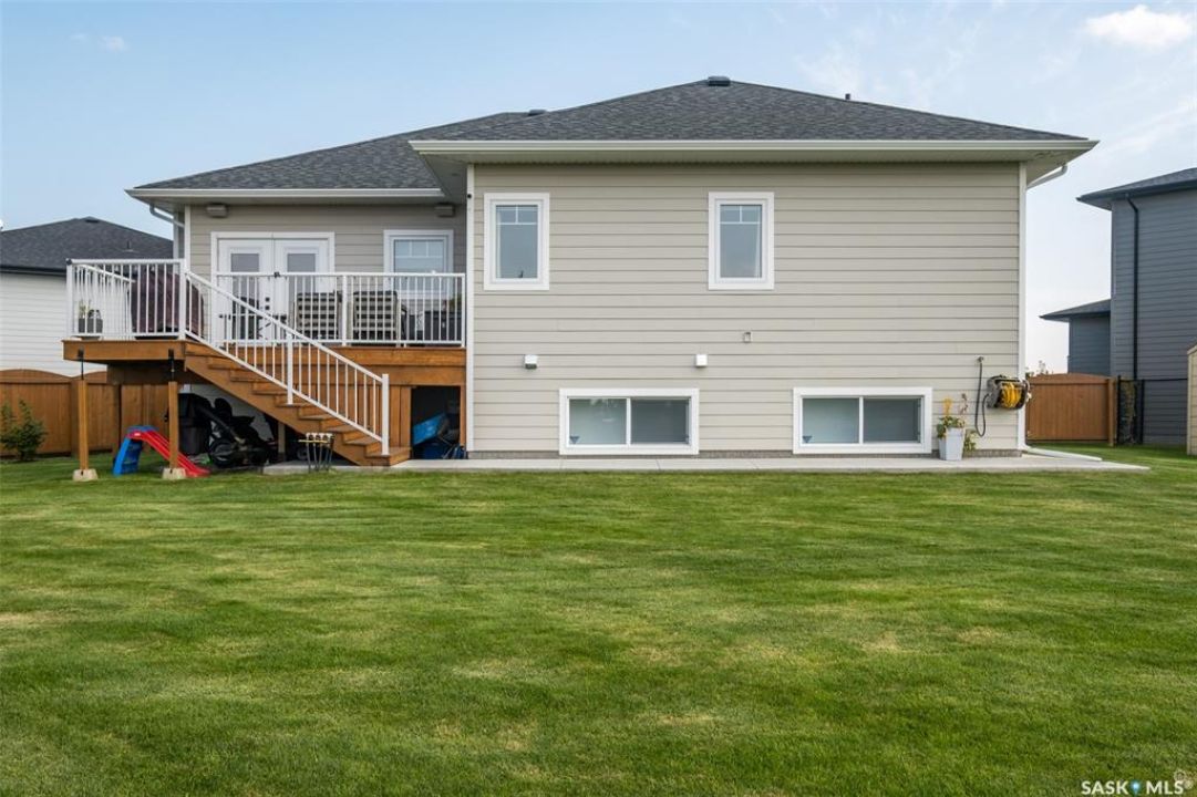 Custom Built Dream Home in Crescent Acres Prime Cul-de-Sac Location! Welcome to this stunning 1,777 sq. ft. raised bungalow, perfectly situated in one of Prince Albert's most desirable cul-de-sacs. Thoughtfully designed and meticulously finished, this custom built home offers 4 spacious bedrooms on the main level and an expansive, open concept layout ideal for families and entertainers alike. The heart of the home is a timeless white custom kitchen, featuring premium KitchenAid stainless steel appliances, a hand crafted cultured subway tile backsplash, Caesarstone countertops, and a massive 10 foot dine at island. Engineered hardwood flooring plus Italian marble tile flows throughout the main floor, enhancing the warm and inviting atmosphere. Downstairs, the fully developed lower level offers exceptional space and flexibility with a massive family/recreation room, stylish wet bar, candy bar, two oversized bedrooms, a well-appointed laundry room, and ample storage. Step outside to enjoy the sprawling 12,939 sq. ft. pie shaped lot, beautifully landscaped with lush greenery, raised garden beds, a custom built treehouse, and a sandbox perfect for kids and outdoor living. The west facing cedar deck includes an indoor/outdoor TV and surround sound, creating the ultimate setting for relaxing or entertaining. This exceptional home is the perfect blend of comfort and functionality all in a sought after family friendly neighborhood.
