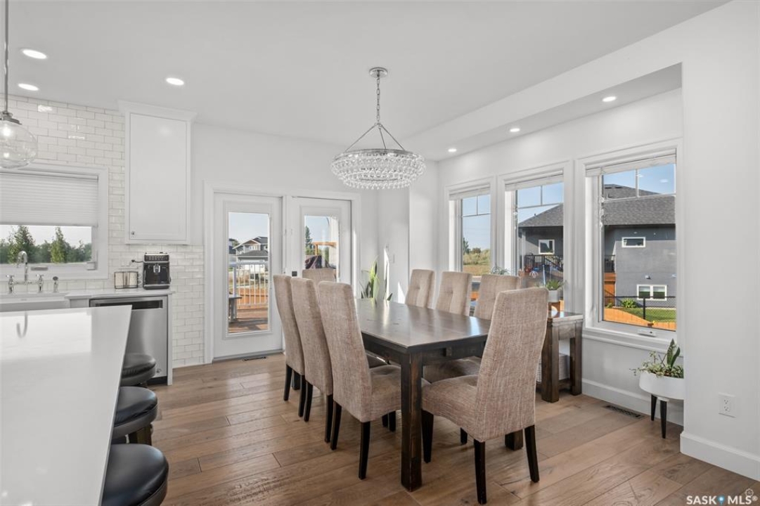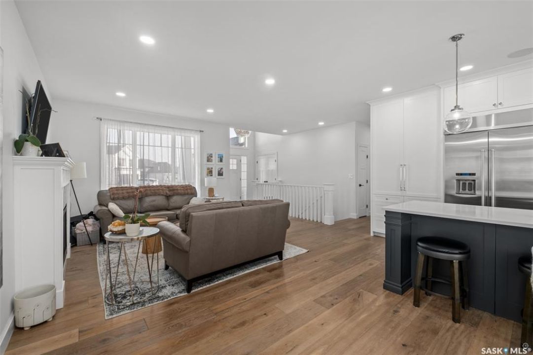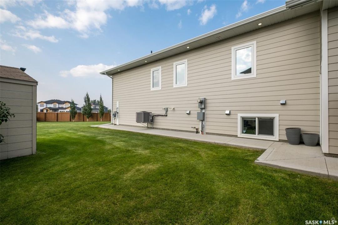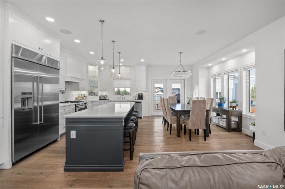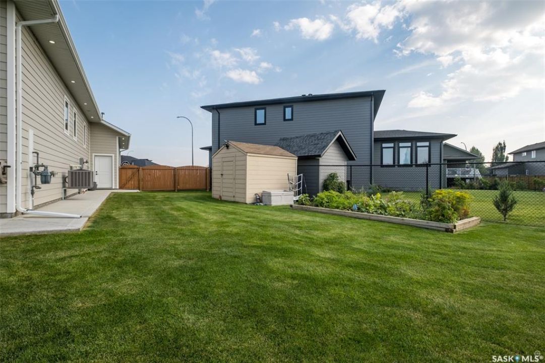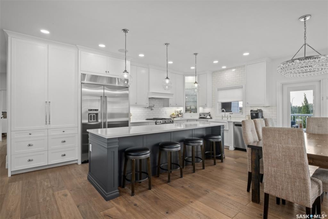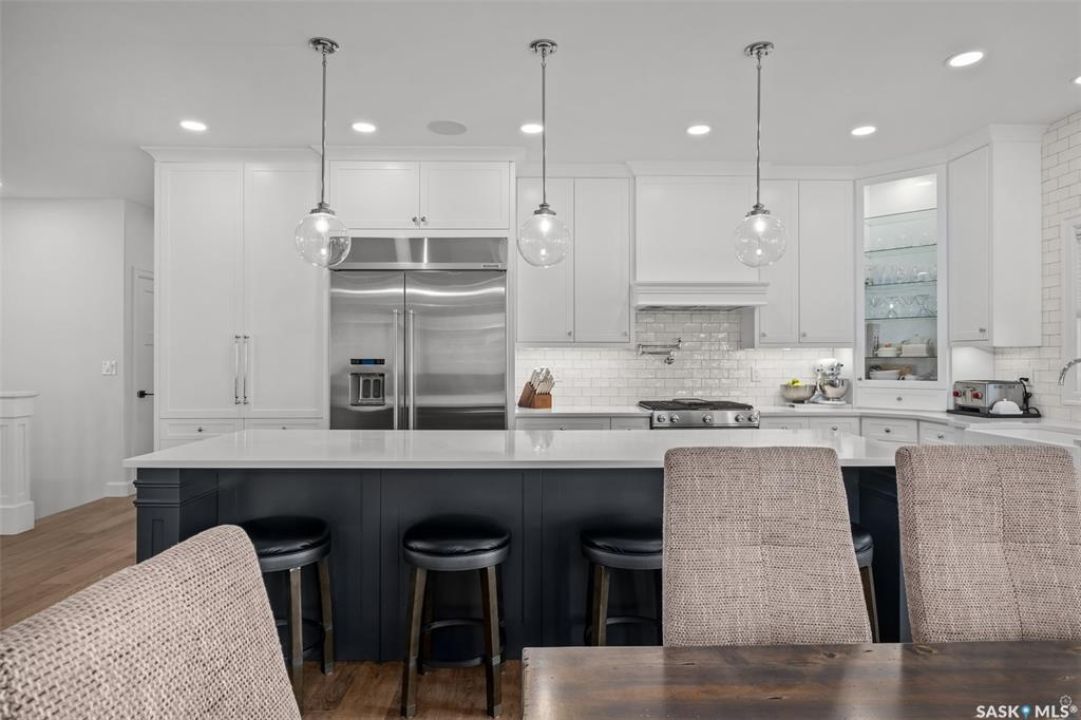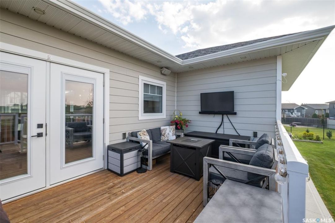 Custom Built Dream Home in Crescent Acres Prime Cul-de-Sac Location! Welcome to this stunning 1,777 sq. ft. raised bungalow, perfectly situated in one of Prince Albert's most desirable cul-de-sacs. Thoughtfully designed and meticulously finished, this custom built home offers 4 spacious bedrooms on the main level and an expansive, open concept layout ideal for families and entertainers alike. The heart of the home is a timeless white custom kitchen, featuring premium KitchenAid stainless steel appliances, a hand crafted cultured subway tile backsplash, Caesarstone countertops, and a massive 10 foot dine at island. Engineered hardwood flooring plus Italian marble tile flows throughout the main floor, enhancing the warm and inviting atmosphere. Downstairs, the fully developed lower level offers exceptional space and flexibility with a massive family/recreation room, stylish wet bar, candy bar, two oversized bedrooms, a well-appointed laundry room, and ample storage. Step outside to enjoy the sprawling 12,939 sq. ft. pie shaped lot, beautifully landscaped with lush greenery, raised garden beds, a custom built treehouse, and a sandbox perfect for kids and outdoor living. The west facing cedar deck includes an indoor/outdoor TV and surround sound, creating the ultimate setting for relaxing or entertaining. This exceptional home is the perfect blend of comfort and functionality all in a sought after family friendly neighborhood.