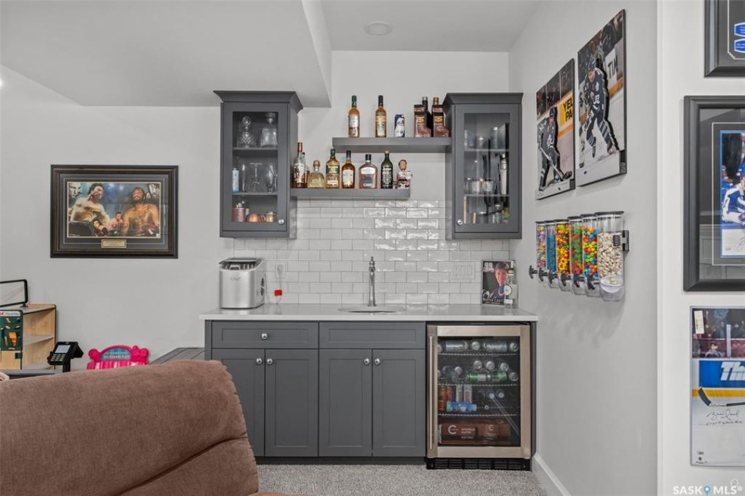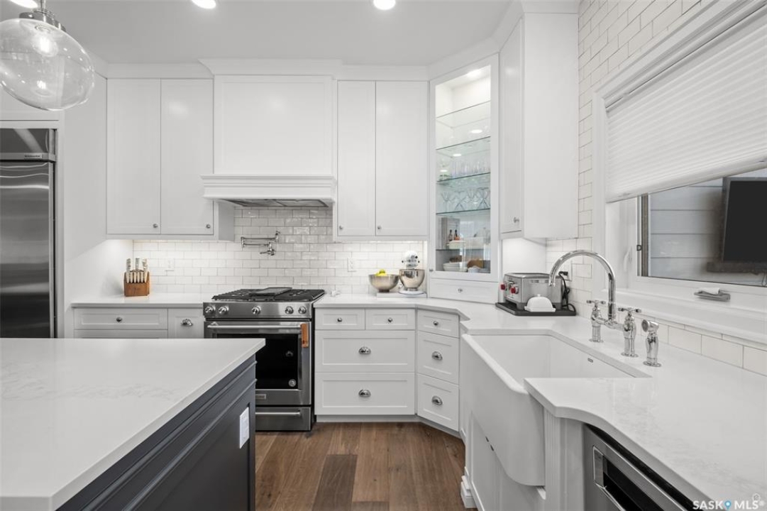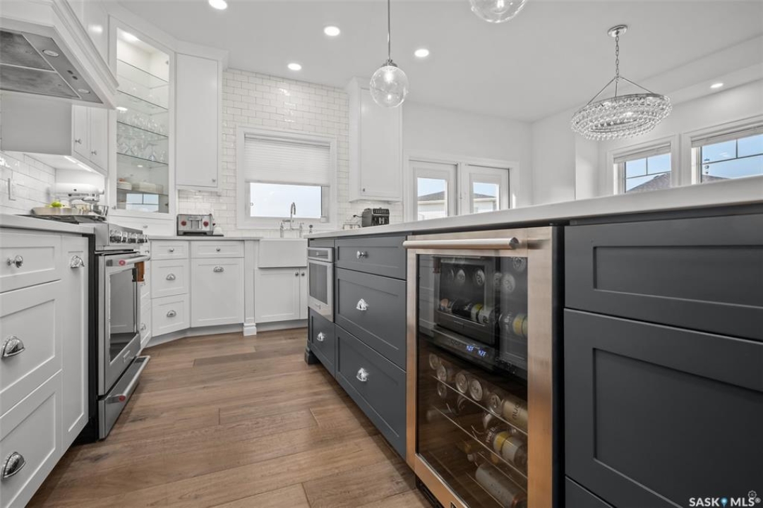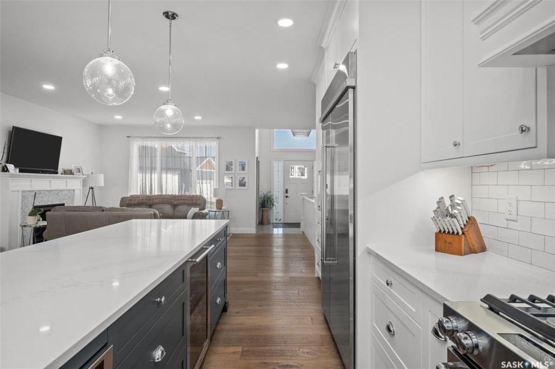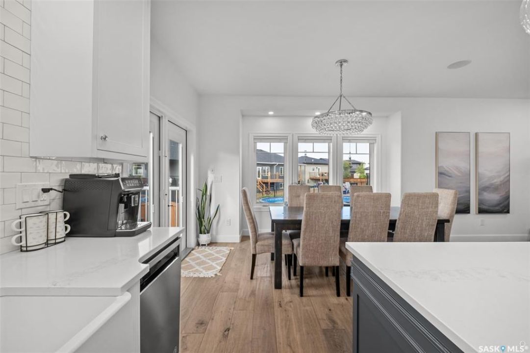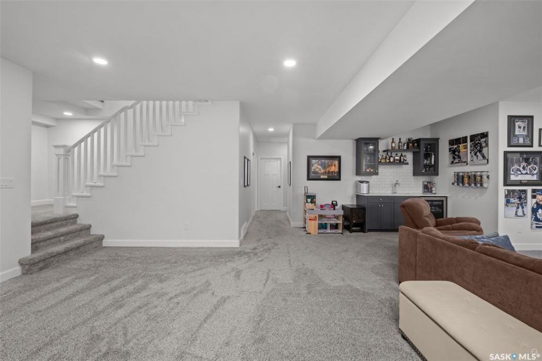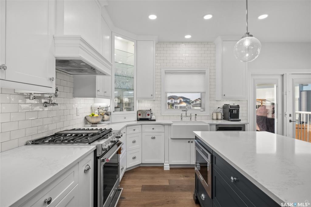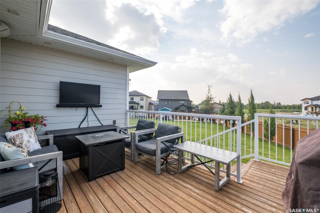 Custom Built Dream Home in Crescent Acres Prime Cul-de-Sac Location! Welcome to this stunning 1,777 sq. ft. raised bungalow, perfectly situated in one of Prince Albert's most desirable cul-de-sacs. Thoughtfully designed and meticulously finished, this custom built home offers 4 spacious bedrooms on the main level and an expansive, open concept layout ideal for families and entertainers alike. The heart of the home is a timeless white custom kitchen, featuring premium KitchenAid stainless steel appliances, a hand crafted cultured subway tile backsplash, Caesarstone countertops, and a massive 10 foot dine at island. Engineered hardwood flooring plus Italian marble tile flows throughout the main floor, enhancing the warm and inviting atmosphere. Downstairs, the fully developed lower level offers exceptional space and flexibility with a massive family/recreation room, stylish wet bar, candy bar, two oversized bedrooms, a well-appointed laundry room, and ample storage. Step outside to enjoy the sprawling 12,939 sq. ft. pie shaped lot, beautifully landscaped with lush greenery, raised garden beds, a custom built treehouse, and a sandbox perfect for kids and outdoor living. The west facing cedar deck includes an indoor/outdoor TV and surround sound, creating the ultimate setting for relaxing or entertaining. This exceptional home is the perfect blend of comfort and functionality all in a sought after family friendly neighborhood.