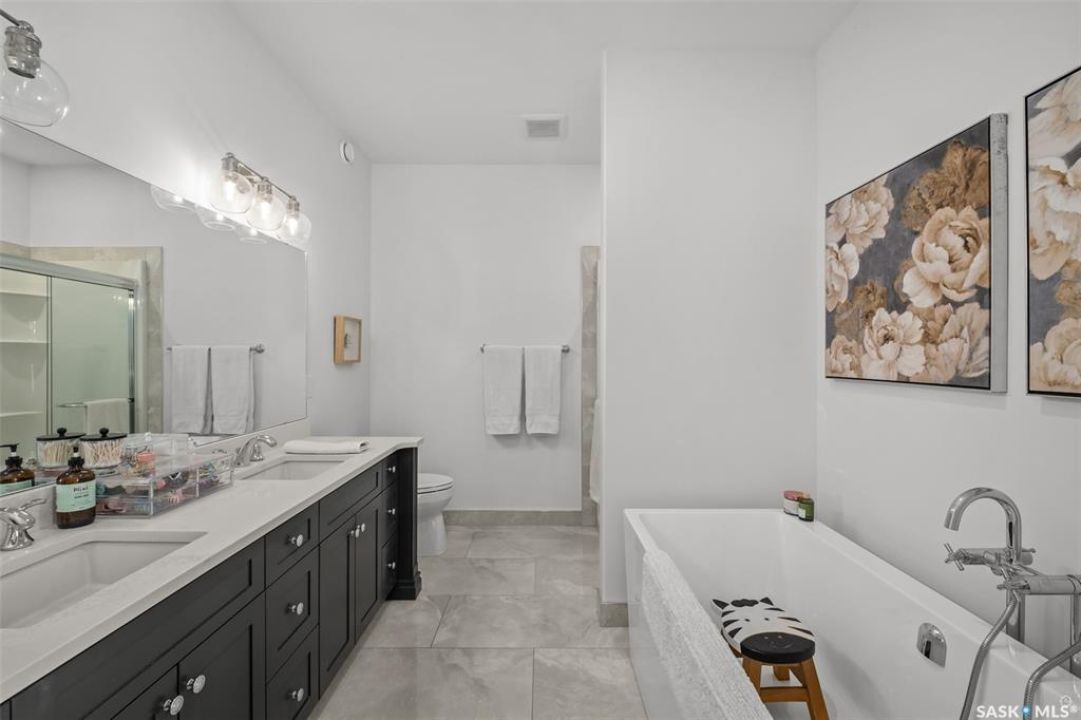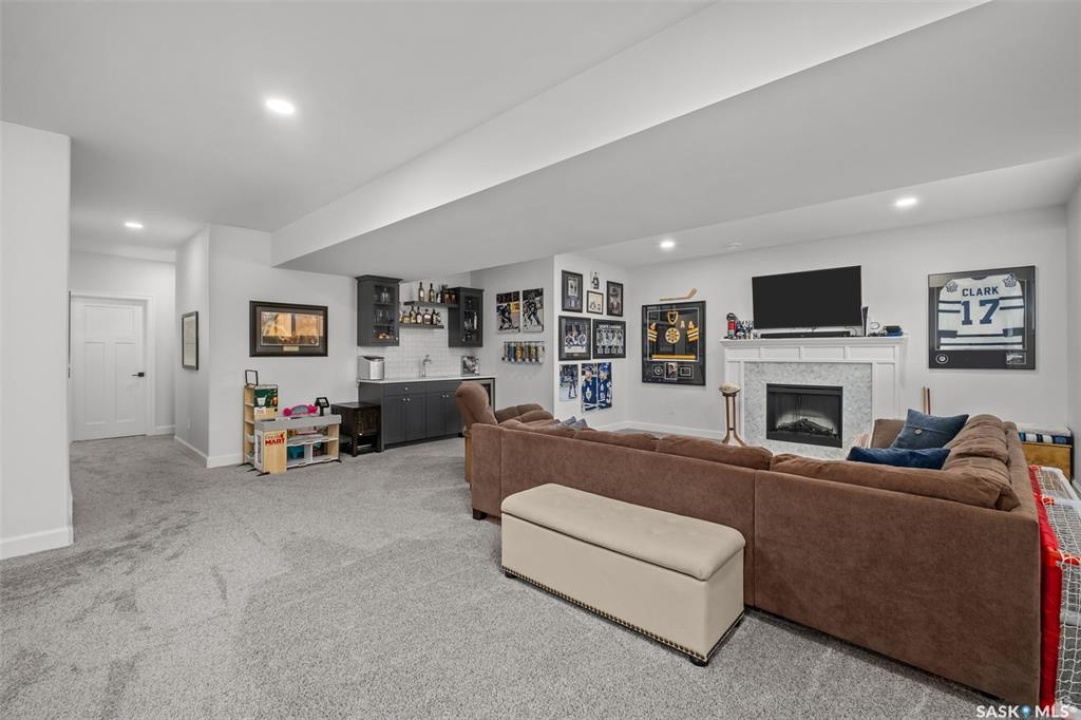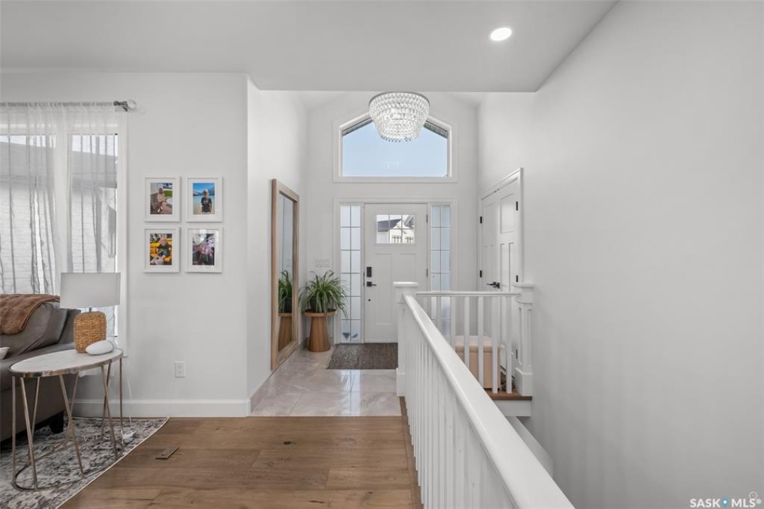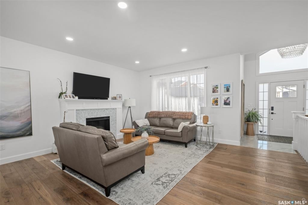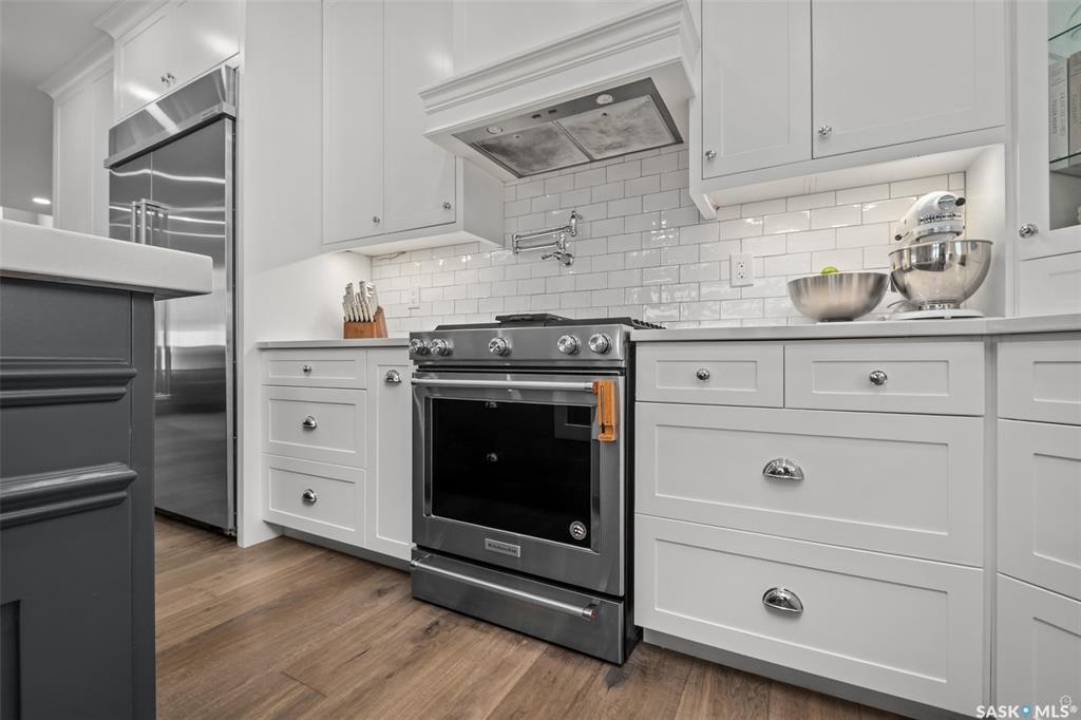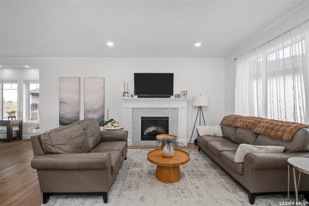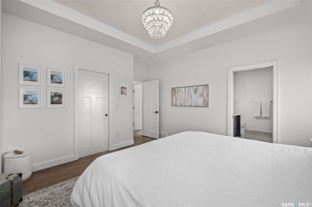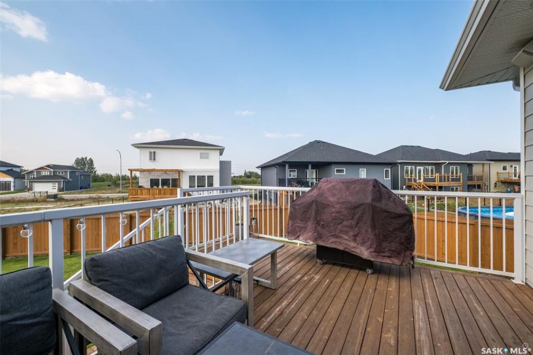 Custom Built Dream Home in Crescent Acres Prime Cul-de-Sac Location! Welcome to this stunning 1,777 sq. ft. raised bungalow, perfectly situated in one of Prince Albert's most desirable cul-de-sacs. Thoughtfully designed and meticulously finished, this custom built home offers 4 spacious bedrooms on the main level and an expansive, open concept layout ideal for families and entertainers alike. The heart of the home is a timeless white custom kitchen, featuring premium KitchenAid stainless steel appliances, a hand crafted cultured subway tile backsplash, Caesarstone countertops, and a massive 10 foot dine at island. Engineered hardwood flooring plus Italian marble tile flows throughout the main floor, enhancing the warm and inviting atmosphere. Downstairs, the fully developed lower level offers exceptional space and flexibility with a massive family/recreation room, stylish wet bar, candy bar, two oversized bedrooms, a well-appointed laundry room, and ample storage. Step outside to enjoy the sprawling 12,939 sq. ft. pie shaped lot, beautifully landscaped with lush greenery, raised garden beds, a custom built treehouse, and a sandbox perfect for kids and outdoor living. The west facing cedar deck includes an indoor/outdoor TV and surround sound, creating the ultimate setting for relaxing or entertaining. This exceptional home is the perfect blend of comfort and functionality all in a sought after family friendly neighborhood.