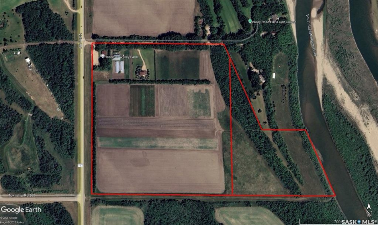 A rare opportunity to own a turnkey farm with proven success in vegetable and flower production, including a popular u-pick pumpkin patch. Located on scenic Valley Road, this property features a custom 1,868 sq. ft. 2-storey home (2001) with 4 bedrooms, 4 bathrooms, large kitchen, cozy living spaces, A/C, and beautiful views from the sunny deck and shady porch. The farm includes a 40x60 ft. metal-clad barn with cooler, a commercial retail store with walk-in coolers, two 30x100 ft. greenhouses with heating and drip irrigation, plus two high tunnels. Excellent soil, 40 acres irrigated, and 360 ft. of South Saskatchewan River frontage with a modern irrigation system. Zoned agricultural and commercial. A scenic, productive farm minutes from city life—ideal for continuing a successful operation or building your own agri-business vision. ***See attachment for detailed description***