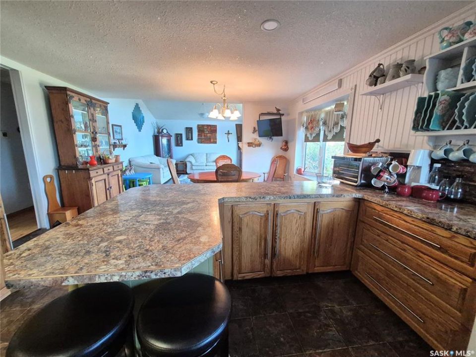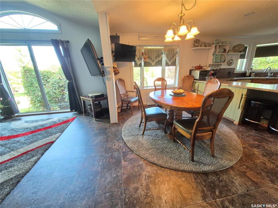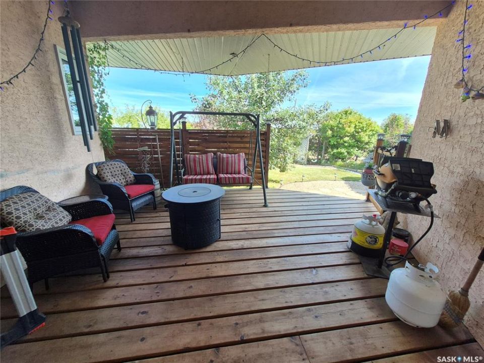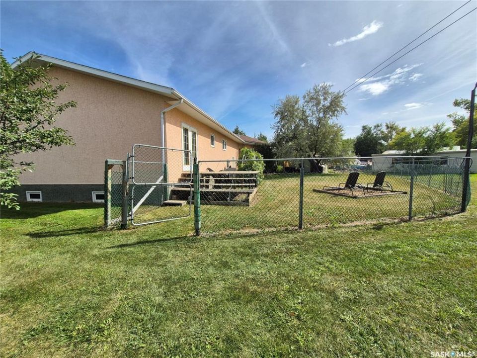 Welcome to this spacious 1,312 sqare foot family home in Midale, situated on a large corner lot with plenty of charm and functionality. Offering 4 bedrooms and 3 bathrooms, this home has room for everyone, plus a fully finished basement doubling the living space. The main floor features vaulted ceilings in the living room, creating an open and inviting atmosphere. The kitchen is a dream with an abundance of cupboards, counter space, and a sit-up breakfast bar, while the dedicated dining room is perfect for family meals or entertaining. The bright living areas flow nicely throughout, making this home warm and welcoming. The bedrooms are generous in size, with one featuring a unique loft that kids will love as a play or sleep space—or it could double as extra storage. The bathrooms are large and thoughtfully designed for family living. Currently, the attached garage has been converted into a spacious family room but can easily be returned to garage use if desired, as the garage door remains in place. Outdoor spaces are just as impressive, with a private covered front deck, back patio, fenced backyard, and beautifully landscaped garden space surrounded by mature trees and shrubs, ideal for relaxing or entertaining. This home combines practicality with character, making it an excellent choice for families looking for space, comfort, and a great community.