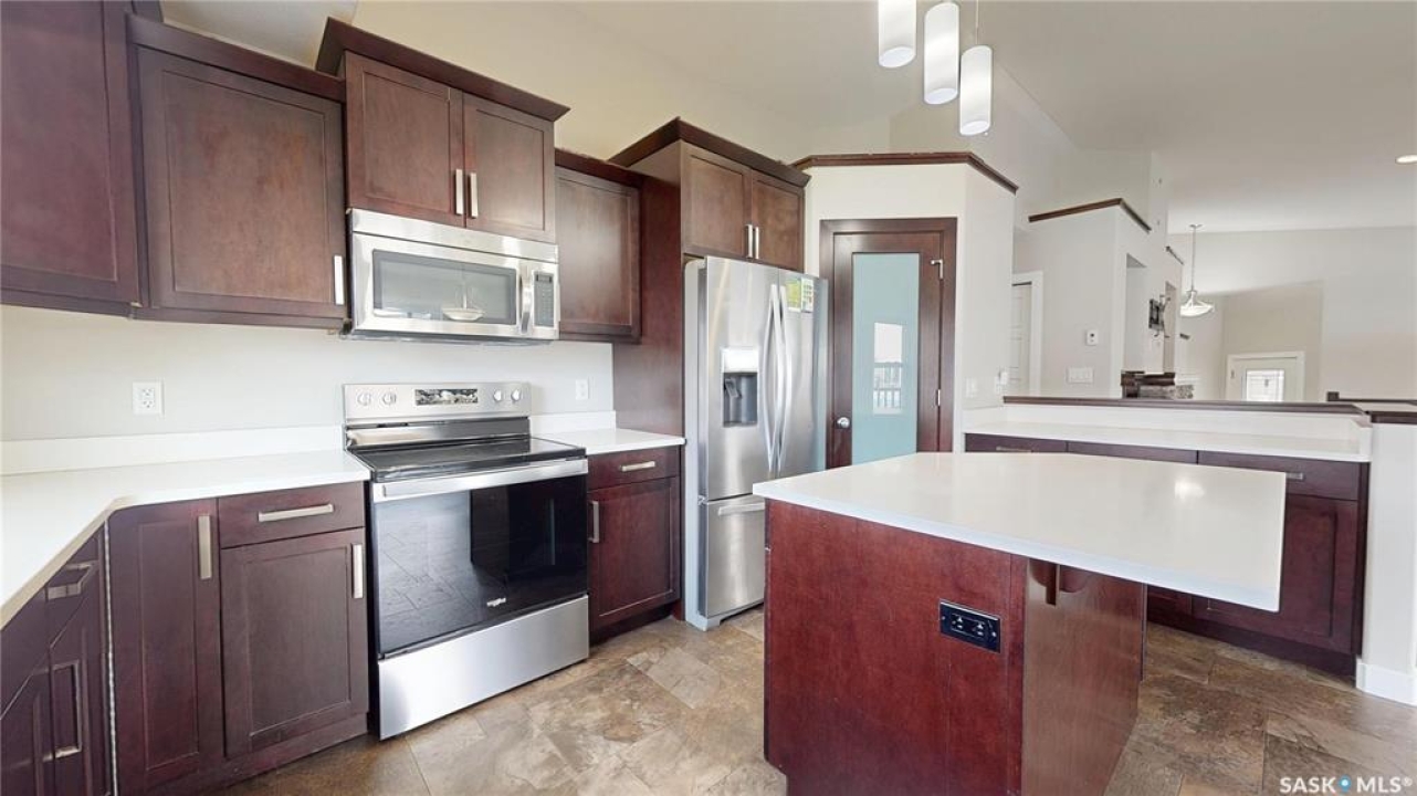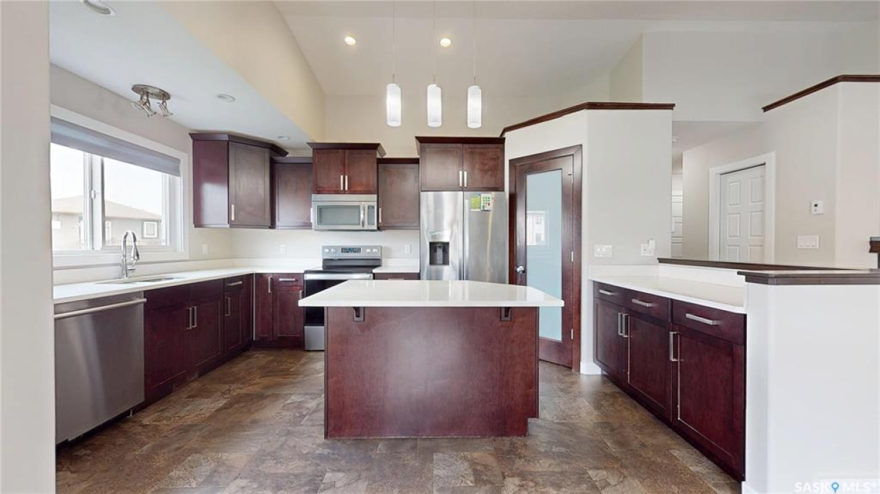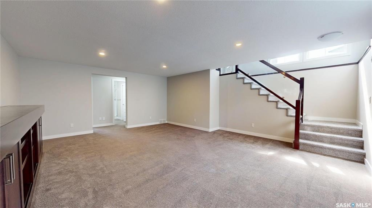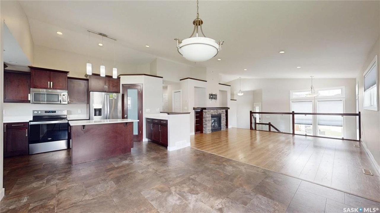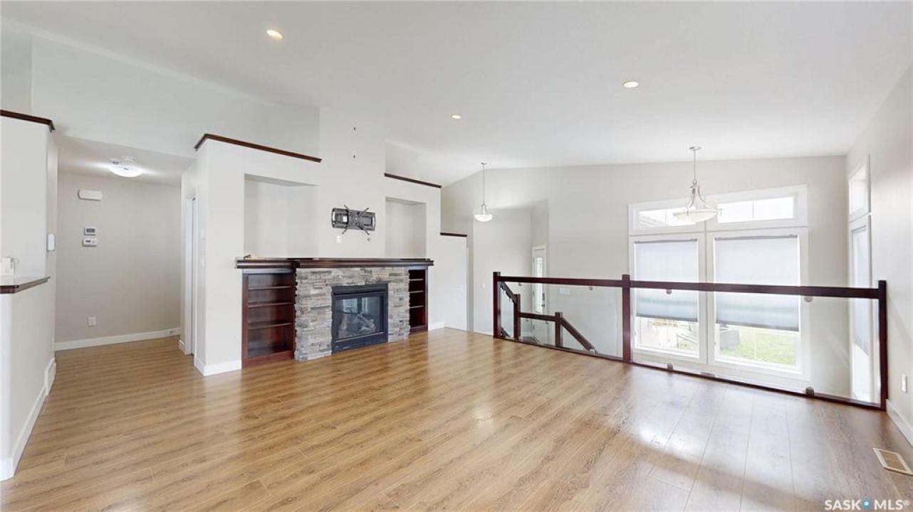 Brand new listing for a Harbour Landing Gem! Welcome to this beautiful bi-level built on piles tucked away on a quiet bay with amazing neighbours — and sitting on one of the biggest lots in the area! Seriously, a riding tractor could be justified. Step inside to an open concept layout with a sleek glass panel rail to the basement, keeping that bright, airy vibe flowing. The spacious kitchen + dining area is perfect for gatherings or entertaining for the next rider game or upcoming holiday season. The primary bedroom will easily hold a king size bed and has a 3 piece ensuite, there is a second bedroom and the main bath makes this main floor area feel spacious. Downstairs is ready for both fun and function — featuring built-ins for the ultimate theatre room, three large bedrooms, a 4 piece bathroom and lots of storage! This basement is super functional and has been well laid out to meet all your family needs. Outside, in your massive back yard you will enjoy a partially covered deck, fully fenced yard, and a gravel base pad ready for an above-ground pool or it would make a great set up for a cozy fire pit night. Add in the oversized double attached garage, and this move-in ready home has it all. Harbour Landing living at its best — space, style & community. Contact your realtor to see if this might be your new home.