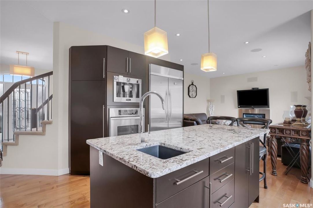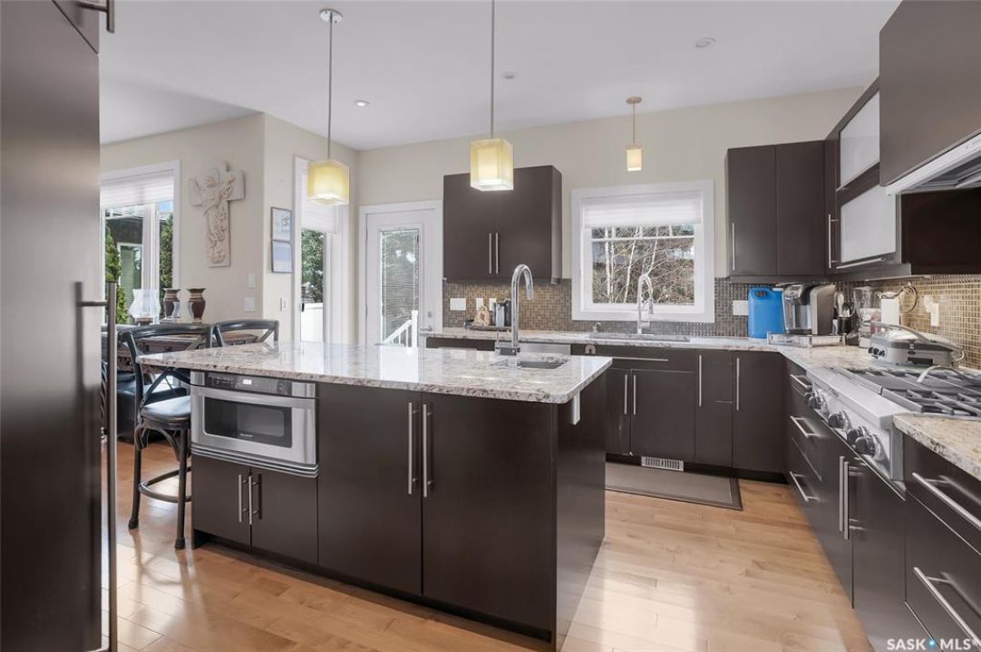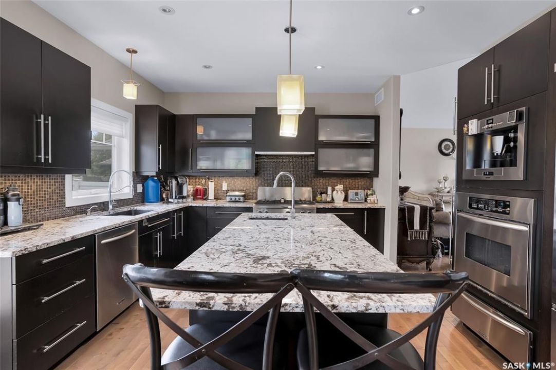 Spacious and bright in sought-after Briarwood! This 1,925 sq. ft. 2-storey offers a well-planned layout with a modern kitchen featuring granite counters, gas range, and a large island for cooking and gathering. The main floor includes a generous dining area, family room, and convenient laundry. Upstairs you'll find a huge primary bedroom with walk-in closet and ensuite, plus two decent-sized bedrooms. The fully finished basement extends your living space with a massive rec room, office, extra bedroom, and 4-pc bath. Wired speakers are already installed throughout the home—ready for your system. Enjoy a quiet, fenced yard with composite deck and a double garage with high ceilings. This home has to be viewed to be fully appreciated.