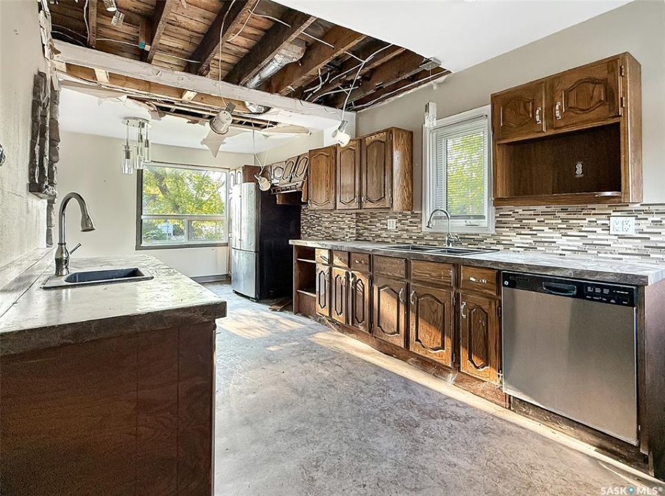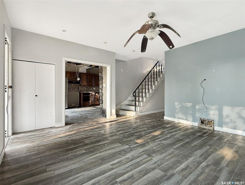 Discover an exceptional opportunity to enter the real estate market with this charming 1700+ square foot home, offering the perfect canvas to customize to your preferences. The property has seen significant updates, including vinyl siding and a new roof in 2020, a new furnace installed in 2012, and many PVC windows. Additional features include a fenced lot with a spacious two-tier deck and ample parking. The main floor boasts a large porch with an adjacent den, surrounded by windows, a renovated main floor bathroom, a living room at the front, and an eat-in kitchen that has been previously updated. The second story offers three bedrooms, a loft sitting area, and a three-piece bathroom. The basement is ready for your construction ideas. Recently, the home has experienced some damage, presenting a unique opportunity for those with a handyman's touch to enhance the existing renovations. Located just steps from downtown, with easy access to the south side, creek, and nearby walking paths, this home is perfectly situated.