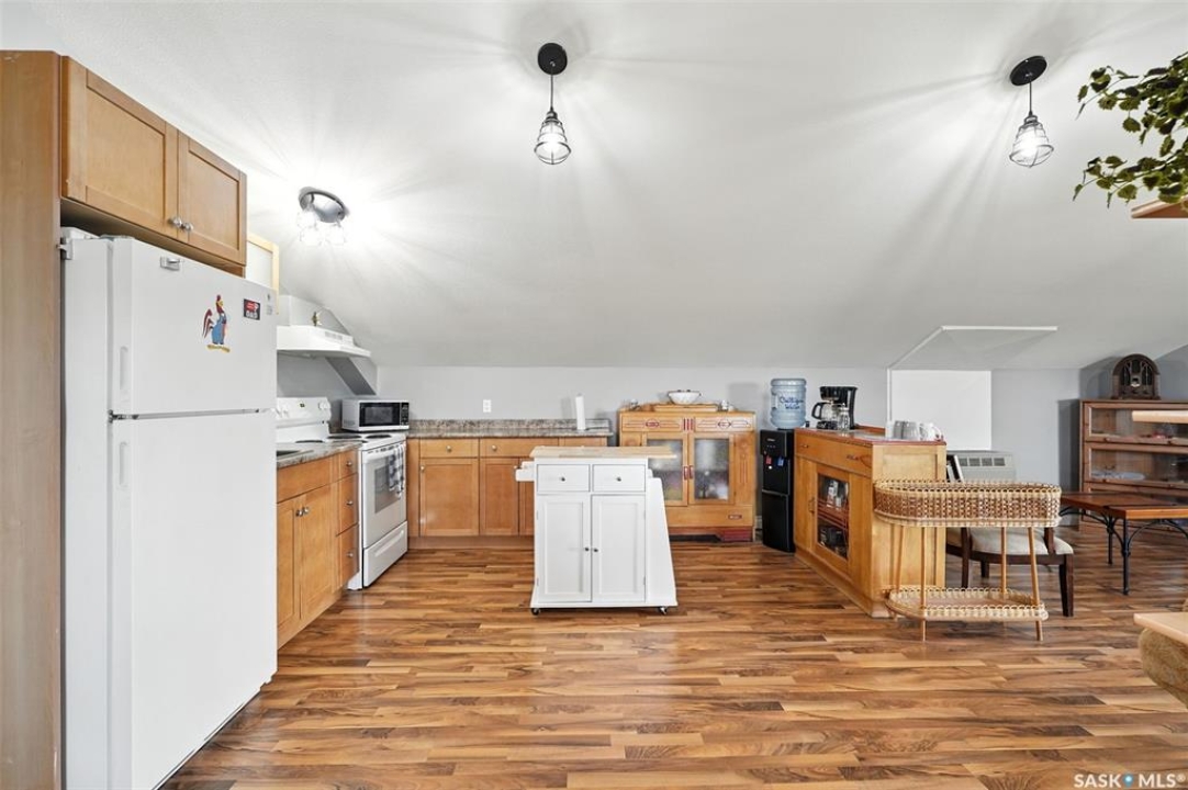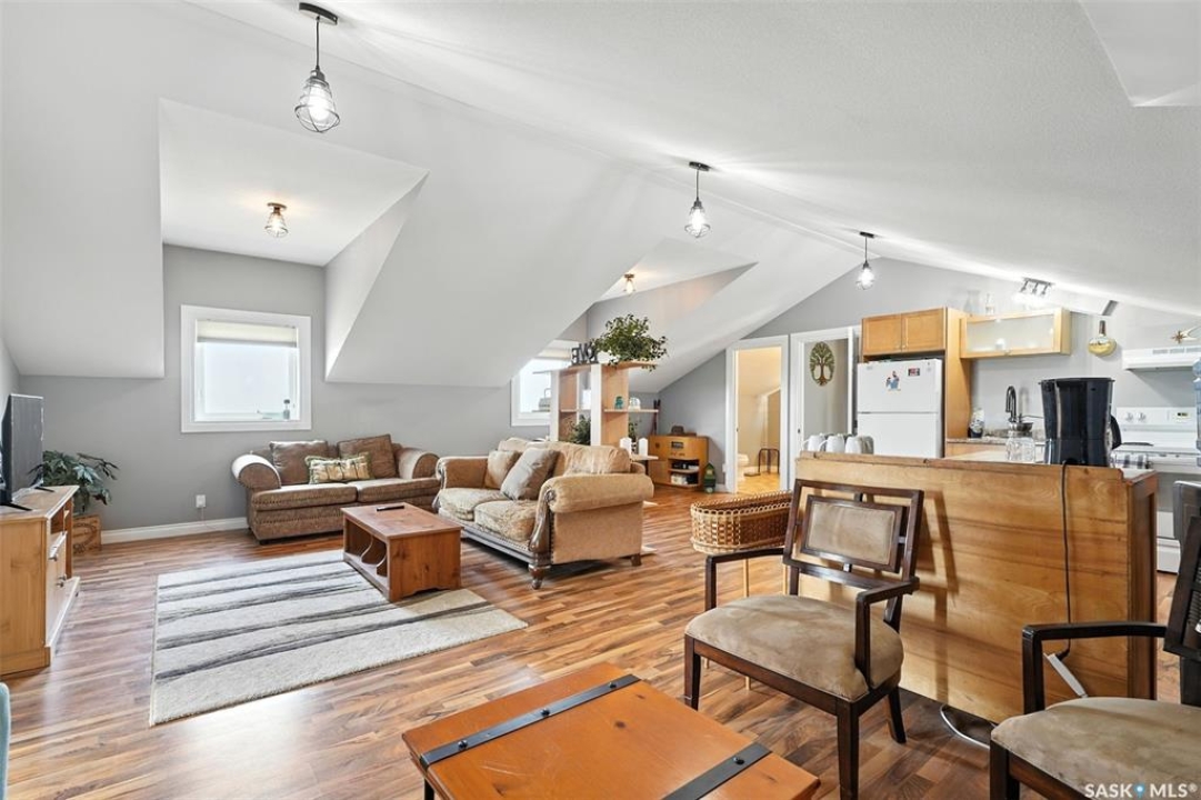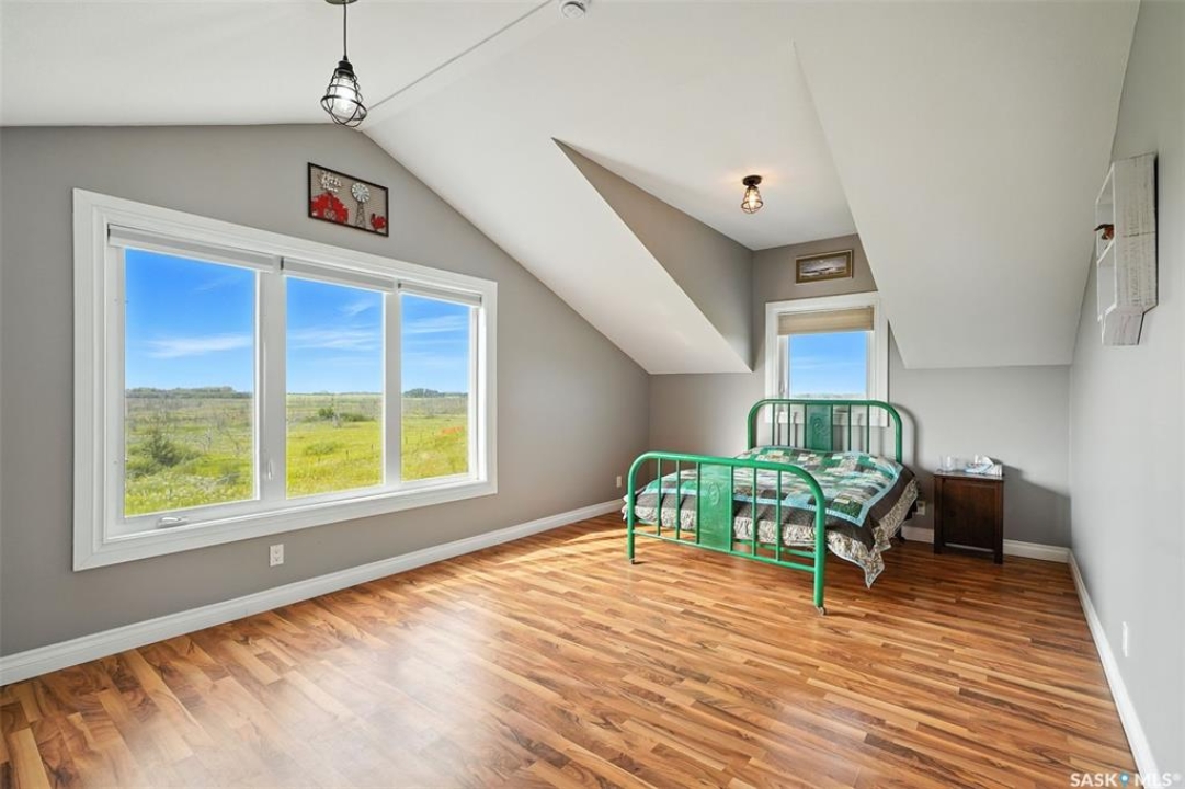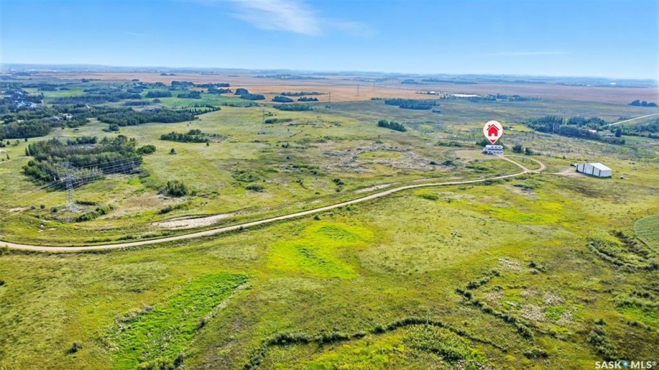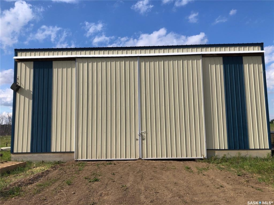 This 80-acre property, located just 5 km from Saskatoon and directly off a paved road, offers a rare combination of privacy, prime location, and future development potential. Providing the perfect balance of seclusion and convenience, it is tucked away from surrounding properties, among the desirable Hidden Ridge Estates acreages. The property features a Carriage house, 1232 sq. ft. residence with an open-concept, loft-style design. The three-car (24'x36')heated garage also serves as utility room for drip system holding tank, HWT and connects to an indoor kennel and dog run. There is a spacious mudroom, 2 pc bathroom and office/laundry on the ground floor. The second floor features an open concept kitchen/ dining room and spacious living room with great views of the property. The primary bedroom has lots of space for another work space. In the evening, the Saskatoon city lights provide a spectacular view of the western sky. Additionally, there is a 40' x 80' shop divided into 3 sections. The center section is fully equipped with in-floor heating, power and roughed in plumbing and two side storage sections are used for cold storage, providing ample space for business operations, hobbies, or equipment storage. The property also has perimeter fencing. Zoned D-Agricultural District (DAG1), this parcel benefits from low taxes and offers a variety of discretionary uses, including residential, livestock, equestrian, bed and breakfast or a home-based business. The property also has potential for subdivision and development within the P4G planning district. The zoning allows for multi-parcel residential subdivision. This makes it an excellent opportunity for developers or use as a potential investment for future resale. This acreage combines a private, peaceful setting with easy access to urban amenities. Call today
