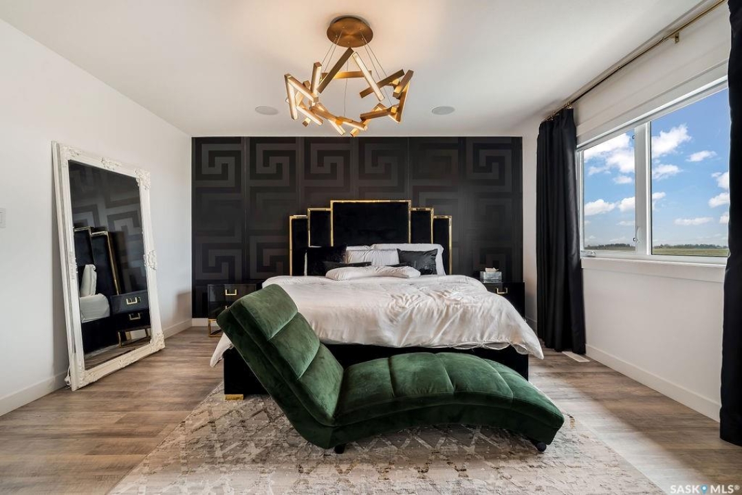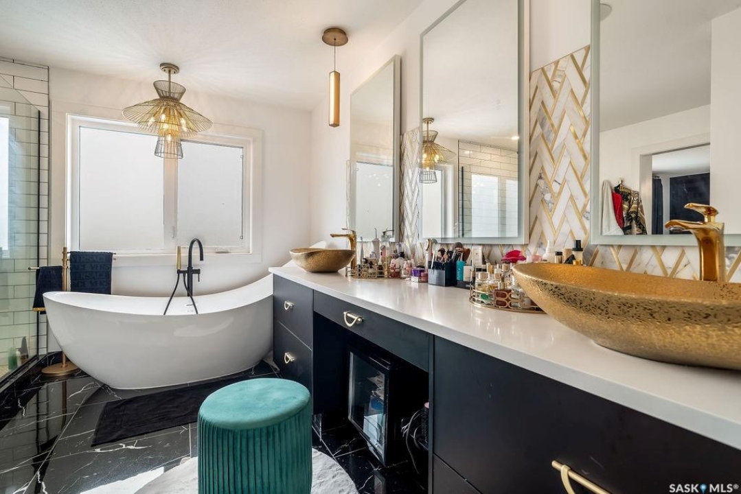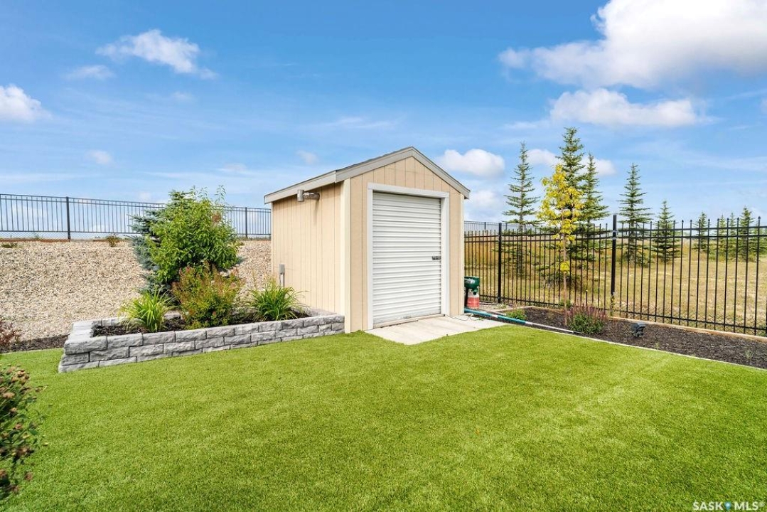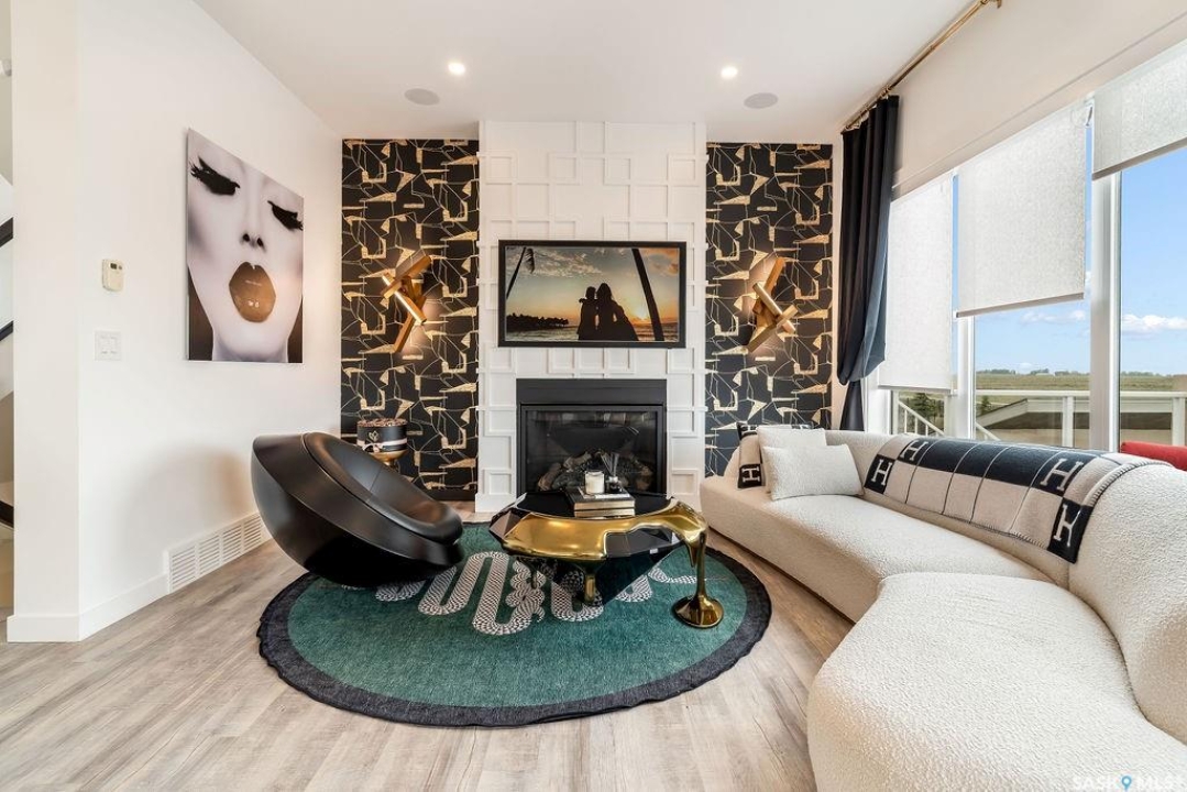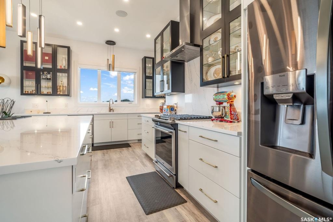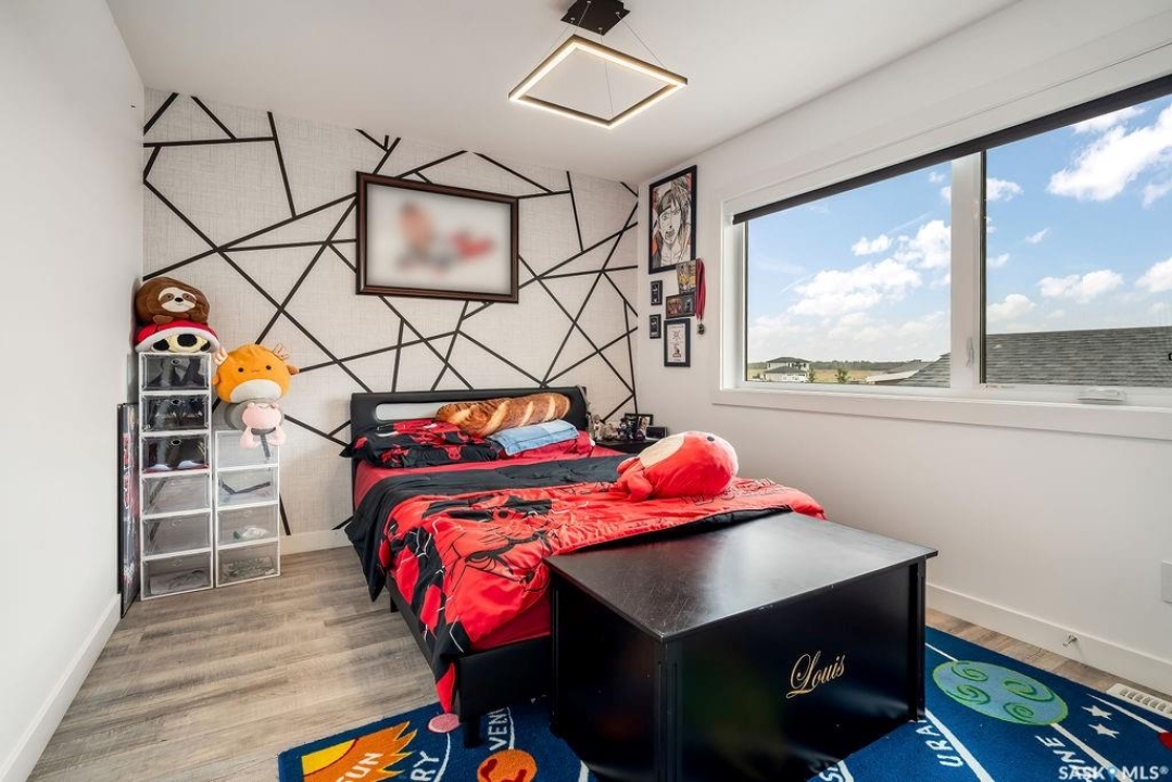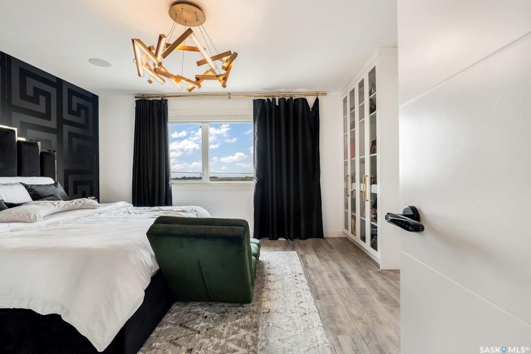 Luxury Living in Spruce Creek Estates – Pool, Walkout, Triple Garage This exquisite two-storey 2018 Stars Lottery Home, is located in the prestigious community just minutes east of Regina. From the moment you arrive, the curb appeal captivates with modern architecture, cedar and stone accents, and beautifully manicured landscaping. Inside, the open-concept design strikes the perfect balance between luxury and comfort. The chef's kitchen makes a bold statement with crisp white lower cabinets, sleek black glass uppers, quartz countertops, and a huge island, providing both function and style. The living room, anchored by a gas fireplace, flows seamlessly into the dining room, which opens onto the deck where you can enjoy breathtaking Saskatchewan sunsets. Upstairs, the home continues to impress with 3 bedrooms and a bonus room enhanced with a custom JMS mural wall. The Primary suite has been beautifully updated, it is spacious, has a walk in closet and 5 piece ensuite. With chic tiled floors, updated cabinetry, a custom-tiled shower, a stand-alone soaker tub, and double sinks, this retreat feels like a luxury spa within your own home. The 2nd floor also features a full bathroom and laundry room. The fully developed walkout basement is perfect for entertaining or family time, with a gas fireplace in the family room, wet bar, 4th bedroom, bathroom, and spacious sunroom making it an ideal extension of your living space. Stepping outside, you'll find a private backyard oasis designed for both relaxation and fun. A raised deck and patio overlook lush green space, putting green, and in-ground pool. Everything you need to enjoy hot Saskatchewan summers. The triple attached garage has 12-foot ceilings, epoxy-coated floors, and is heated. With in-floor heating in the basement, newer flooring, cabinetry, paint, & lighting throughout, as well as a home audio system and a fully fenced and landscaped 1/2 lot, this home delivers executive style with everyday comfort.