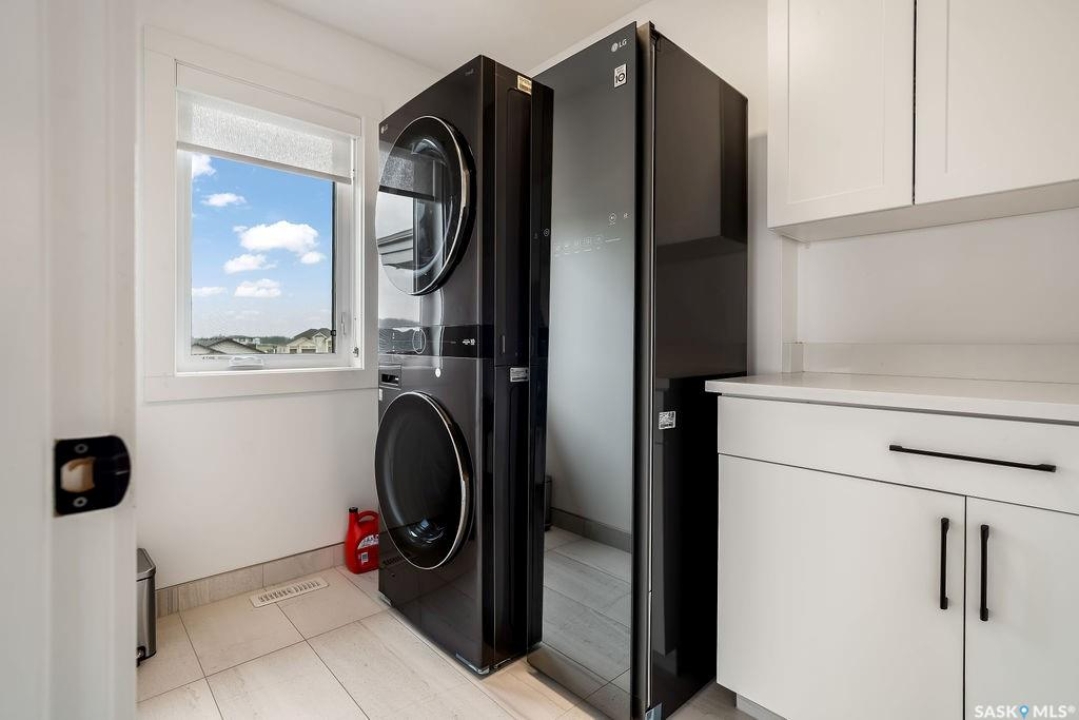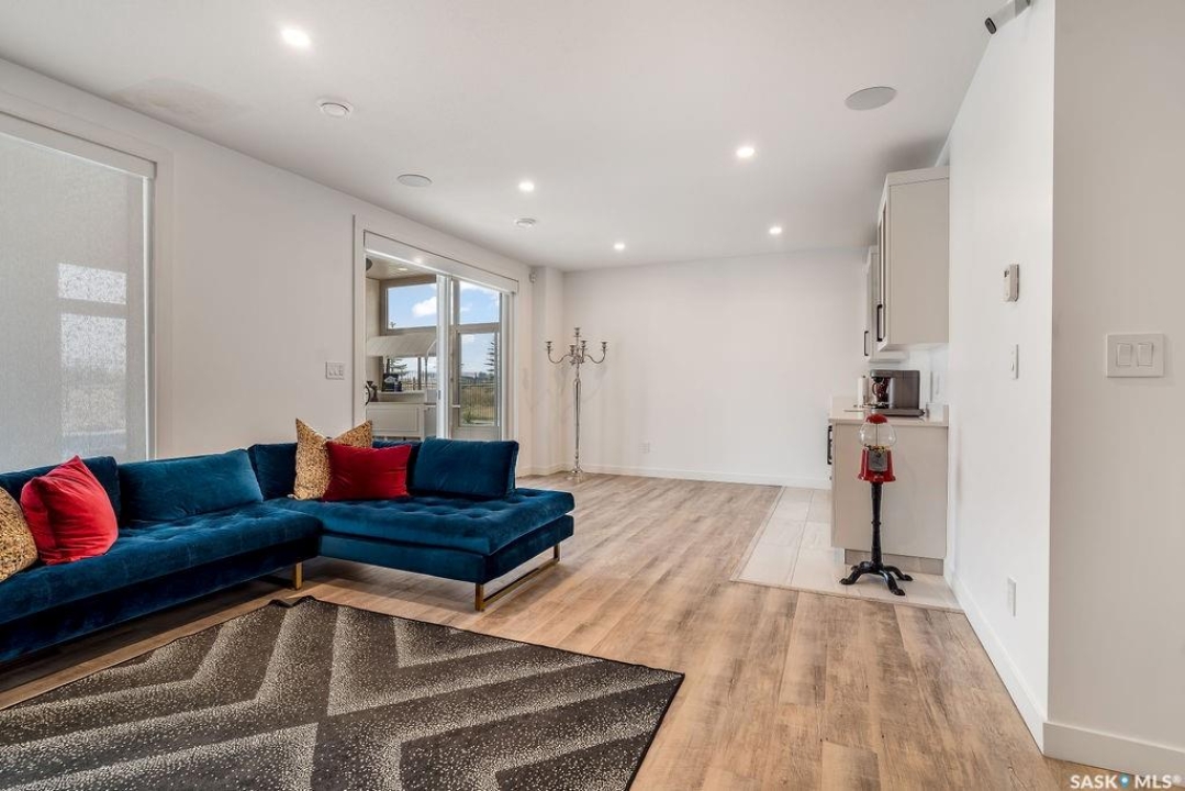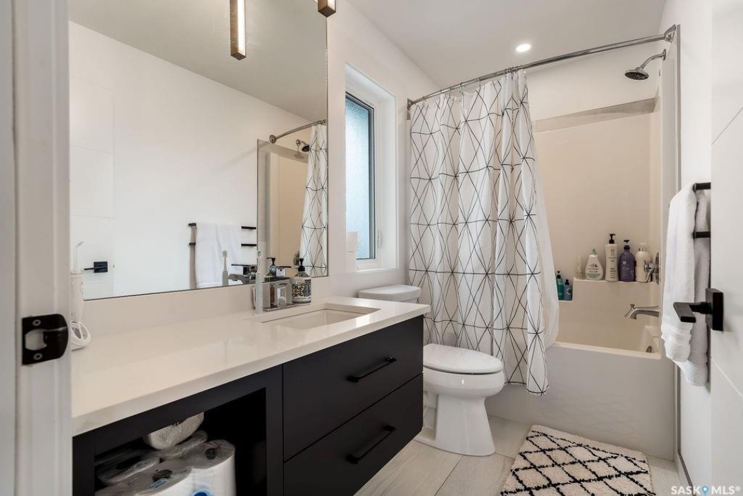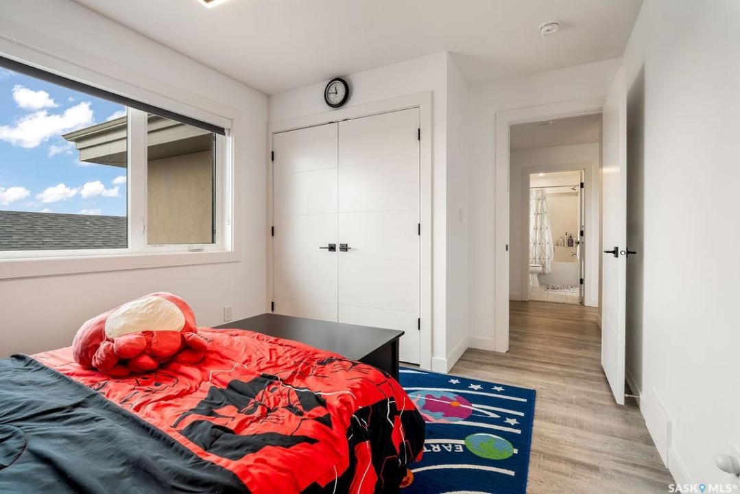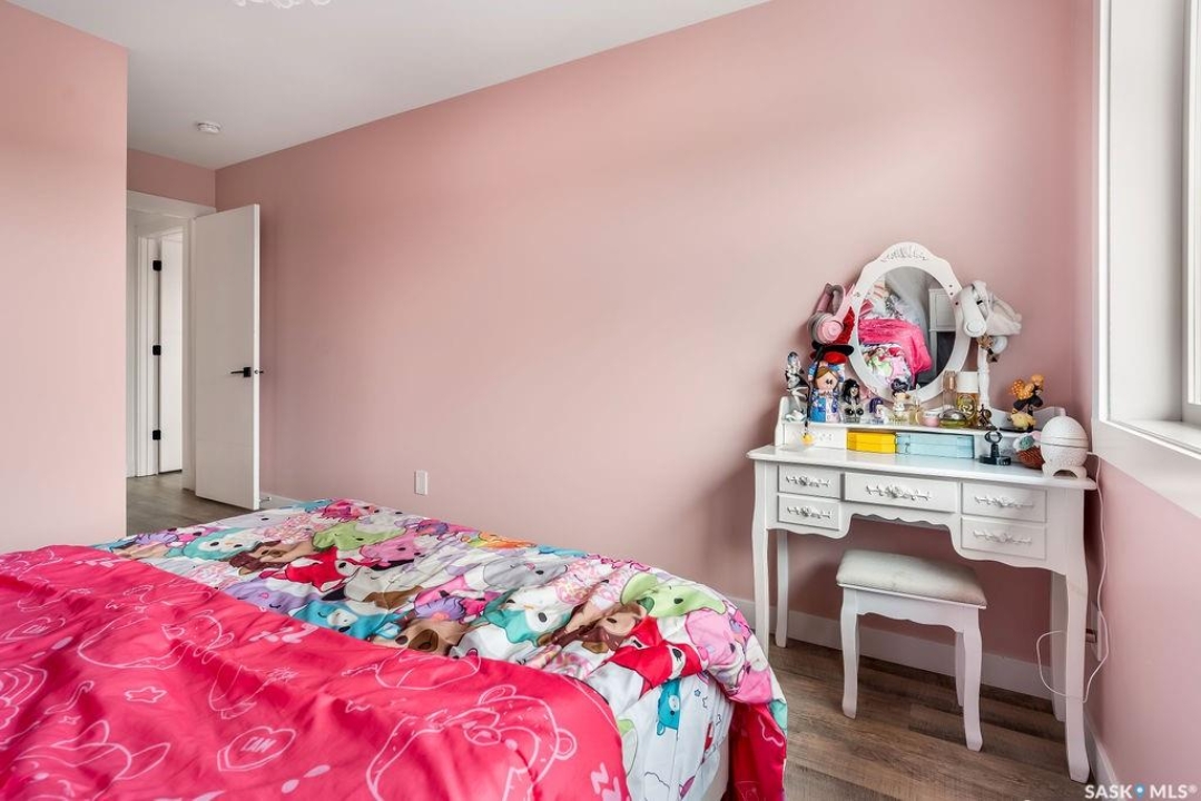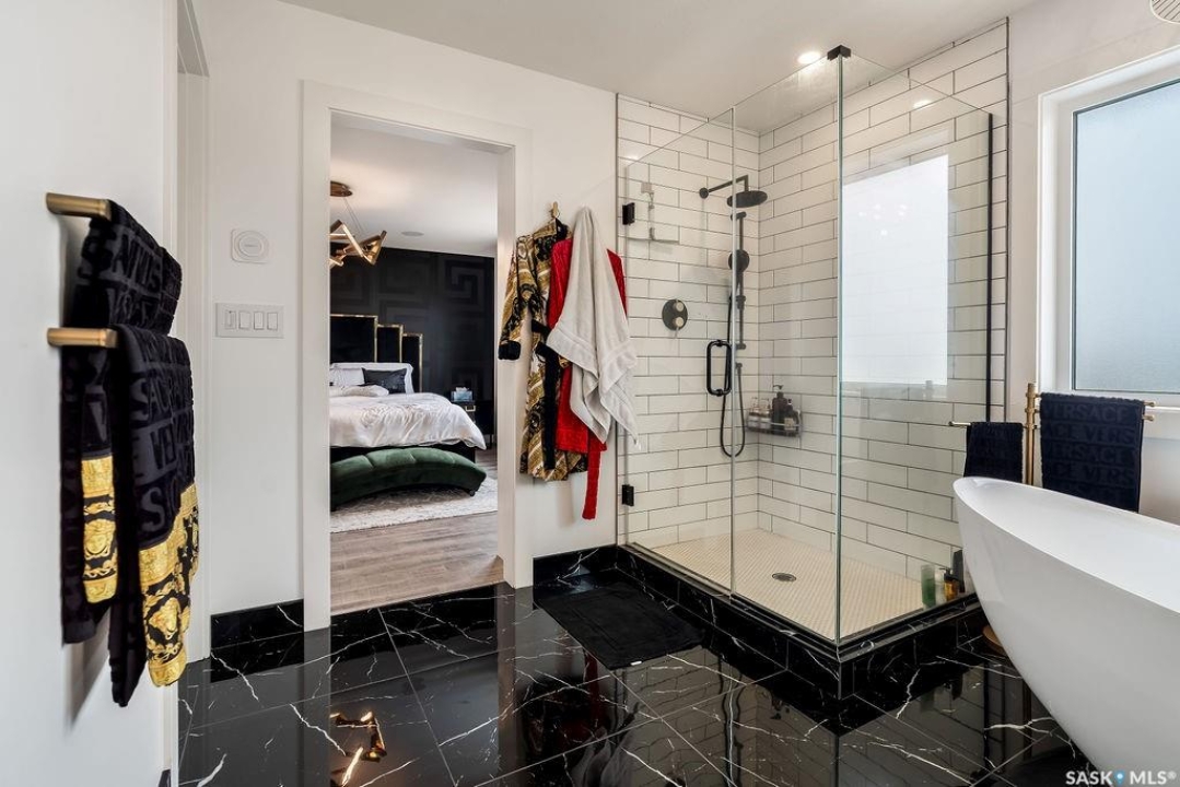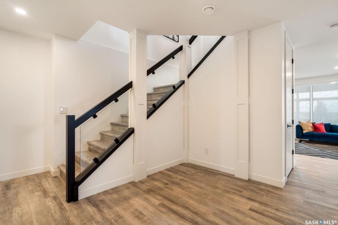 Luxury Living in Spruce Creek Estates – Pool, Walkout, Triple Garage This exquisite two-storey 2018 Stars Lottery Home, is located in the prestigious community just minutes east of Regina. From the moment you arrive, the curb appeal captivates with modern architecture, cedar and stone accents, and beautifully manicured landscaping. Inside, the open-concept design strikes the perfect balance between luxury and comfort. The chef's kitchen makes a bold statement with crisp white lower cabinets, sleek black glass uppers, quartz countertops, and a huge island, providing both function and style. The living room, anchored by a gas fireplace, flows seamlessly into the dining room, which opens onto the deck where you can enjoy breathtaking Saskatchewan sunsets. Upstairs, the home continues to impress with 3 bedrooms and a bonus room enhanced with a custom JMS mural wall. The Primary suite has been beautifully updated, it is spacious, has a walk in closet and 5 piece ensuite. With chic tiled floors, updated cabinetry, a custom-tiled shower, a stand-alone soaker tub, and double sinks, this retreat feels like a luxury spa within your own home. The 2nd floor also features a full bathroom and laundry room. The fully developed walkout basement is perfect for entertaining or family time, with a gas fireplace in the family room, wet bar, 4th bedroom, bathroom, and spacious sunroom making it an ideal extension of your living space. Stepping outside, you'll find a private backyard oasis designed for both relaxation and fun. A raised deck and patio overlook lush green space, putting green, and in-ground pool. Everything you need to enjoy hot Saskatchewan summers. The triple attached garage has 12-foot ceilings, epoxy-coated floors, and is heated. With in-floor heating in the basement, newer flooring, cabinetry, paint, & lighting throughout, as well as a home audio system and a fully fenced and landscaped 1/2 lot, this home delivers executive style with everyday comfort.