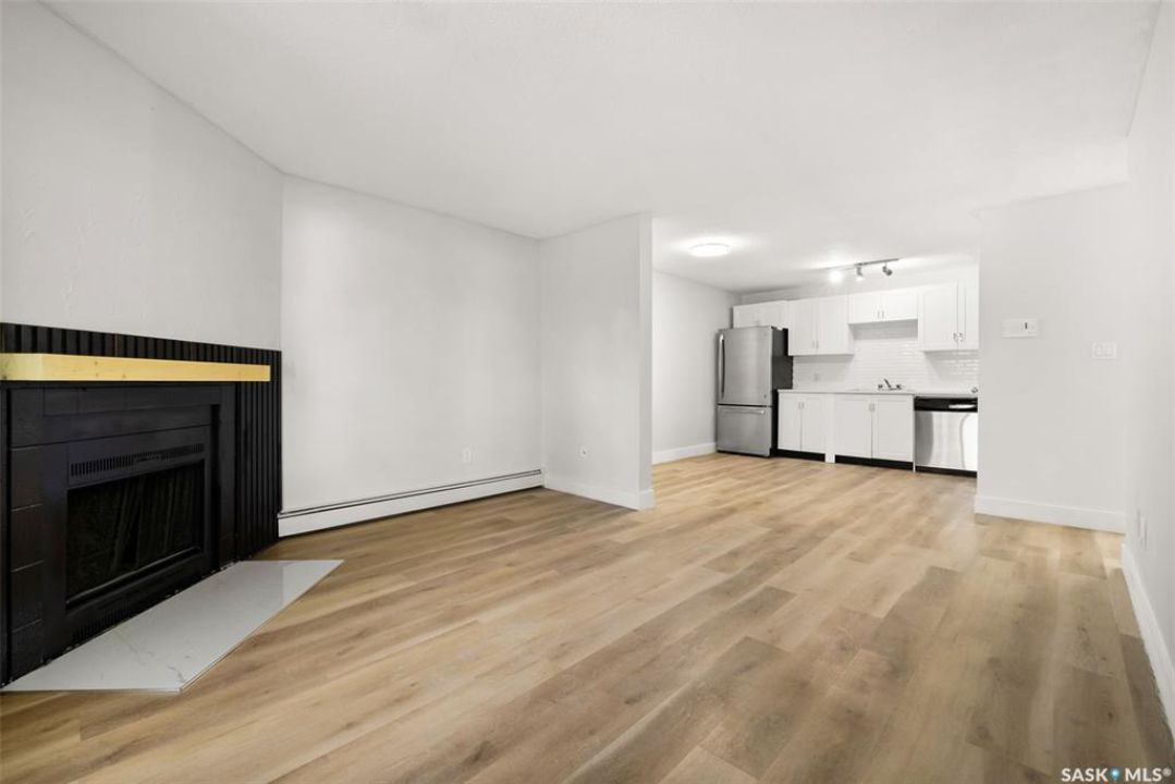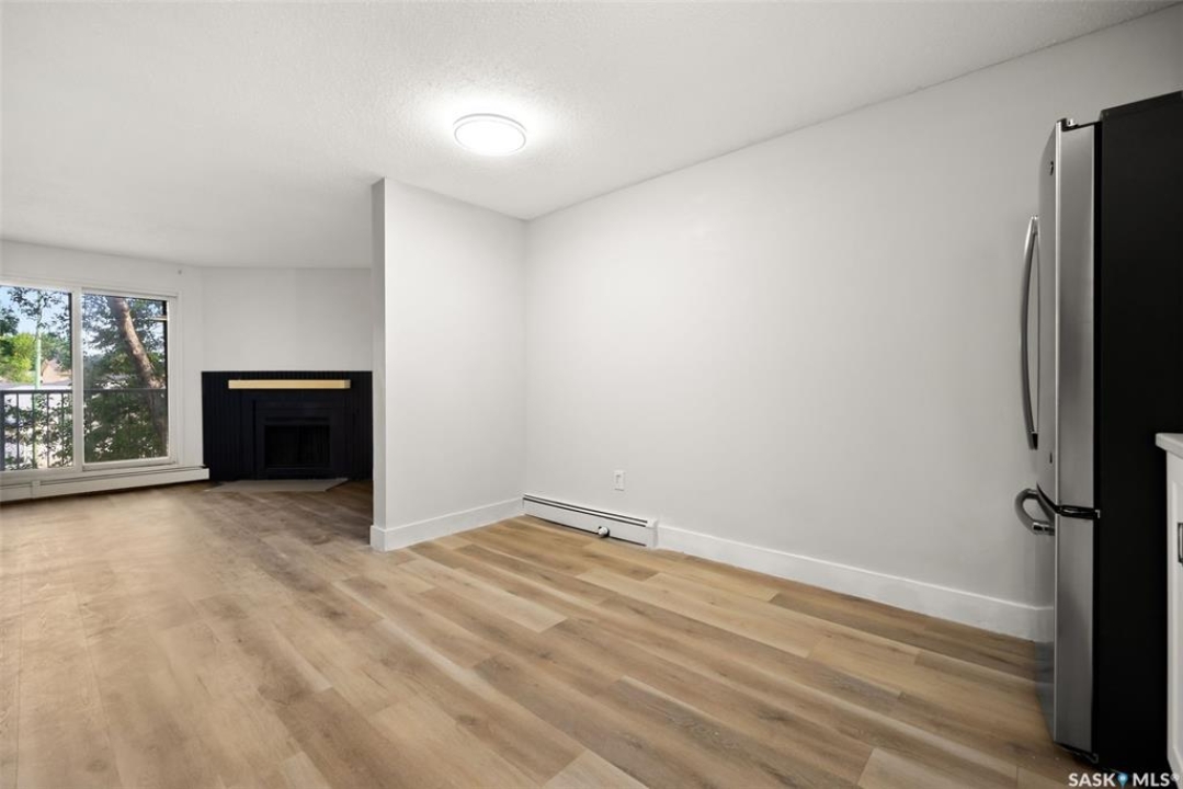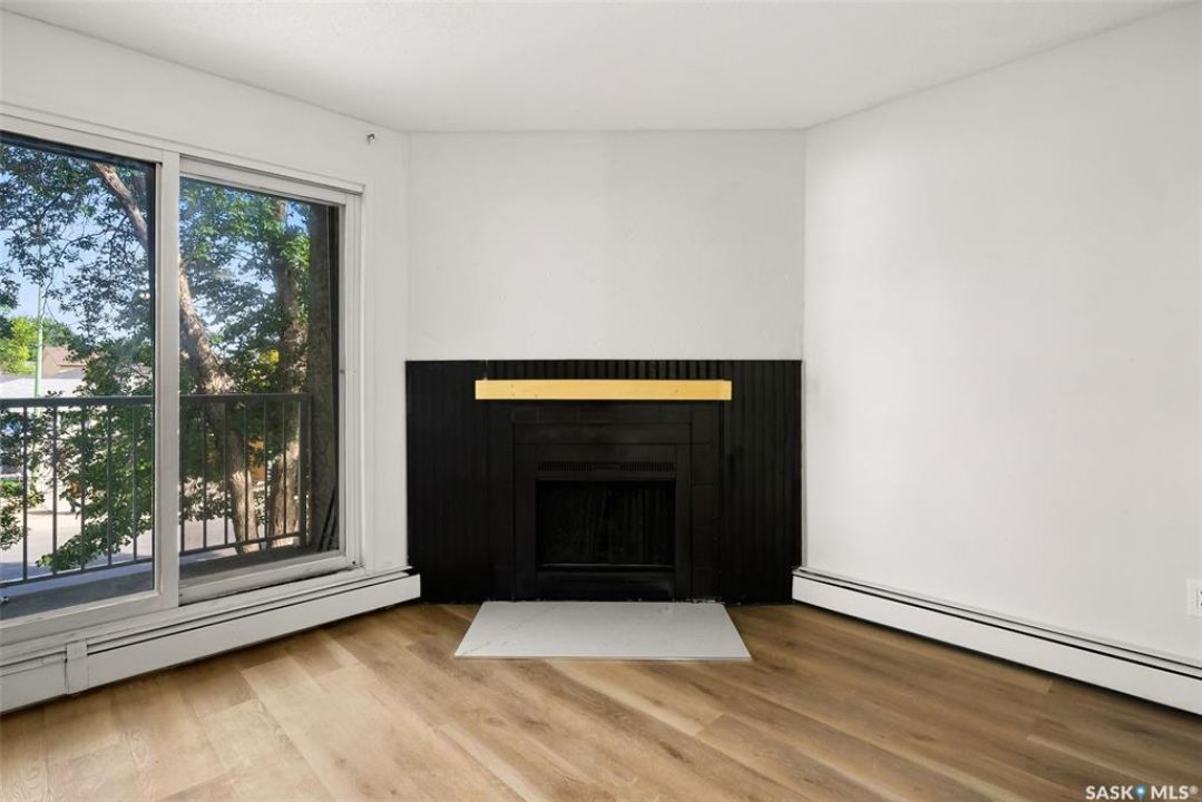 Excellent upgraded 2 bedroom 1 Bath condo in desirable River Bend Neighborhood. This 2nd floor end unit with East facing balcony for morning light. Some upgrades including New Appliance, Newer flooring & new kitchen cabinets, it has everything for someone to move in to their first starter home or use this as an investment. In-suite laundry with all appliances included. Cozy wood burning corner fireplace. Condo fees include heat, water, reserve fund, building insurance, common area/ ground maintenance, 1 electrified stall use of games room, gym, swimming pool, tennis courts and children's play area. Deluxe unit, check it out today.