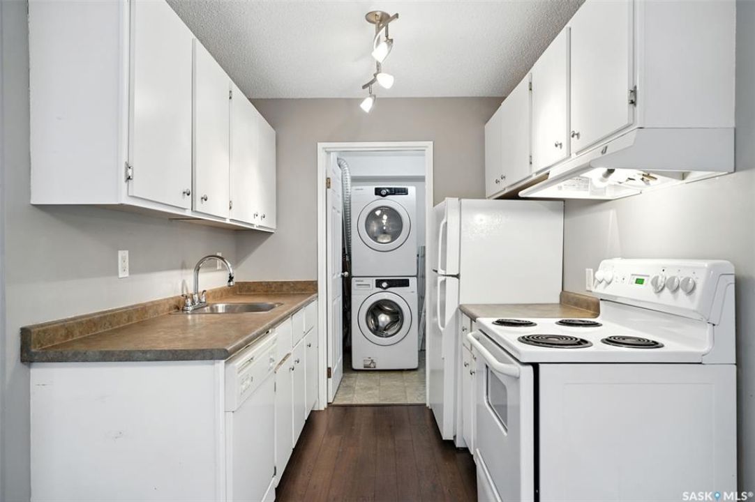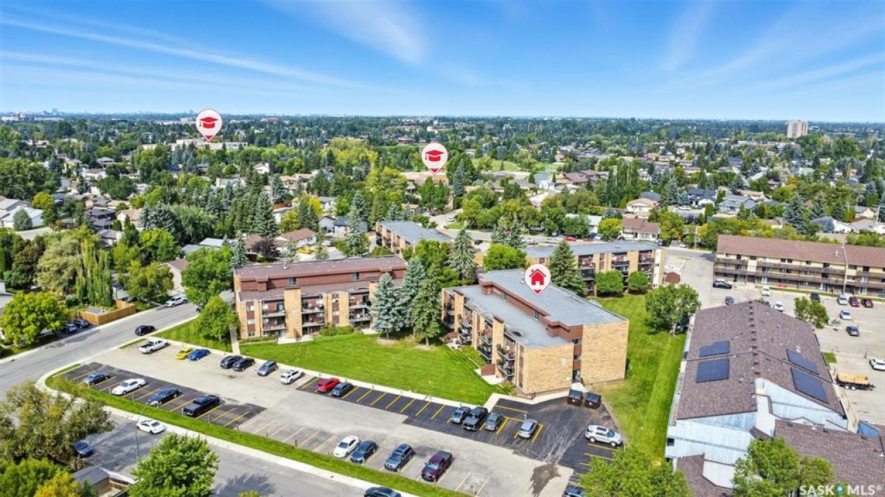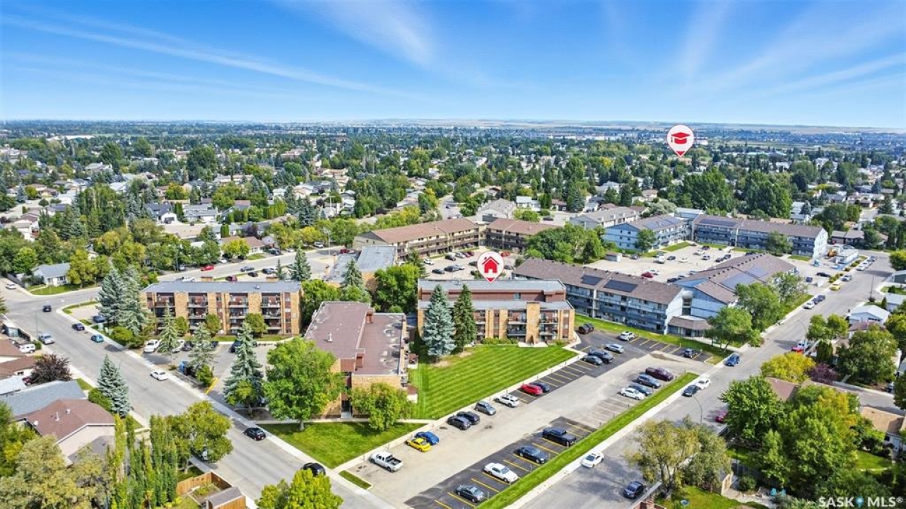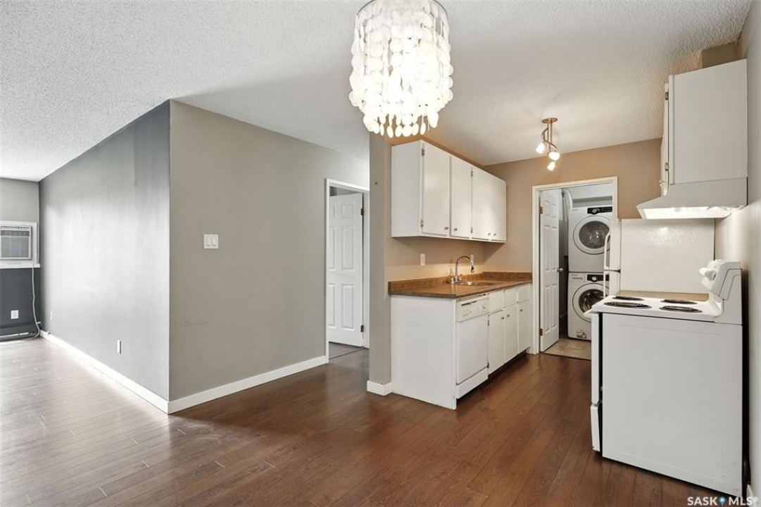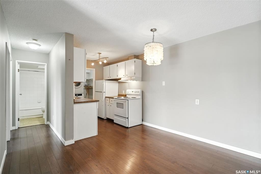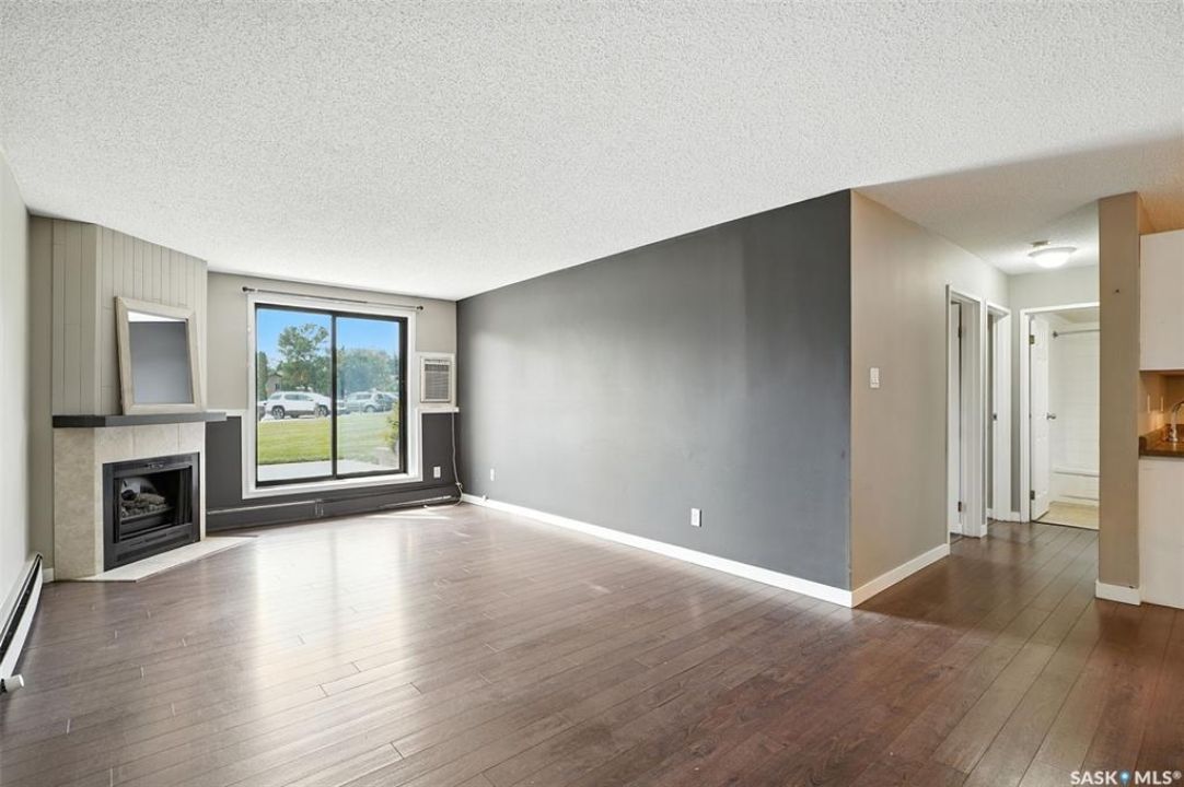 Welcome to #106 – 802C Kingsmere Blvd, located in the highly sought-after Shorebird Watch complex in Saskatoon's vibrant Lakeview neighbourhood. This well-maintained 2-bedroom, 1-bathroom apartment-style condo is an excellent opportunity for first-time buyers, downsizers, students, or investors seeking a move-in ready unit with great value. Enjoy the updated galley-style kitchen with appliances included, a spacious dining area, and a bright, open-concept living room featuring a cozy electric fireplace. Sliding patio doors open to your private walk-out level balcony, overlooking open green space—perfect for morning coffee or evening relaxation. Additional highlights include in-suite laundry with bonus storage, a functional layout for comfortable everyday living, and easy access to public transit, making it a direct and convenient route to the University of Saskatchewan and other key amenities. Whether you're looking for a home or an income-generating rental property, this unit checks all the boxes. Don't miss out—schedule your private showing today!
