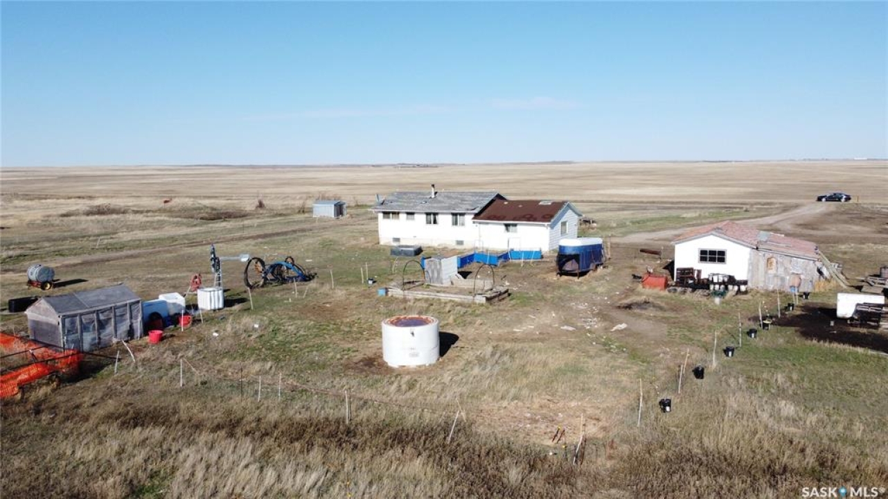 Possibilities and potential abound with this very affordable acreage property 20 minutes NW of Swift Current. Located slightly SE of Success, this 27.27-acre parcel is comprised of a 3-acre yard site and the remainder cultivated hay land. The 1955-built house is 1,248 sq.ft. thanks to a circa 1986 addition to the original 768-sq.ft. footprint. The addition is now a huge rec room with electric heat, while the initial layout includes a combined kitchen/eating area, a sizeable living room, 2 bedrooms, and a 4-piece bathroom. Outbuildings include a 12x25 garage, barn, corrals that had handled 200 head of cattle in the past, and 3 watering bowls. There is reportedly a 120' artesian well with 6” casing and water to the 7-foot mark. The house used to be heated by a propane furnace but there is currently no fuel supply and no power on in the property. Call an agent to see this affordable property.