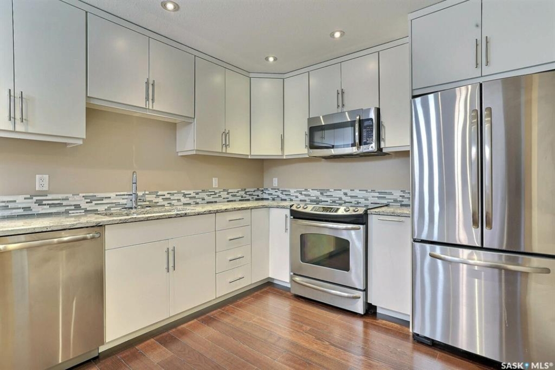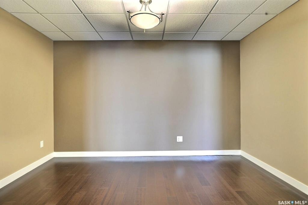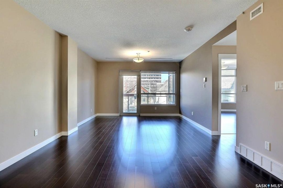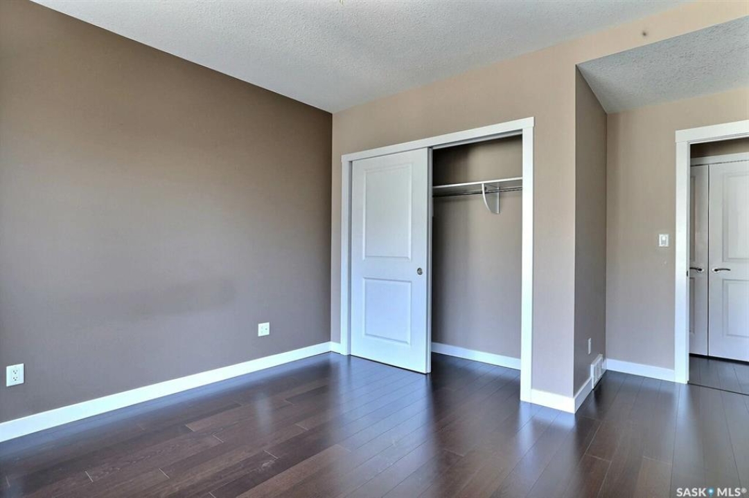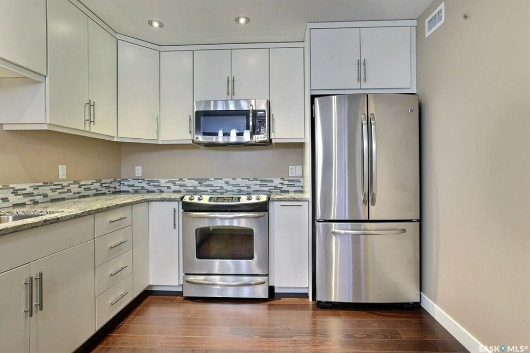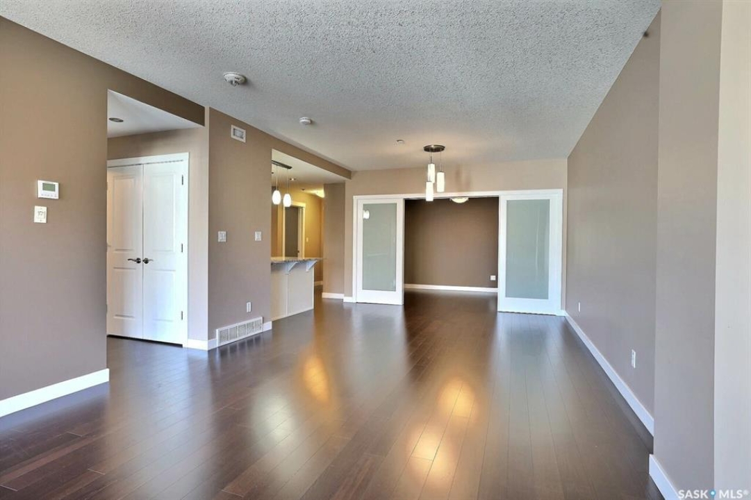 Fantastic downtown condo in desirable location close to the park and all downtown amenities. Very well maintained with engineered hardwood and tile flooring throughout. Open floor plan offers spacious living/dining room, huge kitchen with plenty of white cabinetry and stone counters. Very large den could double as an office or guest room. Huge master bedroom and main bath with tiled floor. Underground heated parking stall. Centre Square offers luxury, maintenance free condo living with beautiful amenities, roof top lounge, gym facilities and easy walkability access to Wascana Park and all downtown shopping and activities.