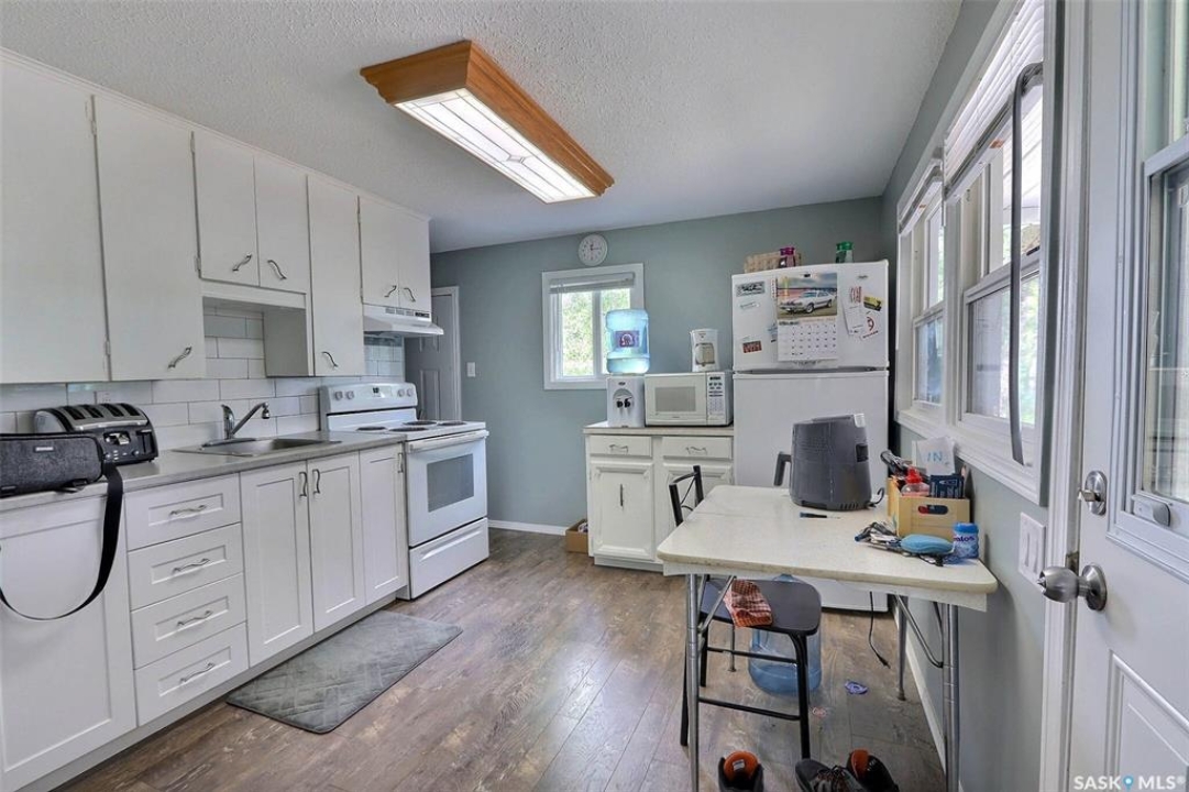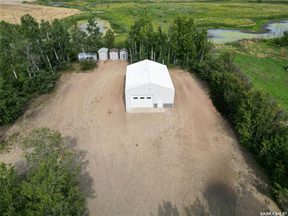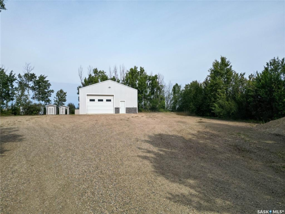 Acreage living just minutes from the city! This charming 1 bedroom, 1 bathroom bungalow offers 616 sq ft of cozy living space, set on a beautifully treed 7-acre parcel that provides ultimate privacy. Built in 1955, the home features laminate flooring throughout the main level, while the basement adds extra space with a comfortable living room, laundry/utility area, and plenty of storage. The property is a dream for hobbyists and tinkerers, boasting a show-stopping 30' x 40' heated shop, plus multiple sheds for all your projects and storage needs. Services include city water, an electric hot water heater, and an electric wall heater in the basement. Whether you're looking for peace and quiet, room to grow, or the perfect workshop setup, this acreage delivers it all while keeping you just a short drive from city conveniences.