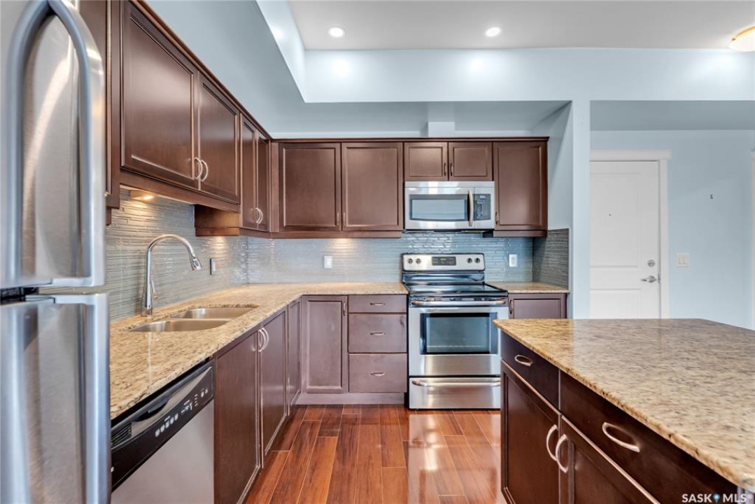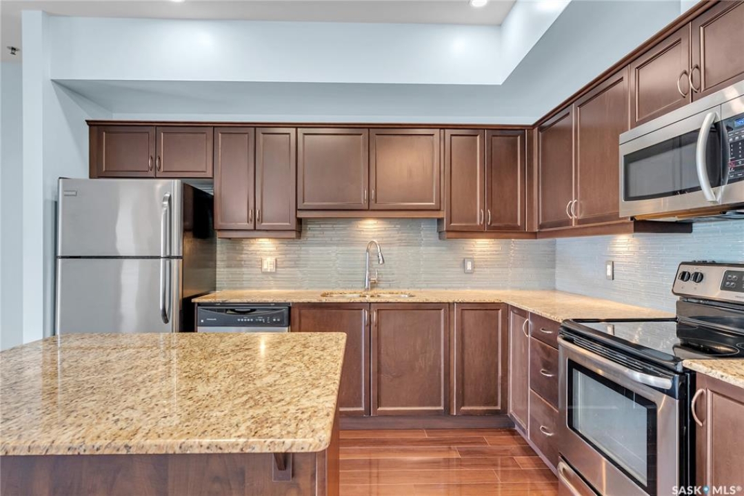 Excellent 2-bedroom, 2-bathroom south-facing condo with central air conditioning, underground heated parking & storage, natural gas BBQ hookup on south-facing balcony, open-concept living space, functional kitchen with central island, generously-sized bedrooms that do not share a wall between them, large primary bedroom with walk-through double closet, 3-piece ensuite, in-suite laundry & storage, & elevator access to unit floor. This suite is in great condition & is move-in ready with all appliances included. Each suite at The Hamptons has its own high-efficiency furnace & central A/C unit belonging to the unit owner. Condo fees include water, sewer, snow removal, lawncare, building exterior & common area maintenance, common area insurance, reserve fund contributions, & garbage collection. Condo amenities include a convenient amenities room, visitor parking, elevator service & intercom. Located close to stores, pharmacy, restaurants, bus stops, schools & parks. A convenient, comfortable & secure lifestyle awaits you at an affordable price!