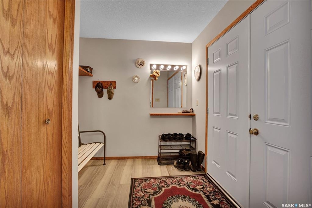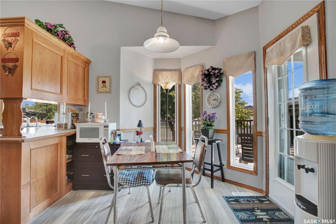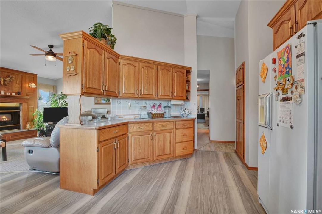 This is truly a one-of-a-kind home in Hague! With over 1,900 sq. ft. of thoughtfully designed living space, this immaculately kept bungalow is anything but average. From the moment you step inside, you'll notice the attention to detail, with the oversized entrance and a functional mudroom to the natural light streaming through the many windows. The main floor features a beautiful kitchen surrounded views of the mature trees and large deck, there is an inviting dining space, and an expansive formal dining room & front sitting room perfect for hosting family and friends. There is also a cozy living room with gas fireplace. The floor plan has been carefully modified for wheelchair accessibility, including oversized doorways, a lift in the double attached garage and a stair assist into the fully developed basement. Convenience continues with main-floor laundry and three spacious bedrooms, making daily living effortless. Downstairs, the fully developed basement offers incredible flexibility with a second kitchen—ideal for use as a nanny suite, multigenerational living, or even creating a private rental opportunity a cozy wood burning fireplace, a large bedroom, den and bathroom. In addition to the thorough maintenance there are many upgrades including new shingles, flooring, a no-maintenance vinyl fence, and a newer furnace and water heater, offering peace of mind for years to come. For parking you'll find a double attached garage, plus a second (small) detached single garage—perfect for extra storage or a workshop. With its thoughtful accessibility features, versatile spaces, and impeccable upkeep, this home is truly one of a kind and must be seen to be appreciated. Contact your favourite REALTOR ® today to book your private showing!