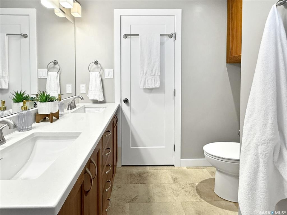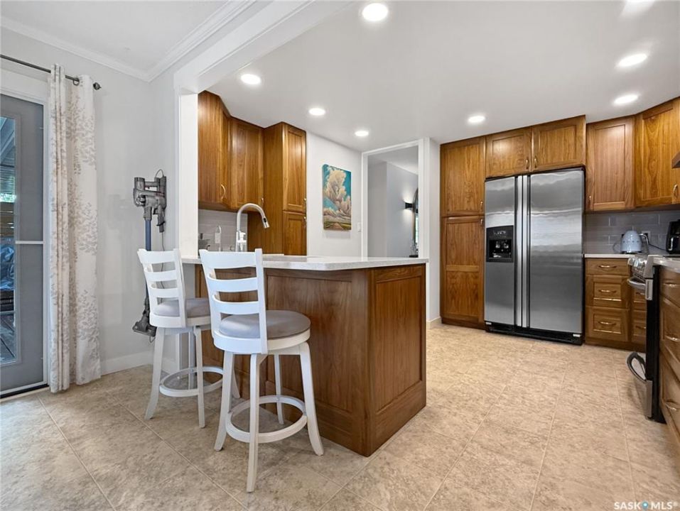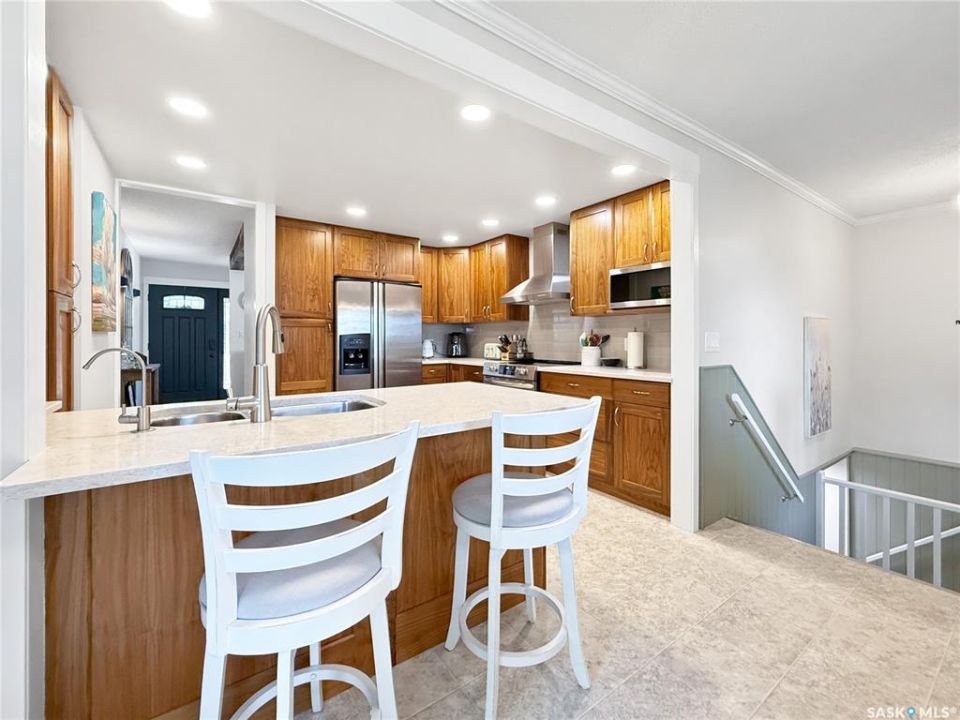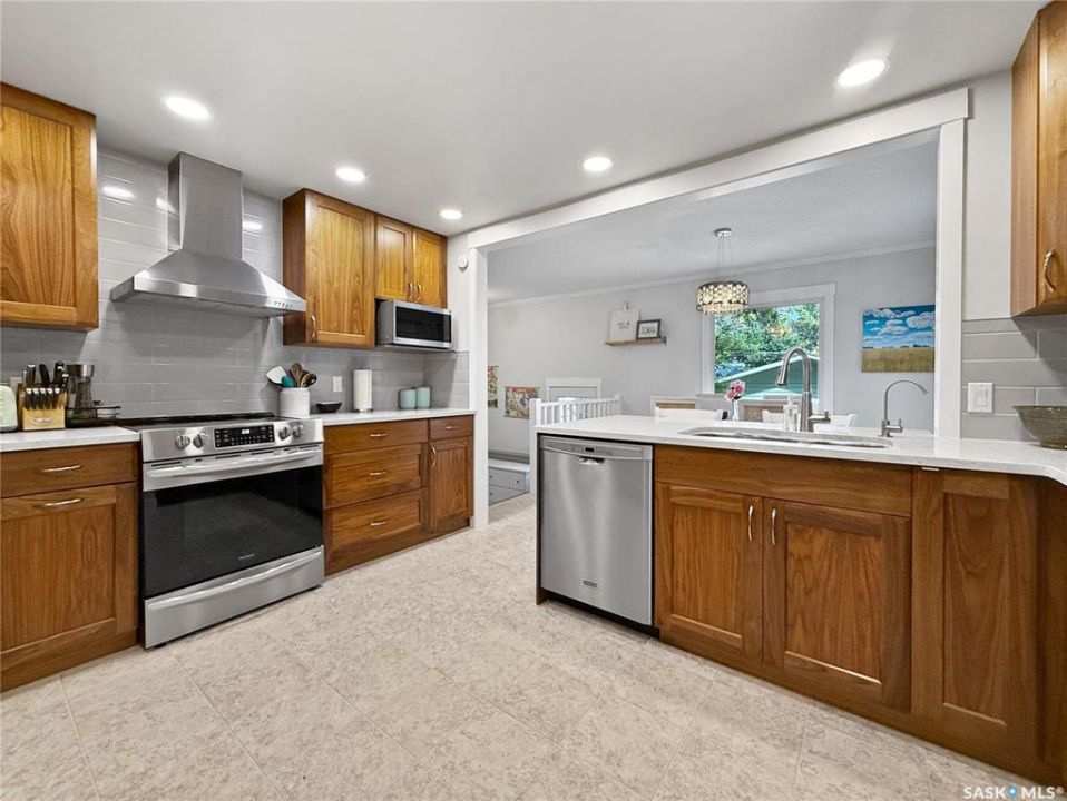 Discover your dream move-in ready home in a picturesque neighbourhood, perfectly situated just blocks away from K-12 schools, scenic walking paths, the creek and a golf course. This property embodies the ideal family residence, nestled on an oversized lot featuring a fully fenced yard and a heated, insulated double car garage measuring 23 x 24. Step inside to a welcoming living room that includes a cozy office nook, providing the perfect space for work or study. The adjacent renovated kitchen showcases elegant walnut cabinetry and a functional peninsula, SS appliances and quartz countertops seamlessly connecting to the dining area and an oversized back boot room. Through the garden doors, you'll find a spacious two-tier deck overlooking a mature backyard, complete with a tranquil fountain, fire pit, and patio—ideal for entertaining while ensuring privacy. The main floor boasts three bedrooms, each equipped with custom built-in closets, and a fully renovated bathroom featuring a double vanity. The lower level, remodelled in 2022, includes brand new flooring, drywall, suspended ceiling with recessed LED pot lights, and a modern aesthetic. This level also comprises two generously sized bedrooms, a dedicated storage room, and a laundry/utility area equipped with its own sink, a 2021 Napoleon high-efficiency furnace and water heater, 100 amp panel and a water softener. This home has undergone extensive renovations, including the addition of a new air conditioner in 2022, updated window coverings, a reverse osmosis system and humidifier, all installed in 2023. Additional enhancements include updated lighting throughout, refreshed paint, modern flooring, new trim, shingles, PVC windows, and underground sprinklers for both the front and back yards. Simply move in and enjoy a lifestyle of comfort and convenience in this beautifully updated home.