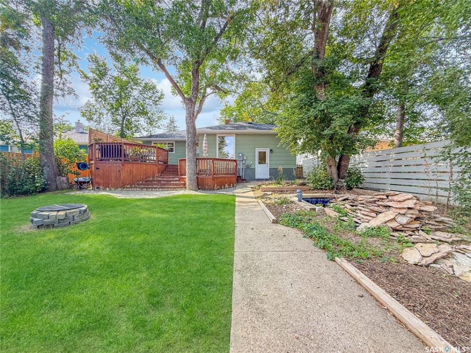 Outdoor: Deck, Fenced, Garden Area, Lawn Back, Lawn Front, Patio, Xeriscape, Firepit, Trees/shrubs