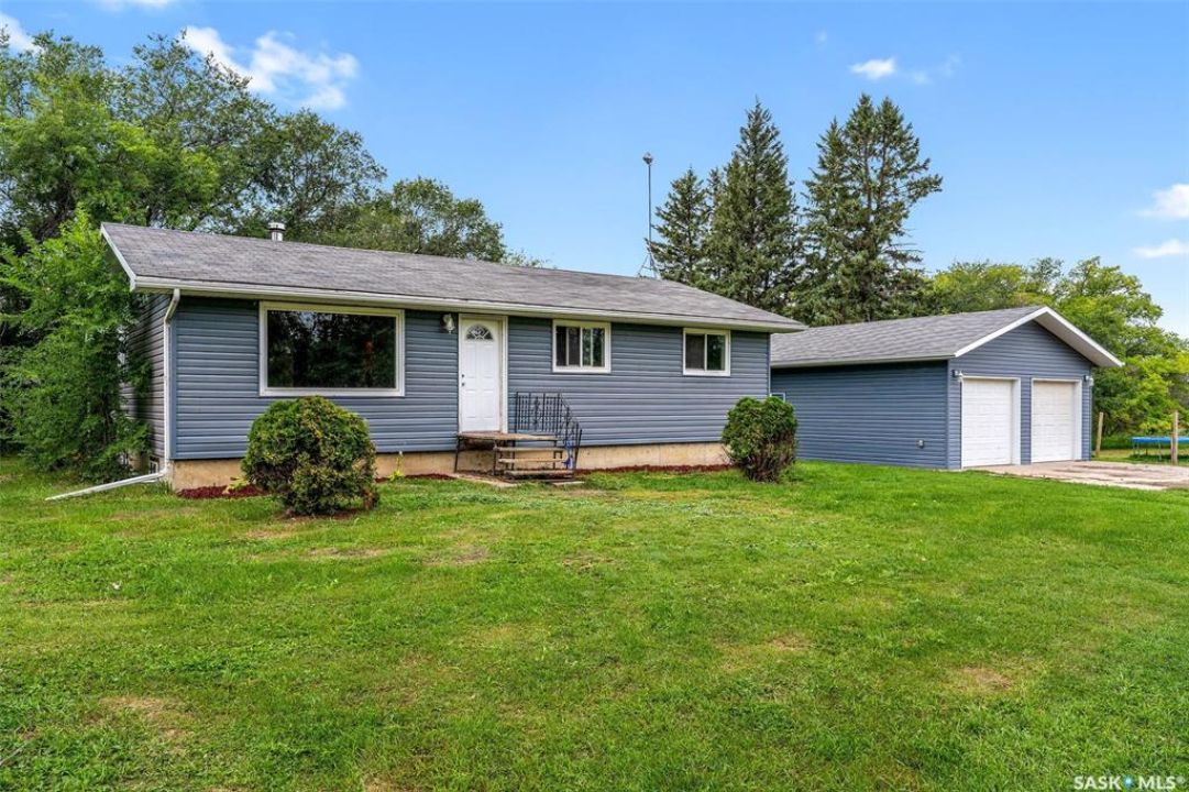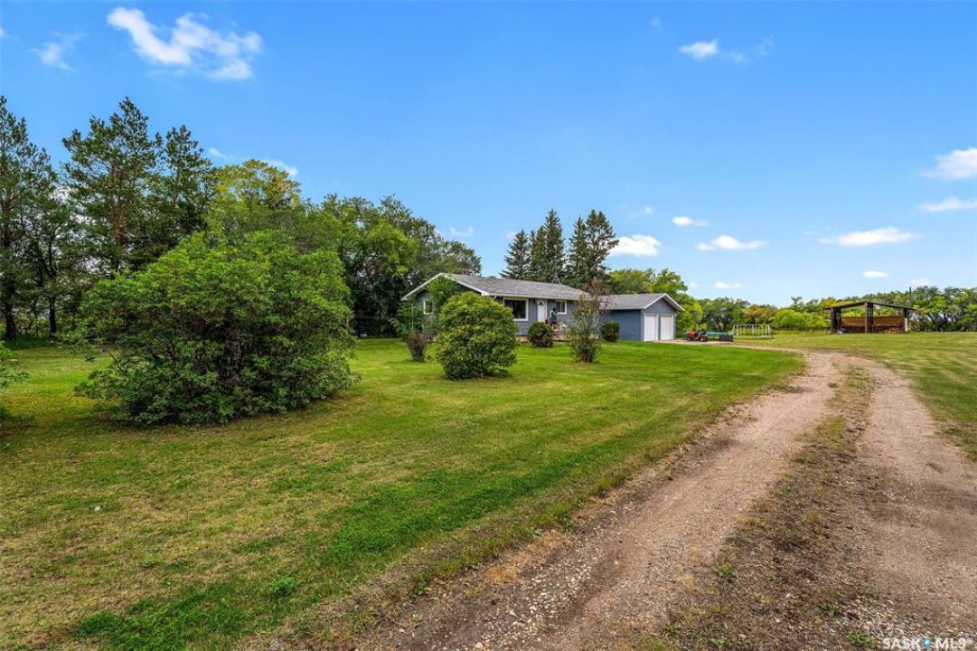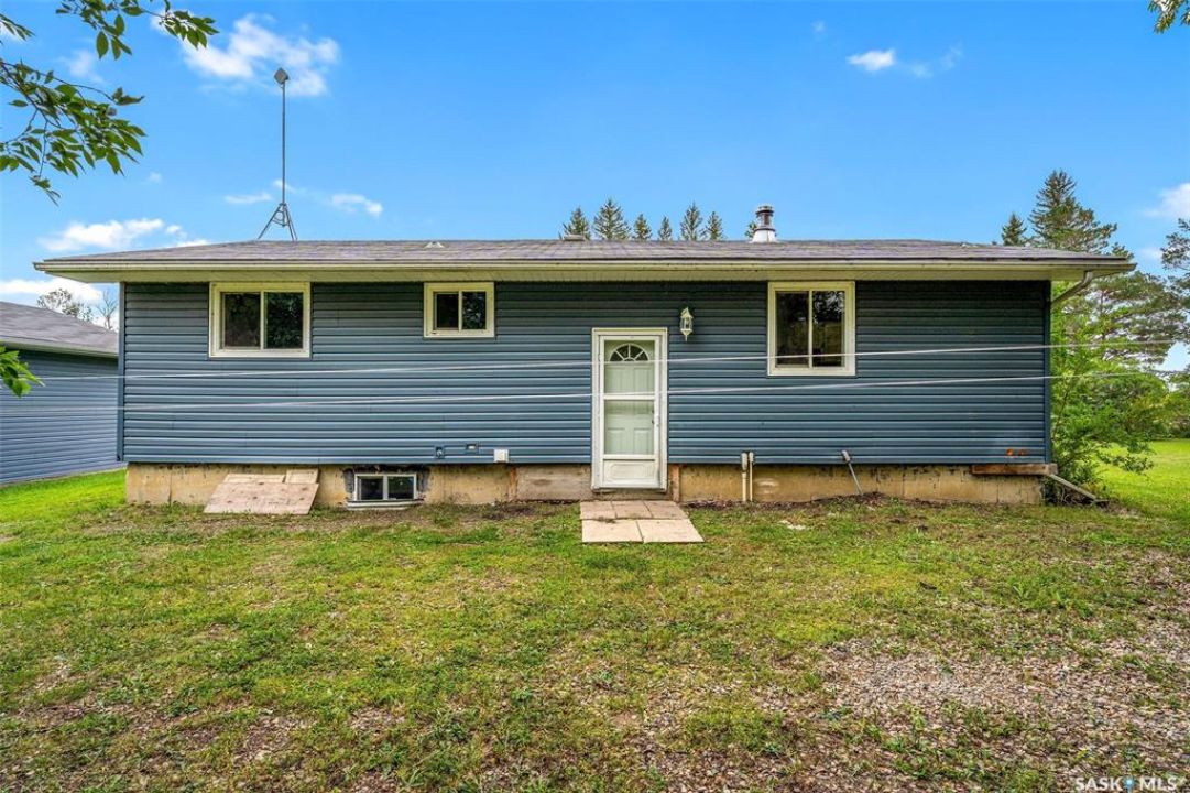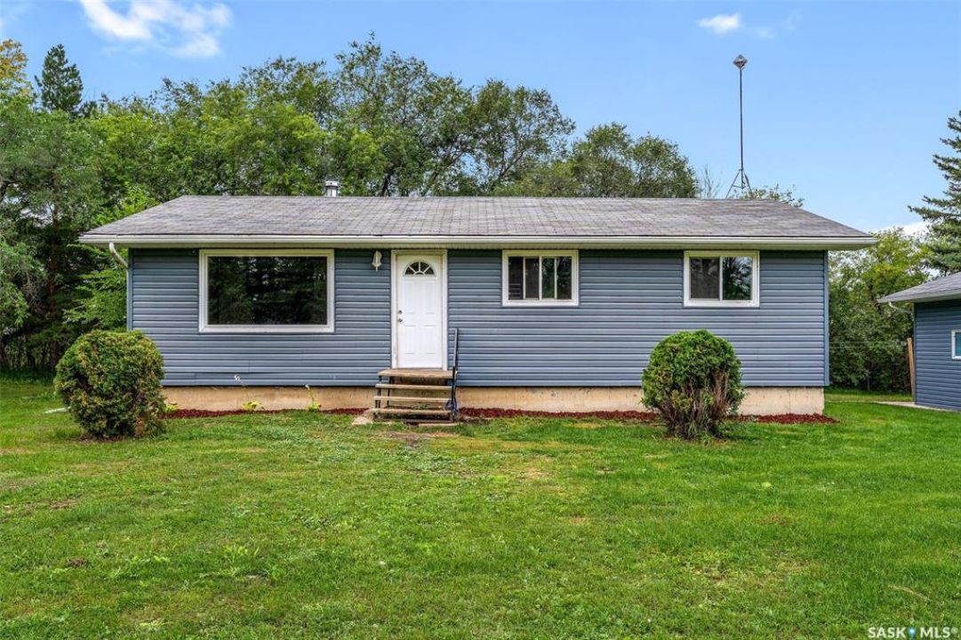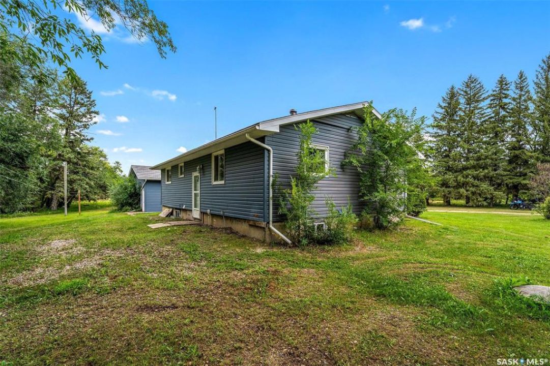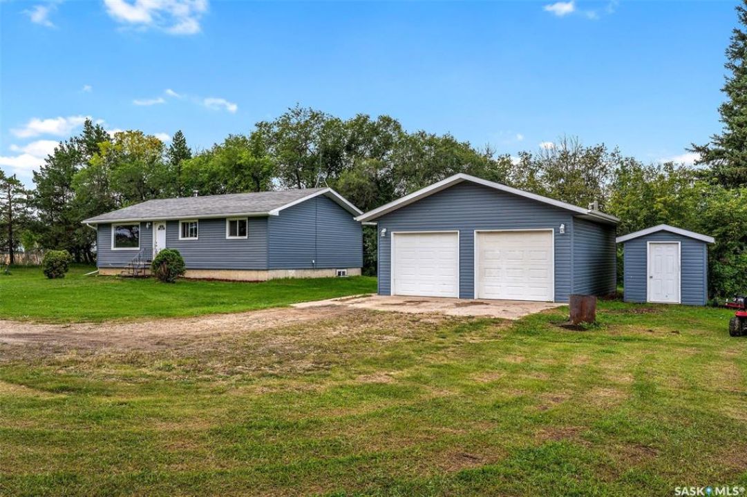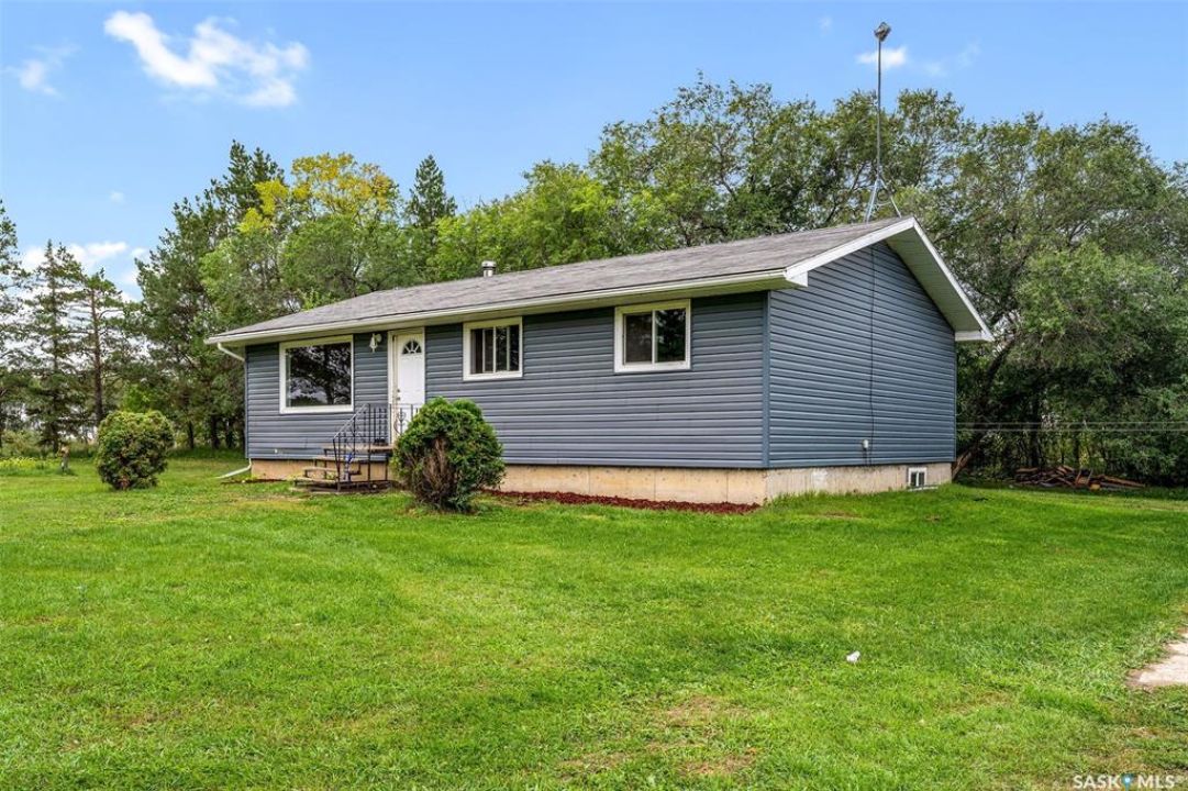 Acreage with 4.59 acres of treed property in the RM of Kinistino No. 459 is ready to welcome its next family. Located just 26 km northwest of Melfort, this acreage offers the perfect mix of privacy, functionality, and practical upgrades! Step inside the 4-bedroom bungalow, featuring three bedrooms on the main floor and a spacious fourth downstairs, plus plenty of room for guests and a large rec space in the basement for cozy movie nights. The main bathroom was fully gutted and renovated in 2023, and the downstairs bathroom has been refreshed in 2025 with a new shower, toilet, and sink. You'll also find all-new baseboards and casings upstairs (2024-2025) for a polished finish. This home has seen impressive updates in recent years, including a new wood furnace with forced air (2024), a water heater (2024), washer and dryer (2023), and fridge and stove (2022). Your family will love the warmth and efficiency of the wood furnace, and with eight full cords of wood included, you'll be ready for many cozy winters ahead. The property also boasts a 24x28 double garage, a massive 32x50 Quonset with 100-amp service, perfect storage for all your acreage needs, and water is supplied through connection to the Melfort Rural Pipeline. A ride-on lawn mower is included with the property, and there is also the convenience of a school bus route to Kinistino K-12. With so many upgrades, storage options privacy of a heavily treed yard, this acreage is a rare find. Call today to book your showing today!